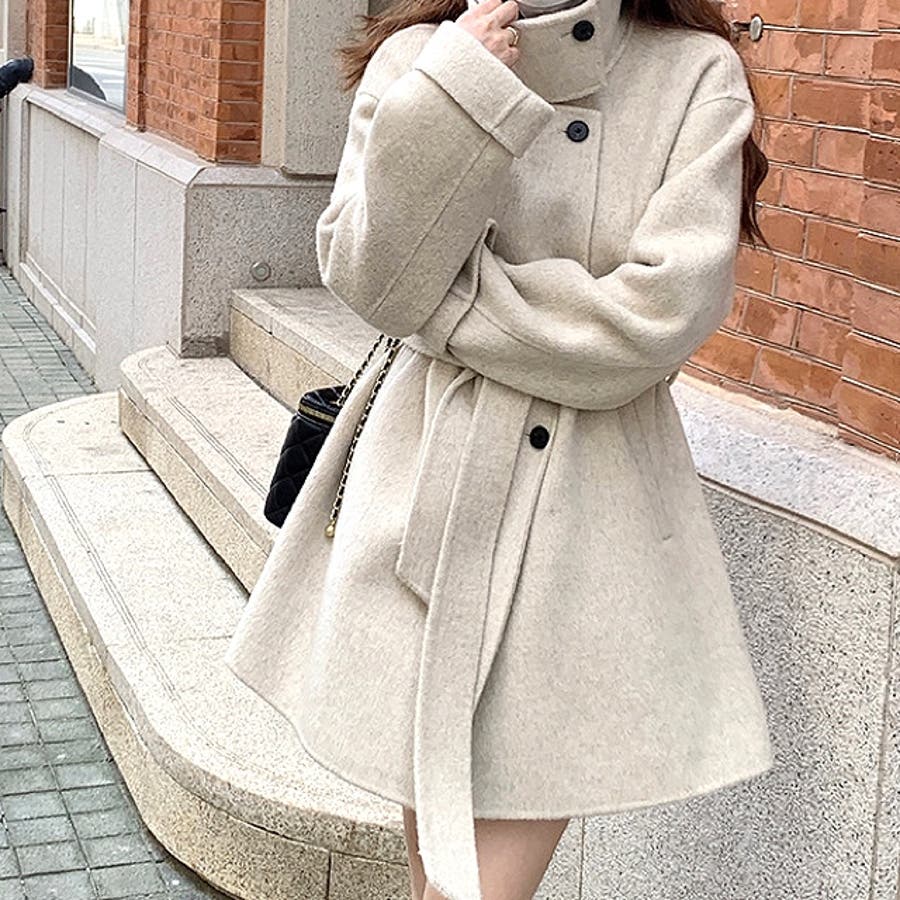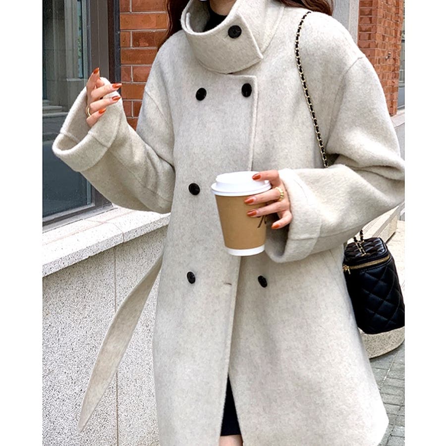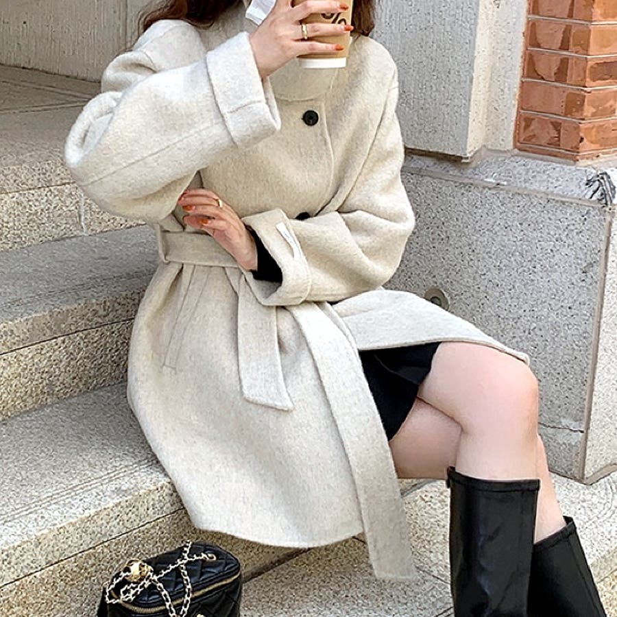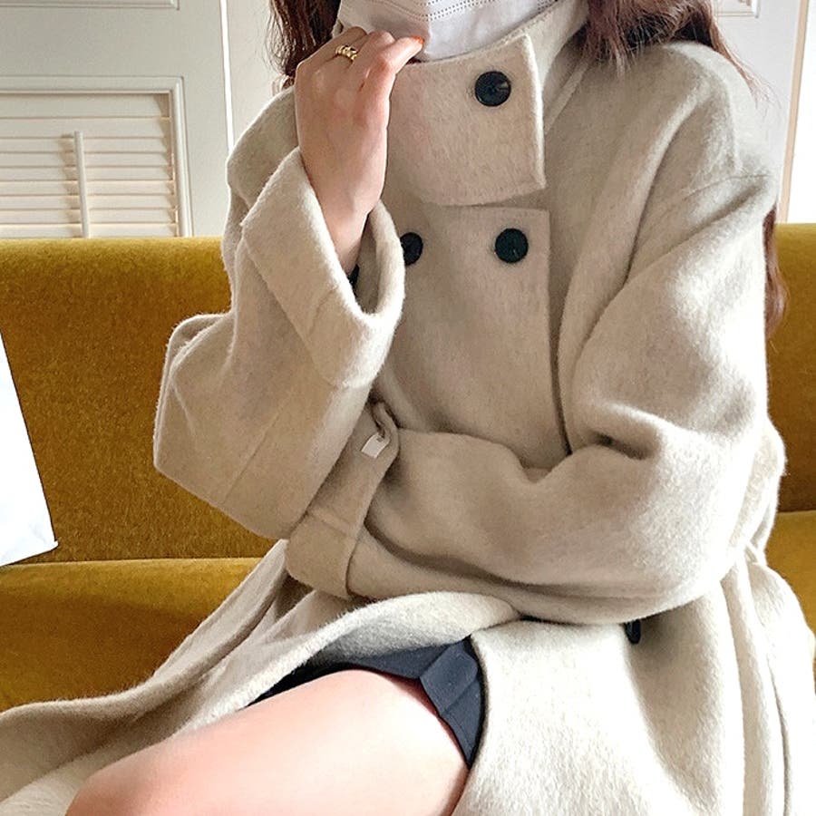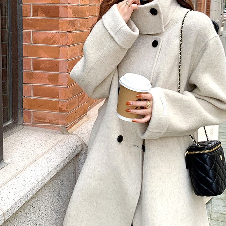 フェイクウールスタンドカラーミドル丈コート 秋 冬