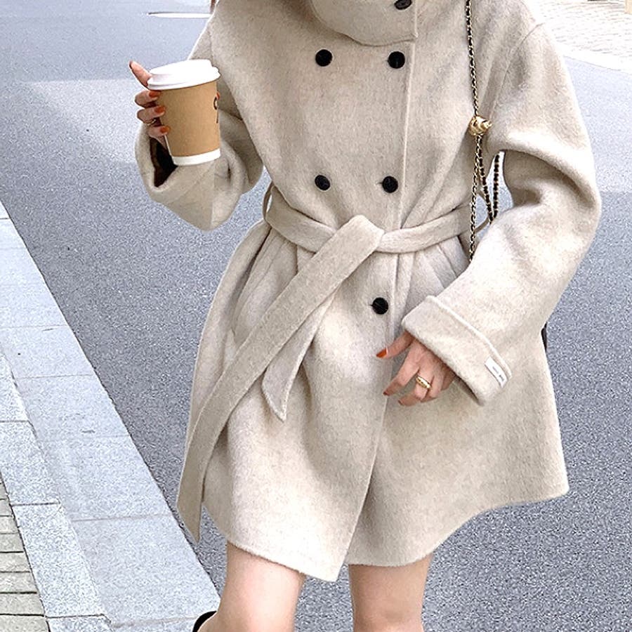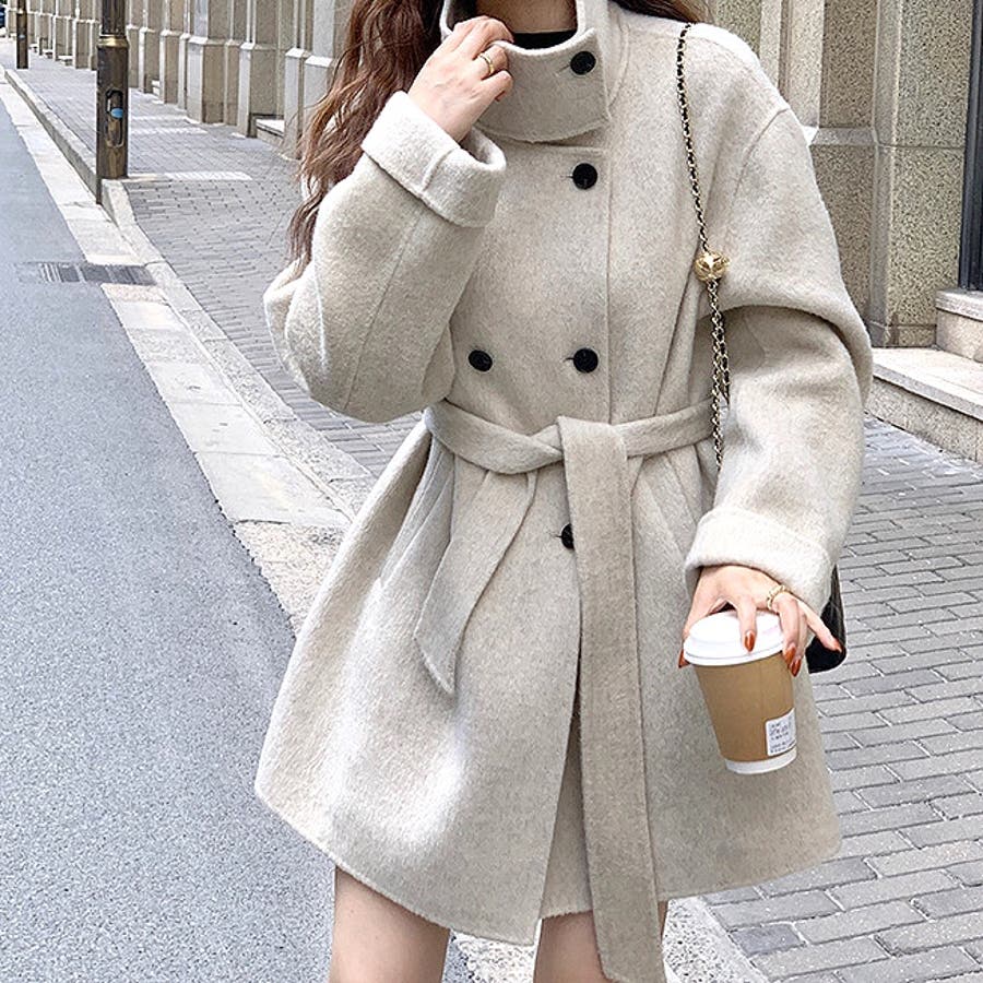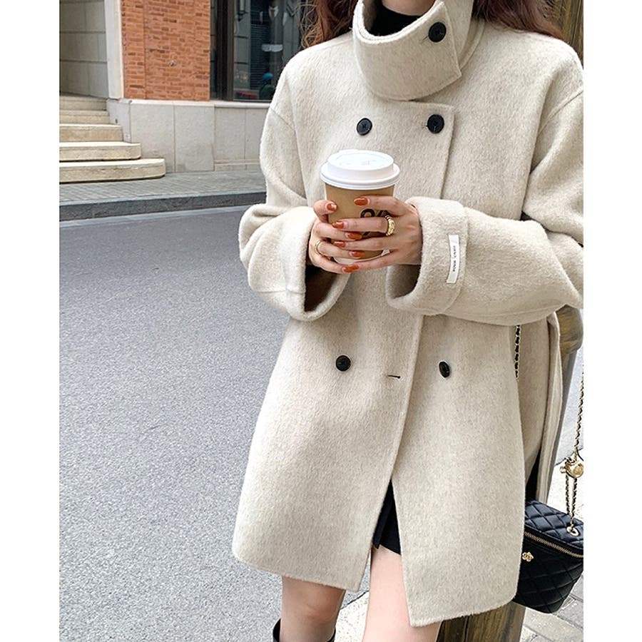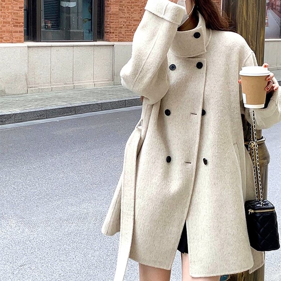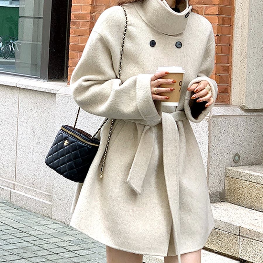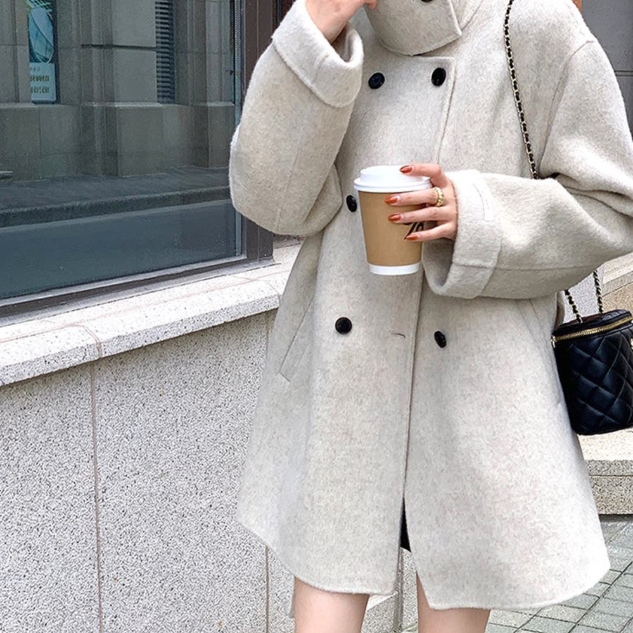 フェイクウールスタンドカラーミドル丈コート 秋 冬