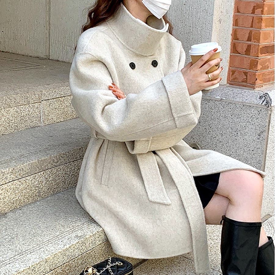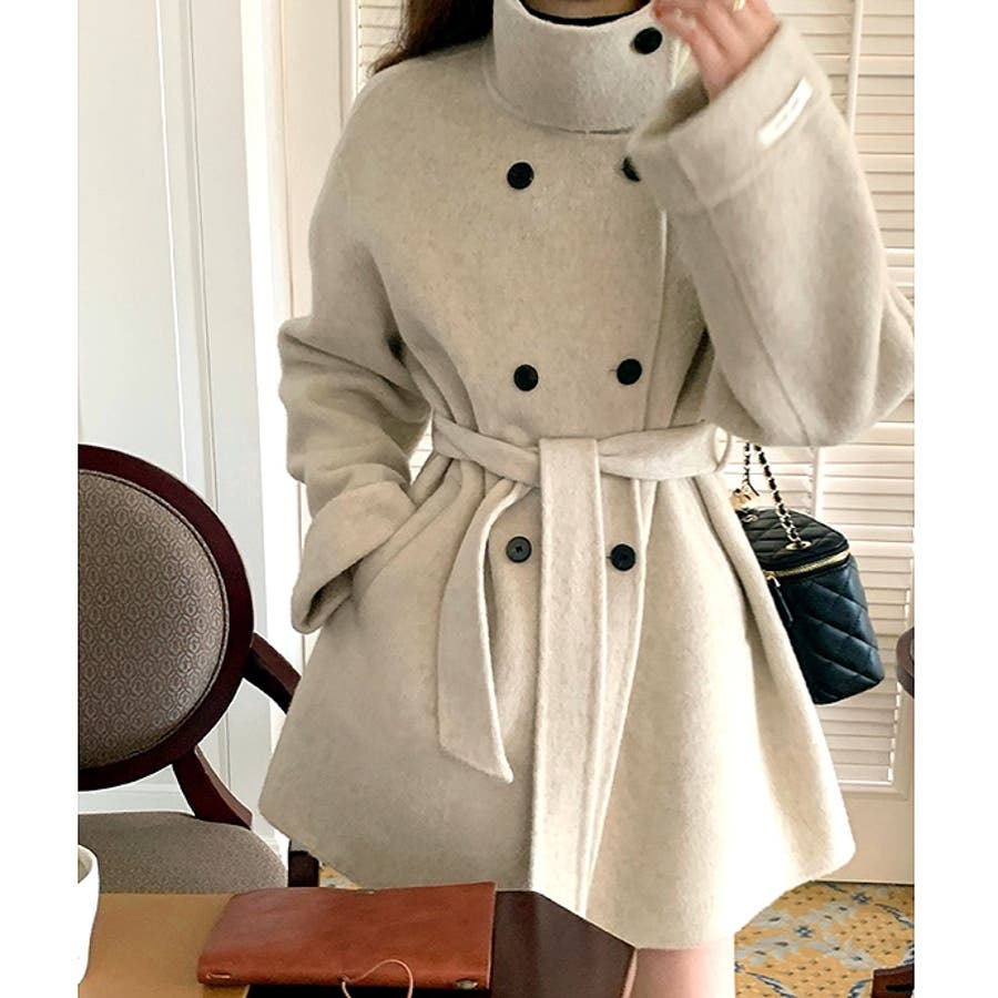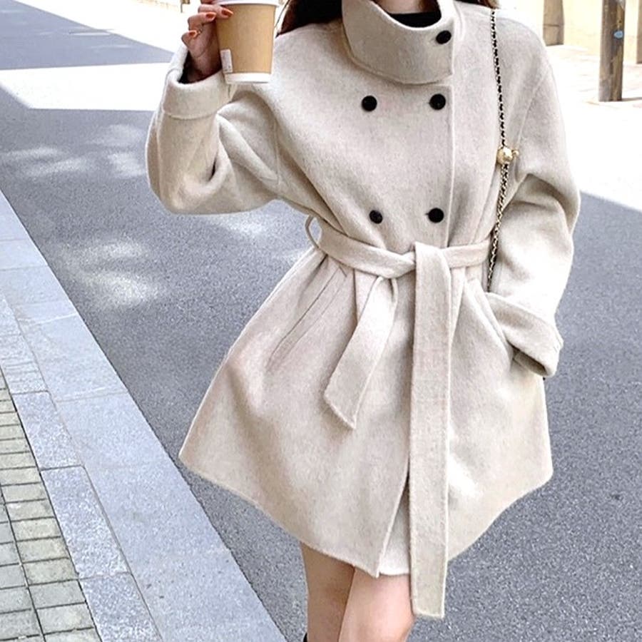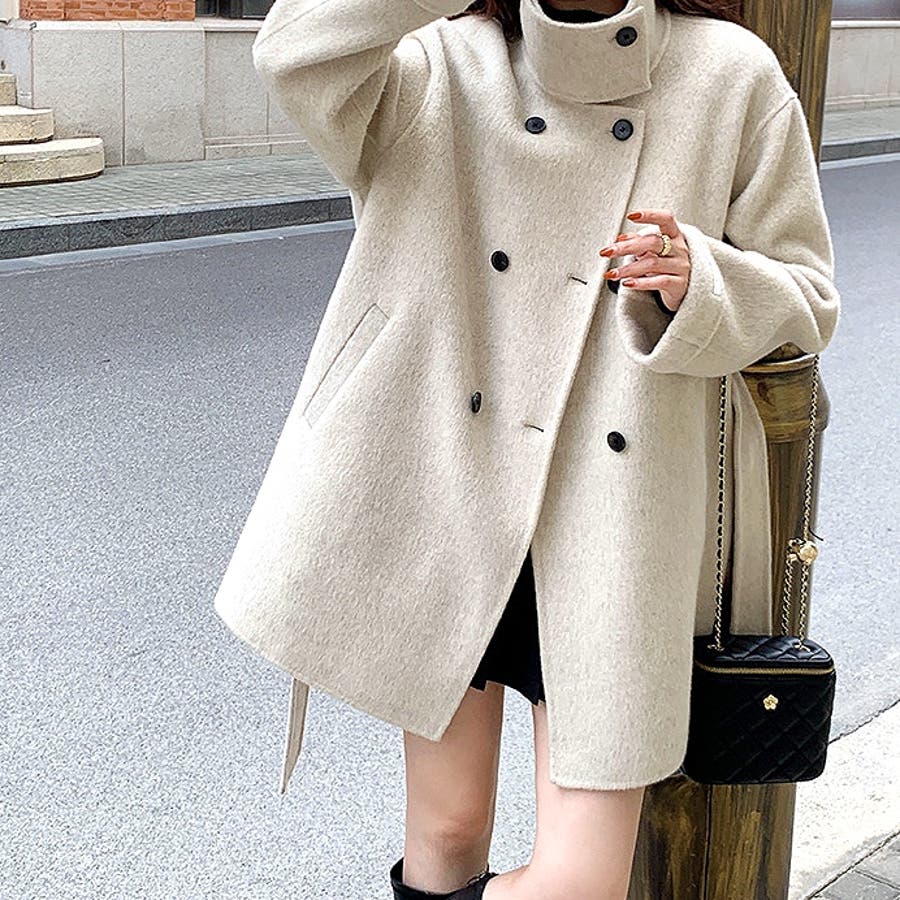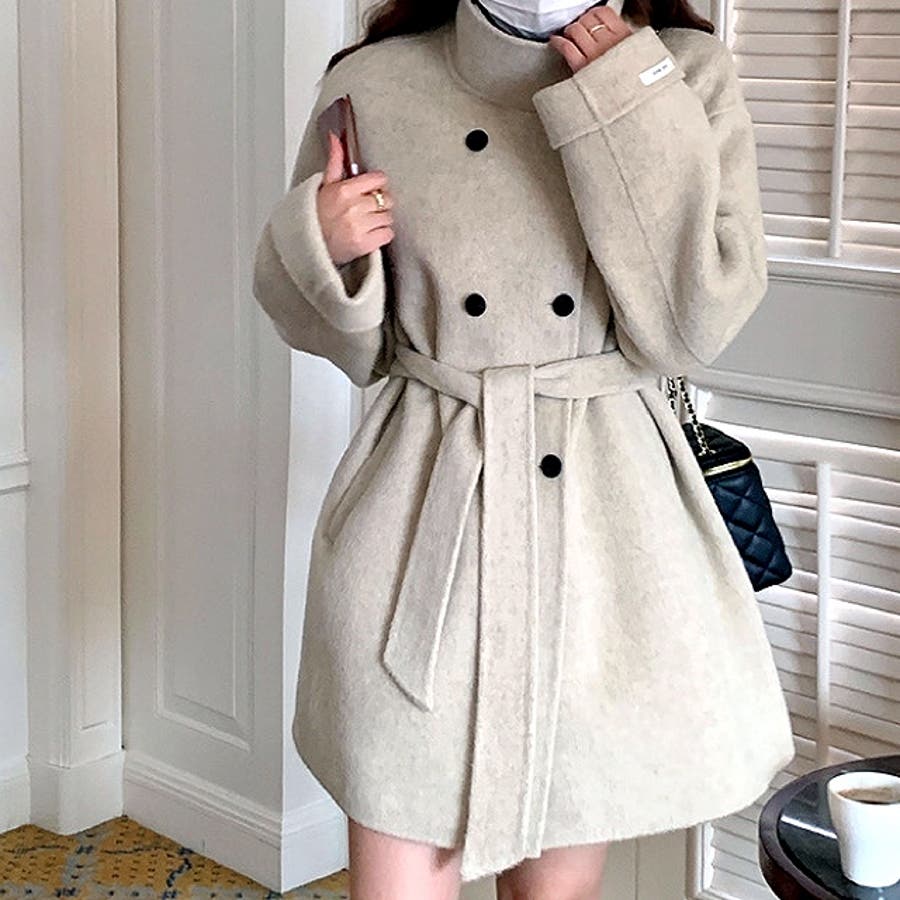 フェイクウールスタンドカラーミドル丈コート 秋 冬