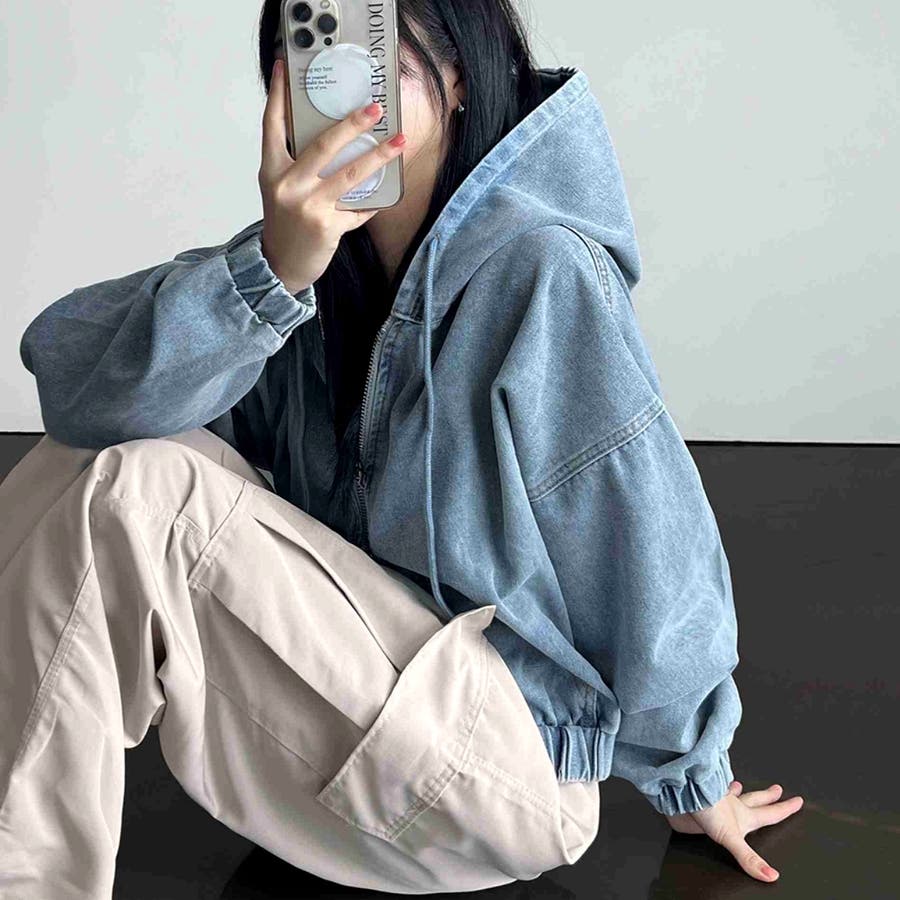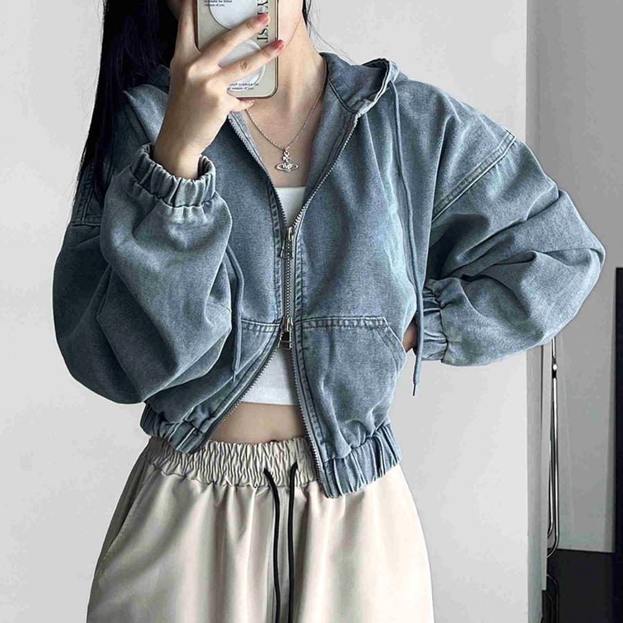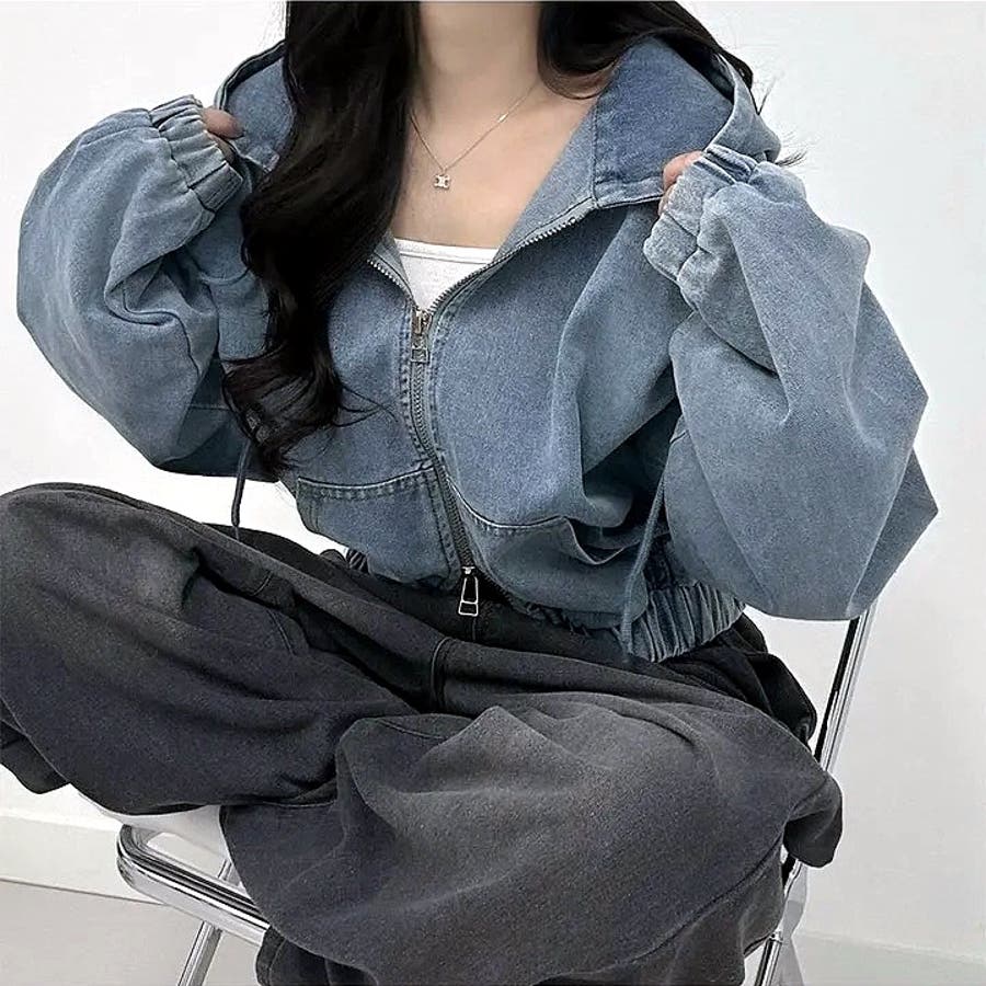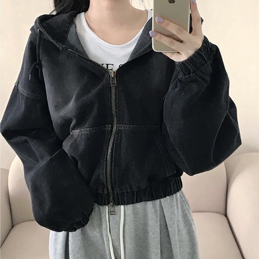 春 秋 冬 春服 秋服 冬服 羽織 トップス ゆったり ボリュームスリーブ クロップド丈 ショート丈 体型カバー カジュアル ストリート スポーティー 韓国 韓国ファッション トレンド 学生 ギャル Y2K 海外ガール フーディー