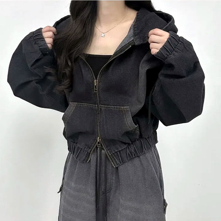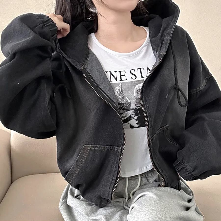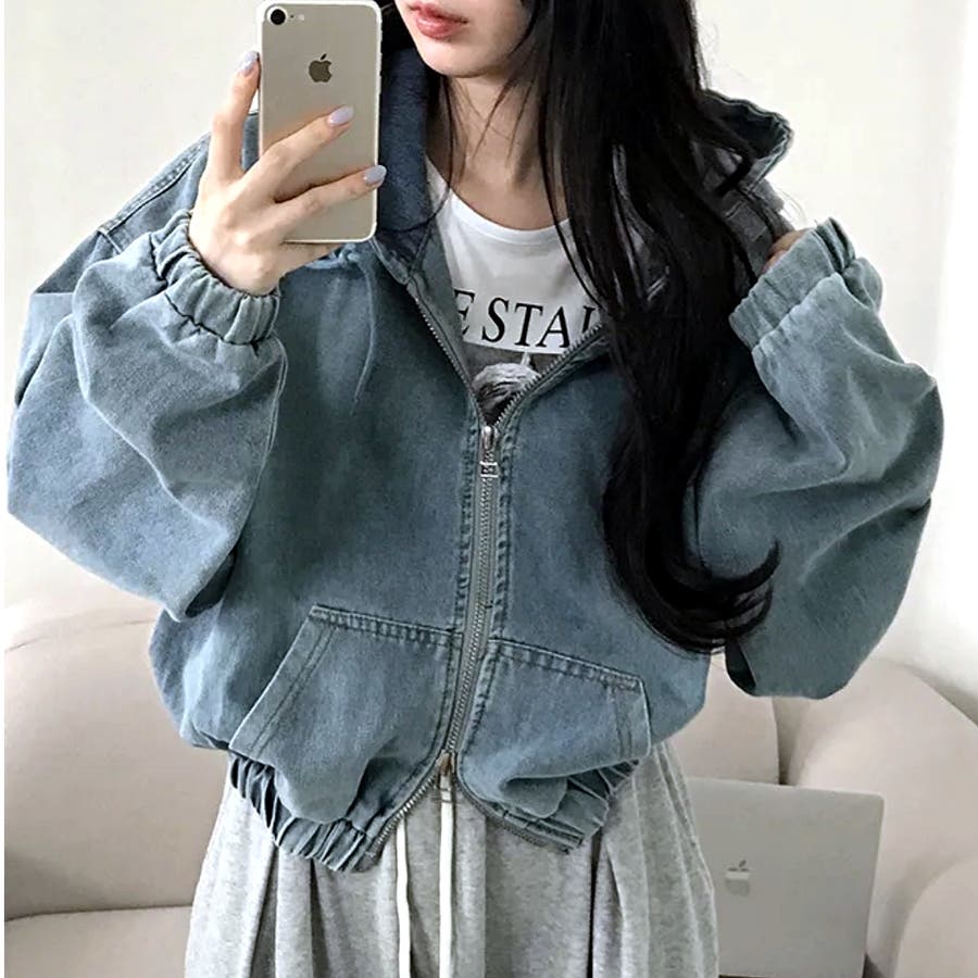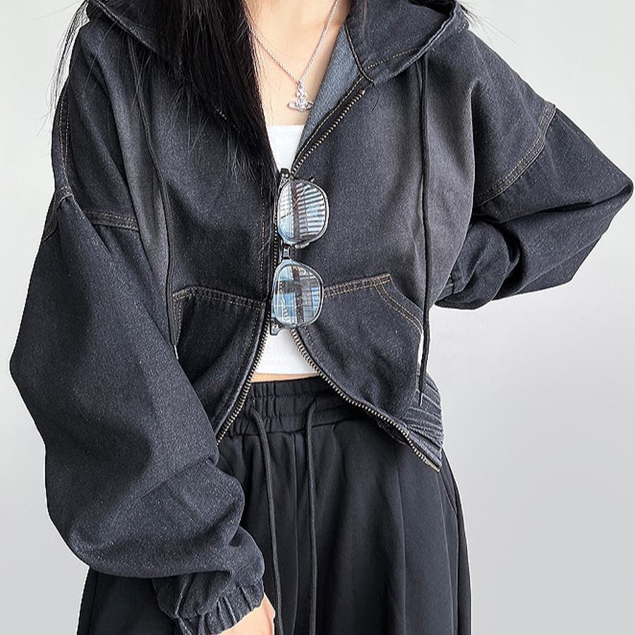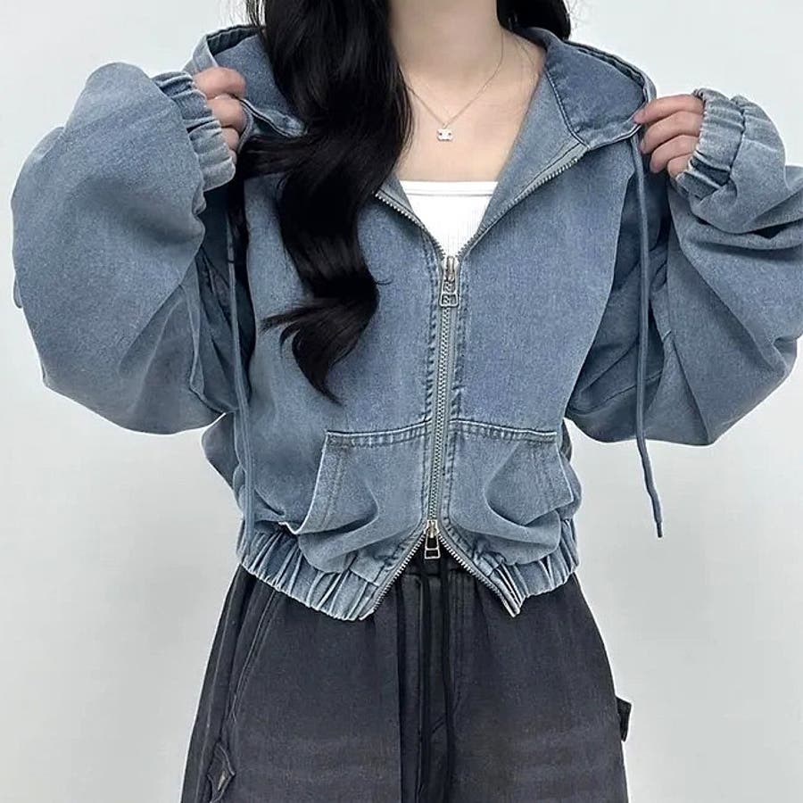 春 秋 冬 春服 秋服 冬服 羽織 トップス ゆったり ボリュームスリーブ クロップド丈 ショート丈 体型カバー カジュアル ストリート スポーティー 韓国 韓国ファッション トレンド 学生 ギャル Y2K 海外ガール フーディー