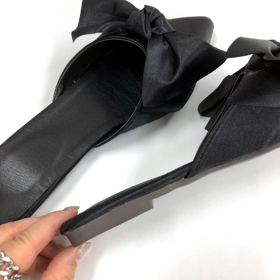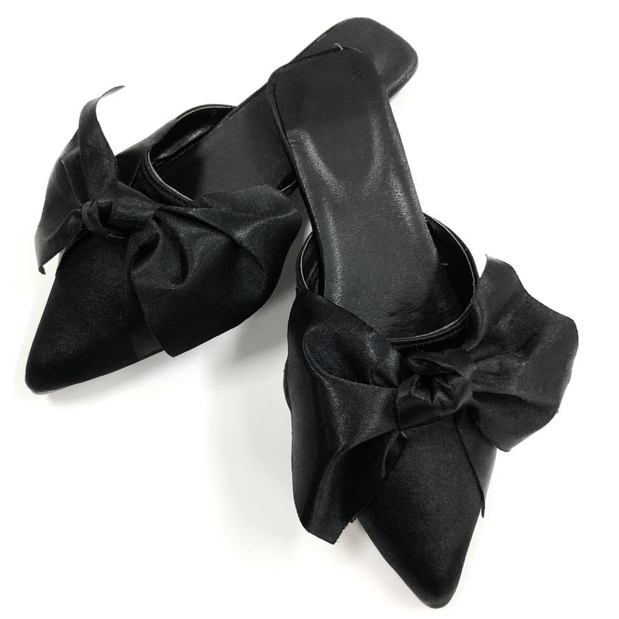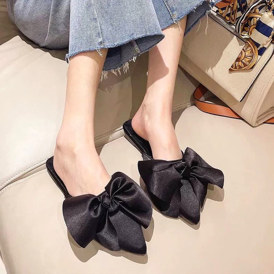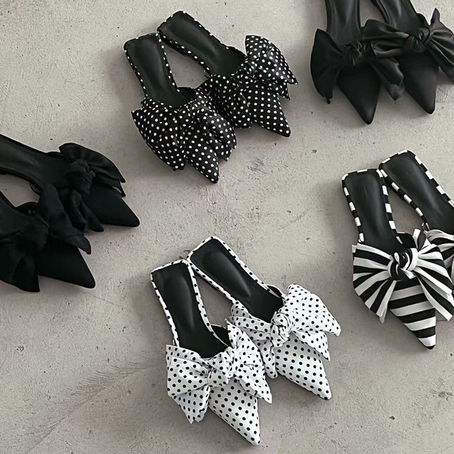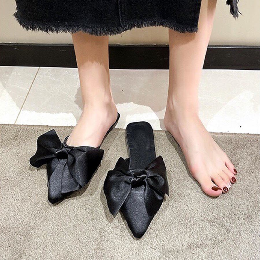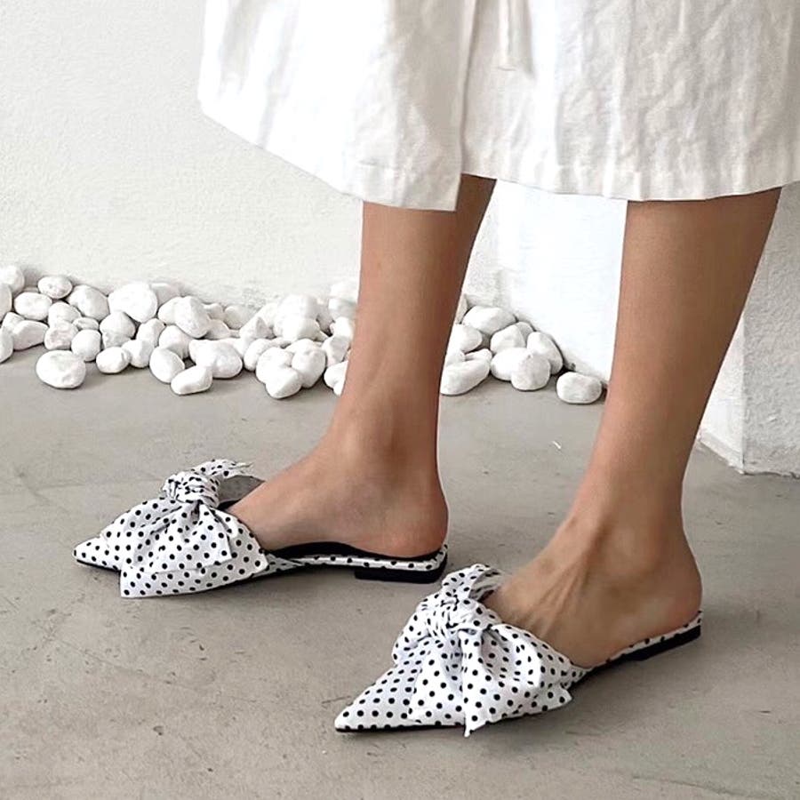 ポインテッドリボンフラットミュール 春 夏