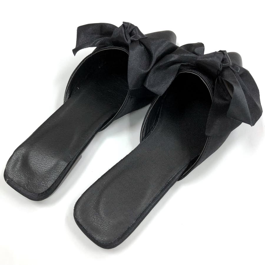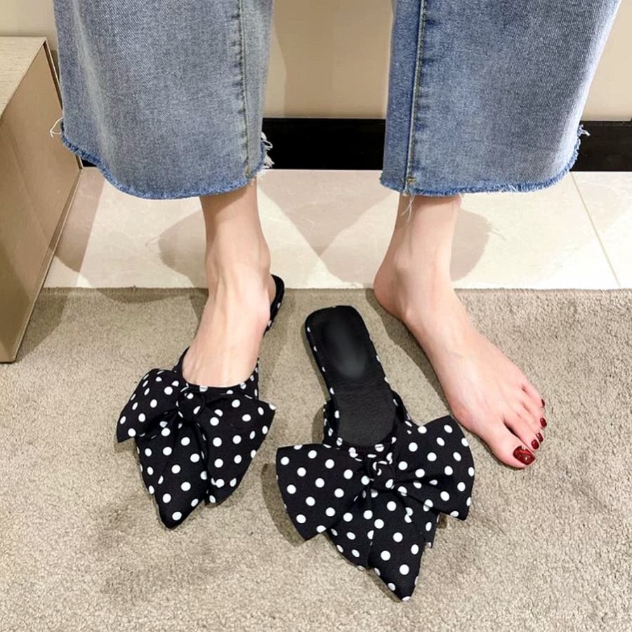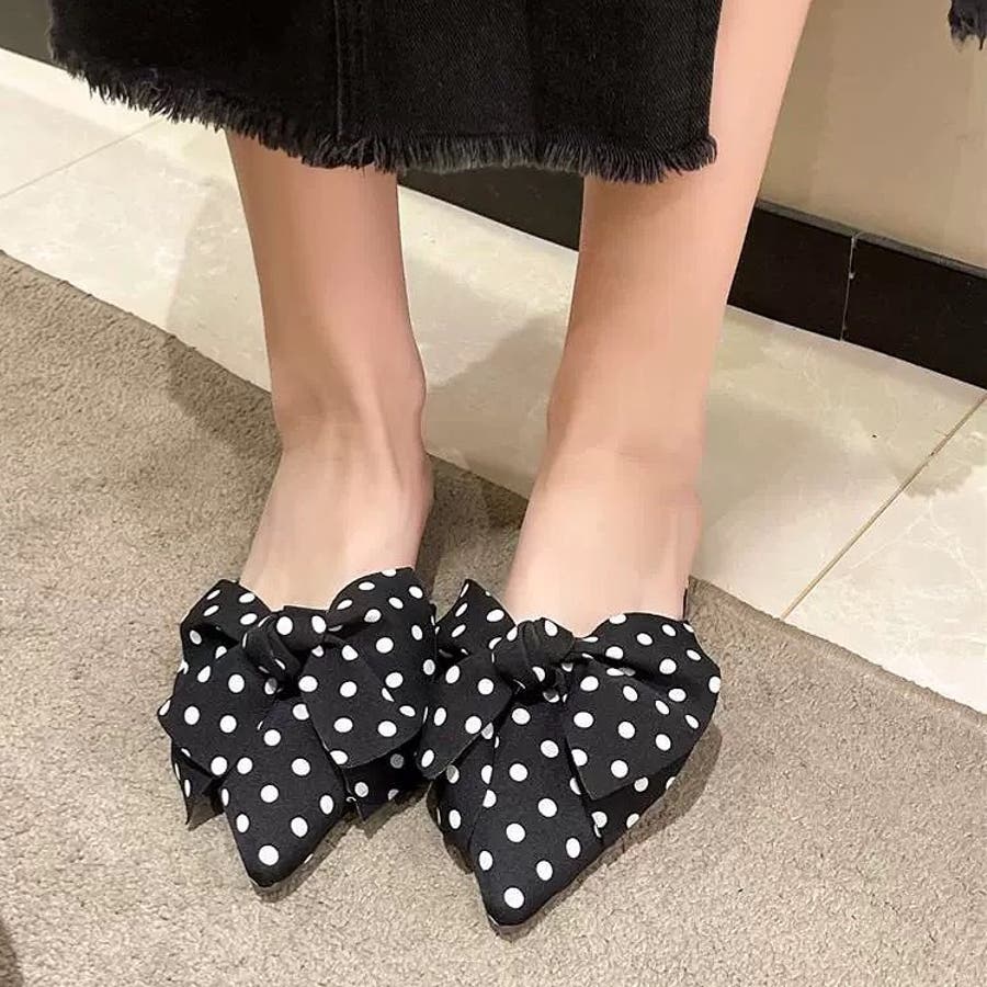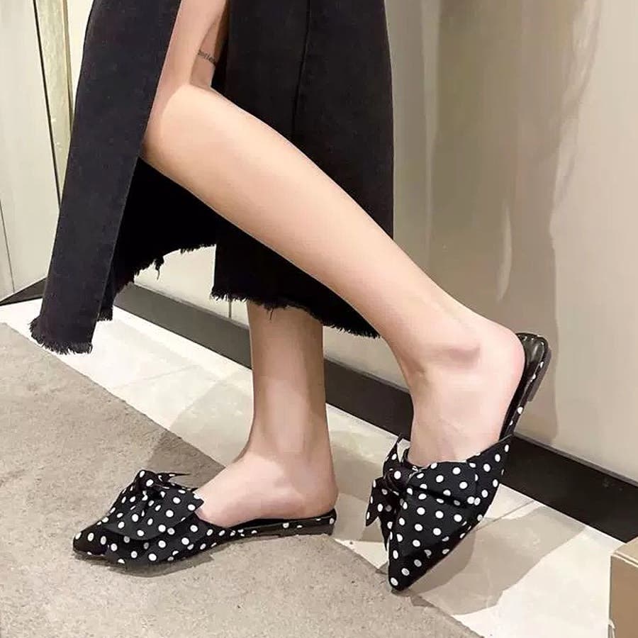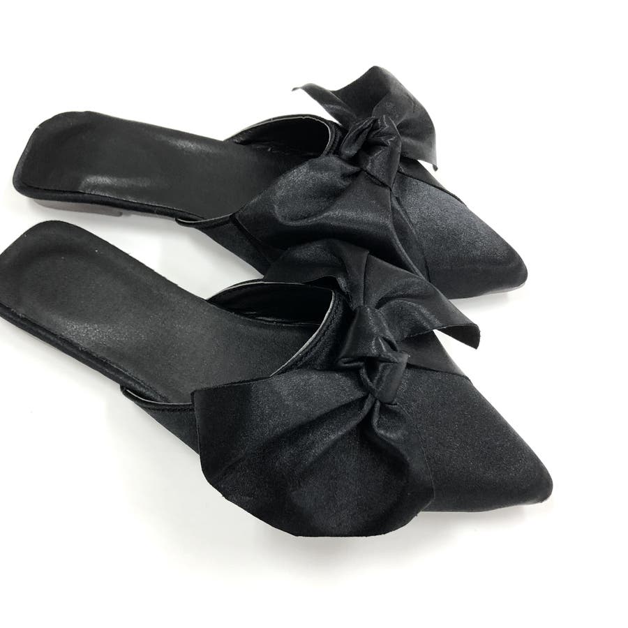 ポインテッドリボンフラットミュール 春 夏