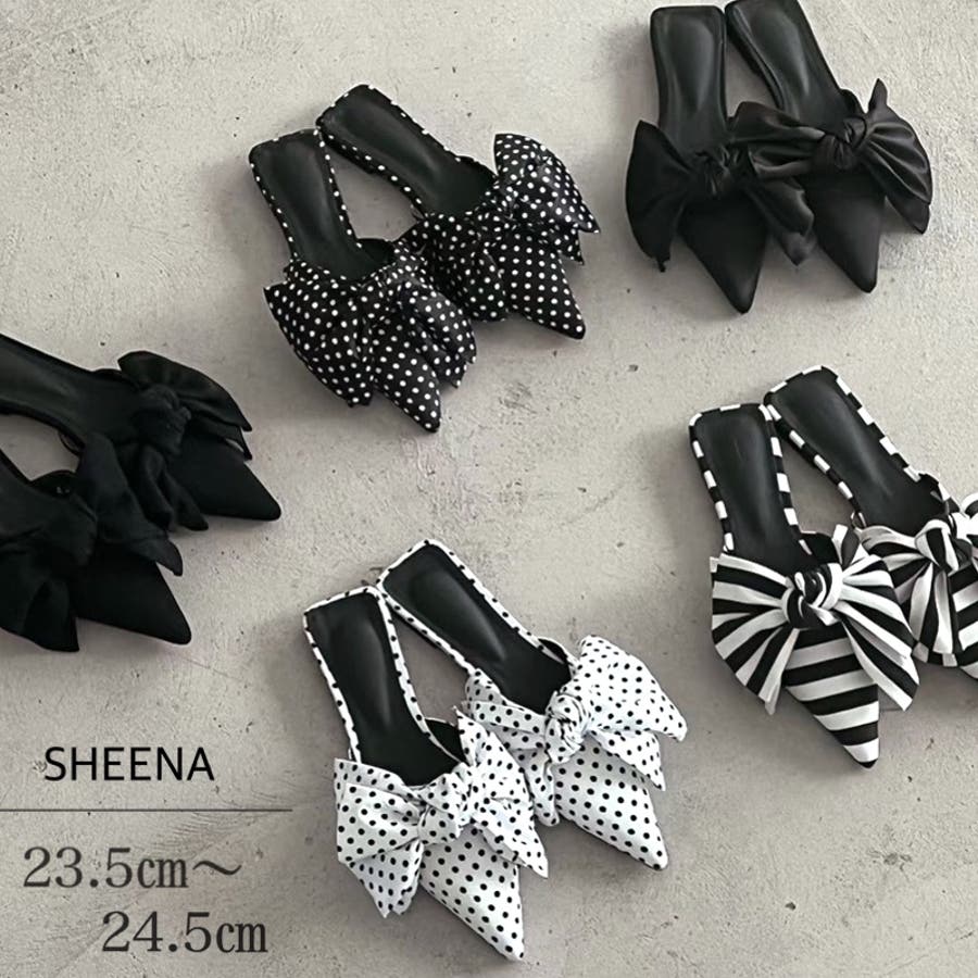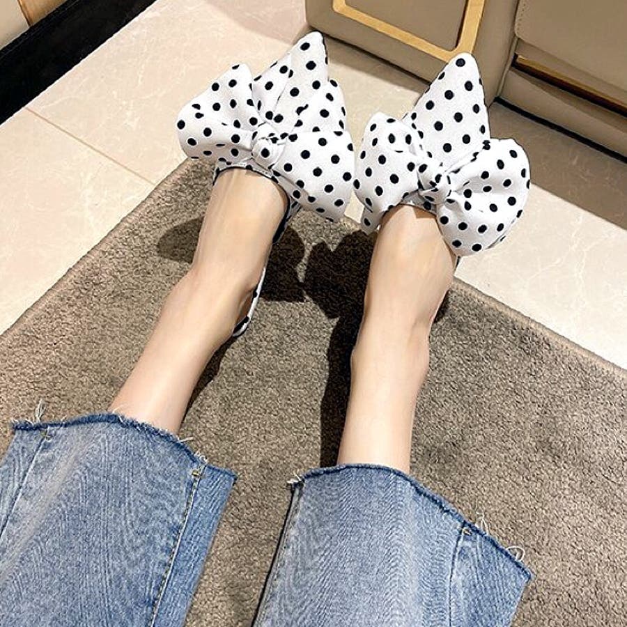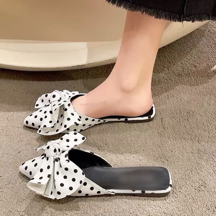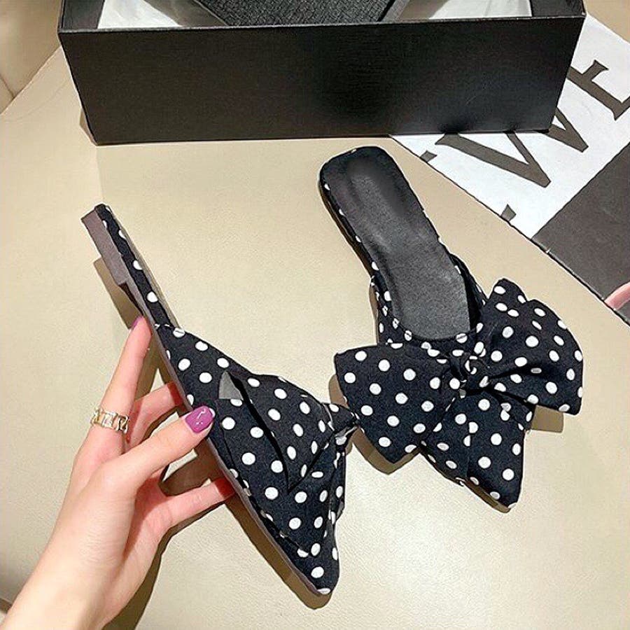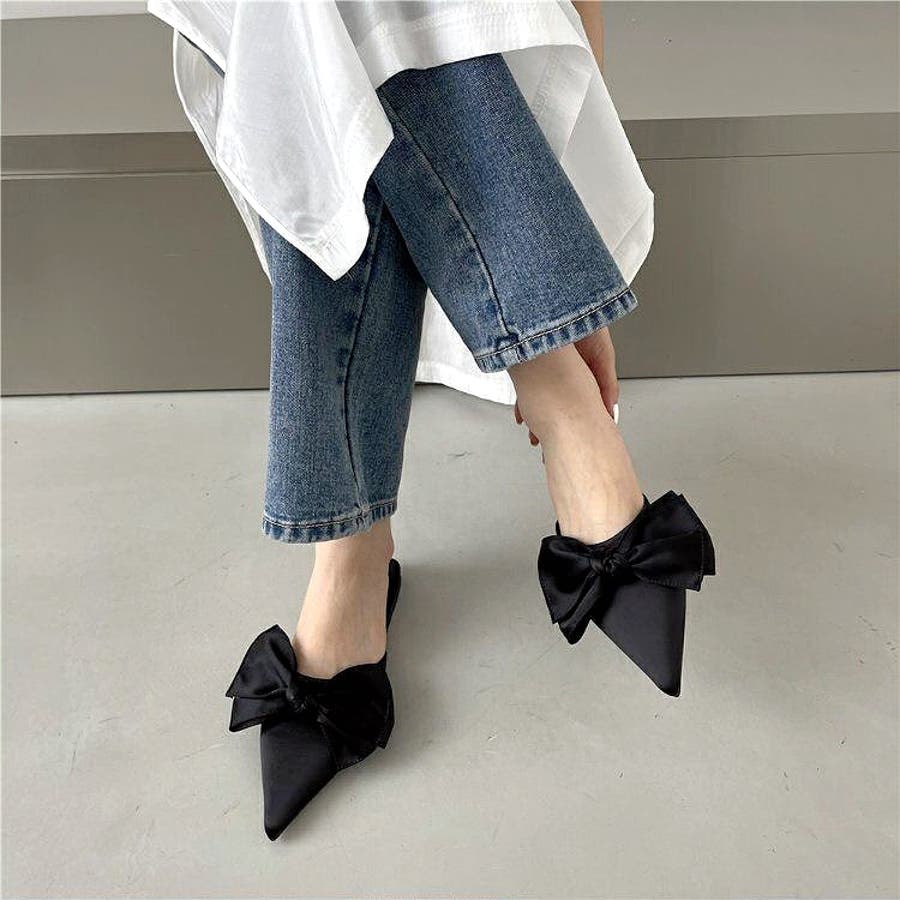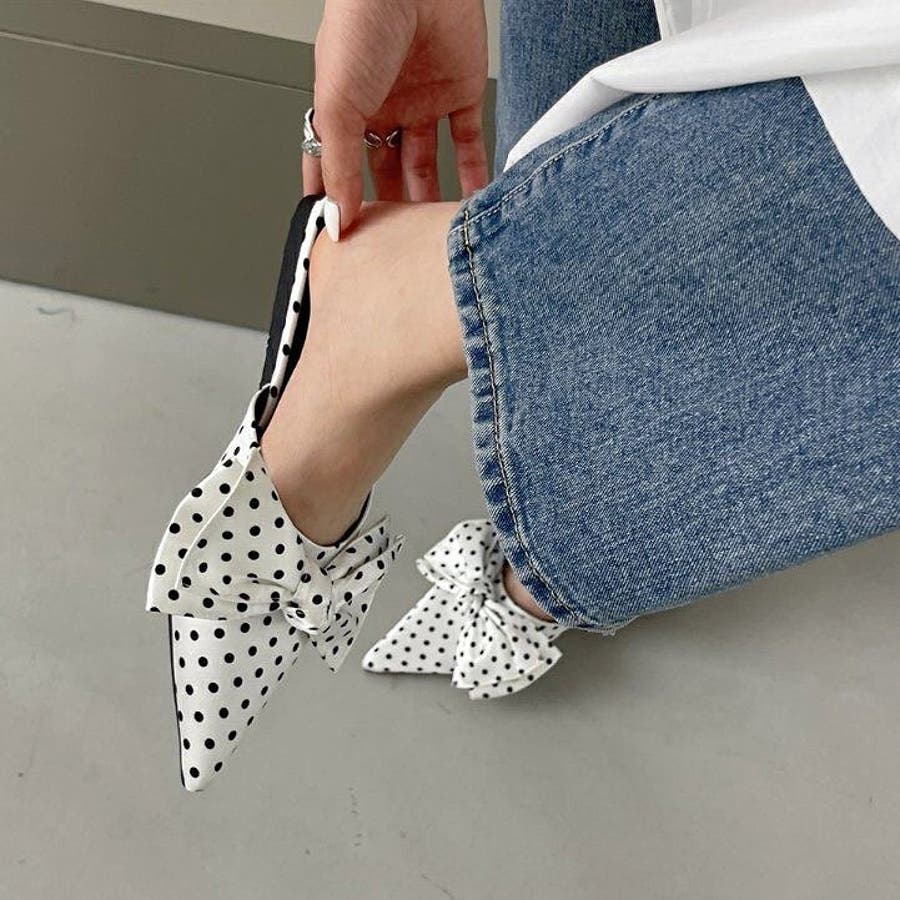 ポインテッドリボンフラットミュール 春 夏