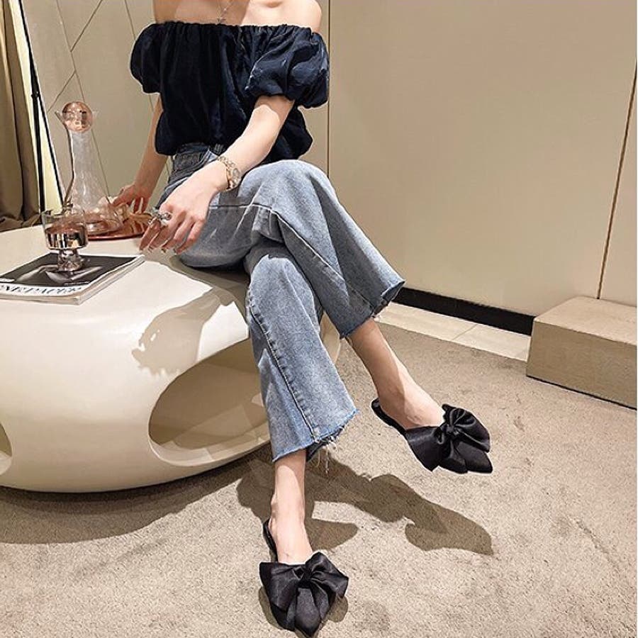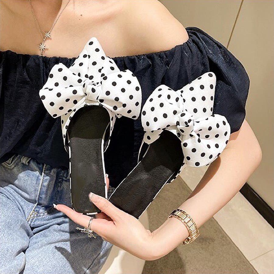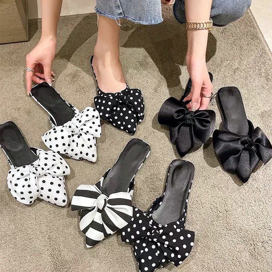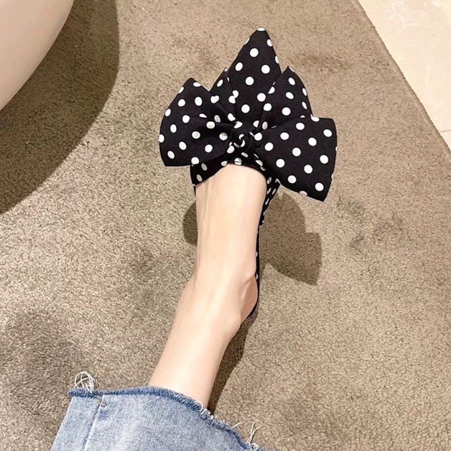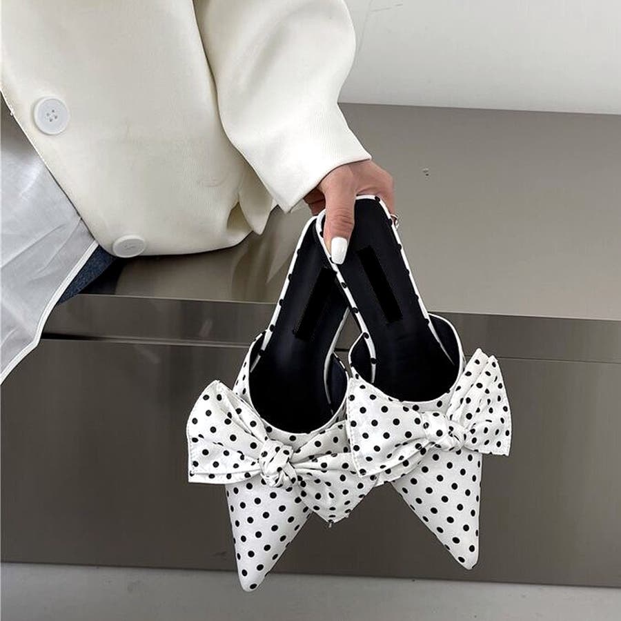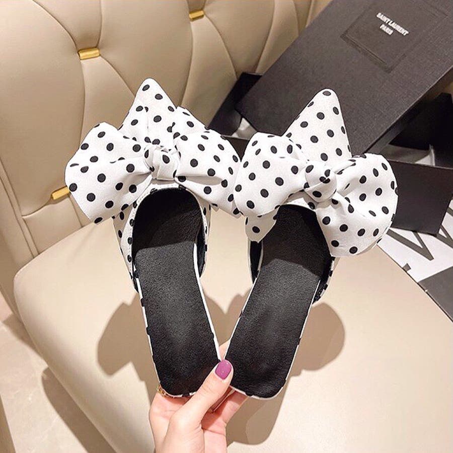 ポインテッドリボンフラットミュール 春 夏