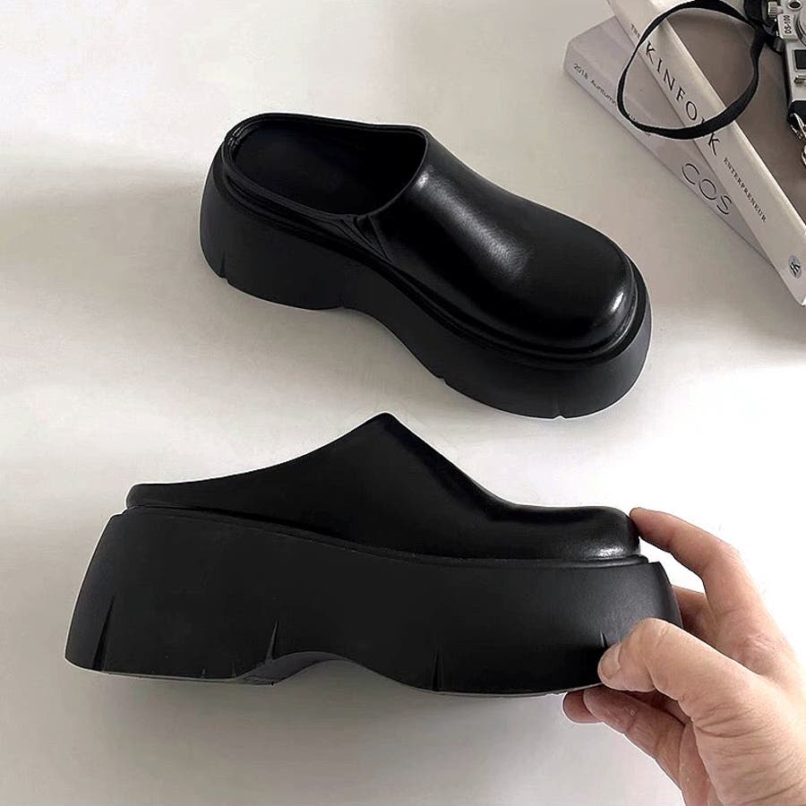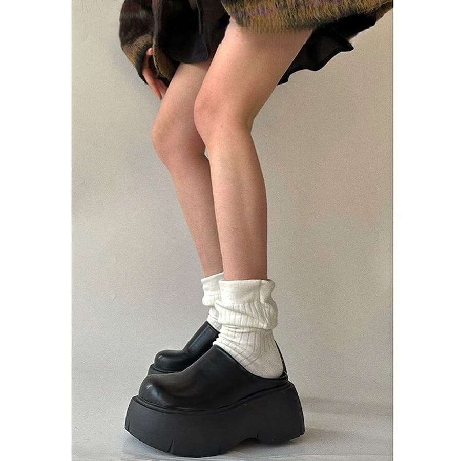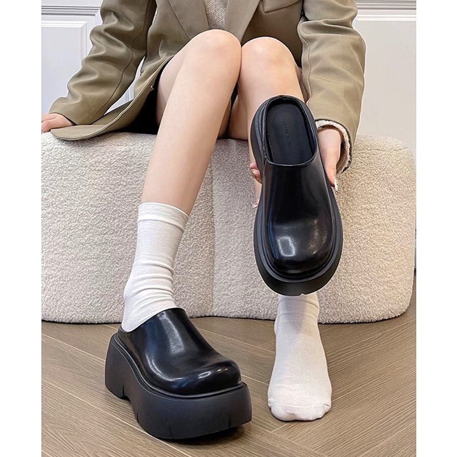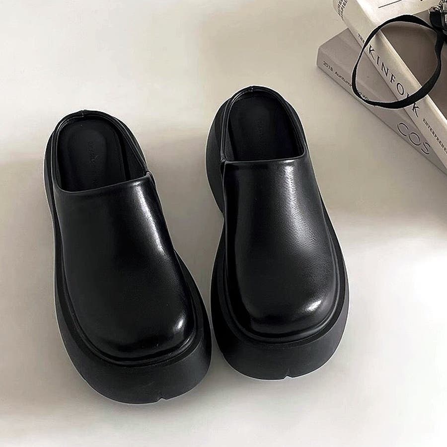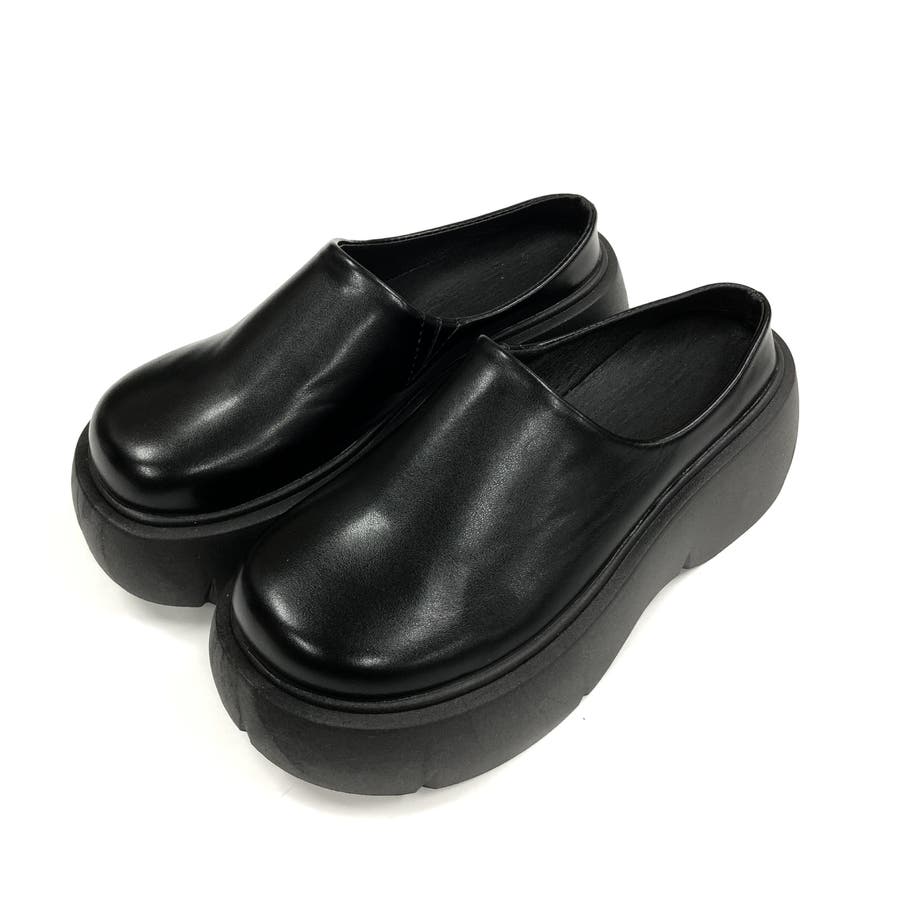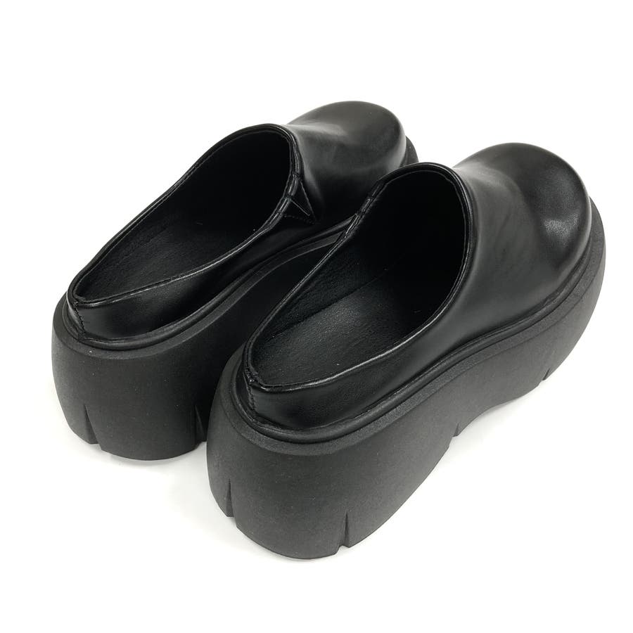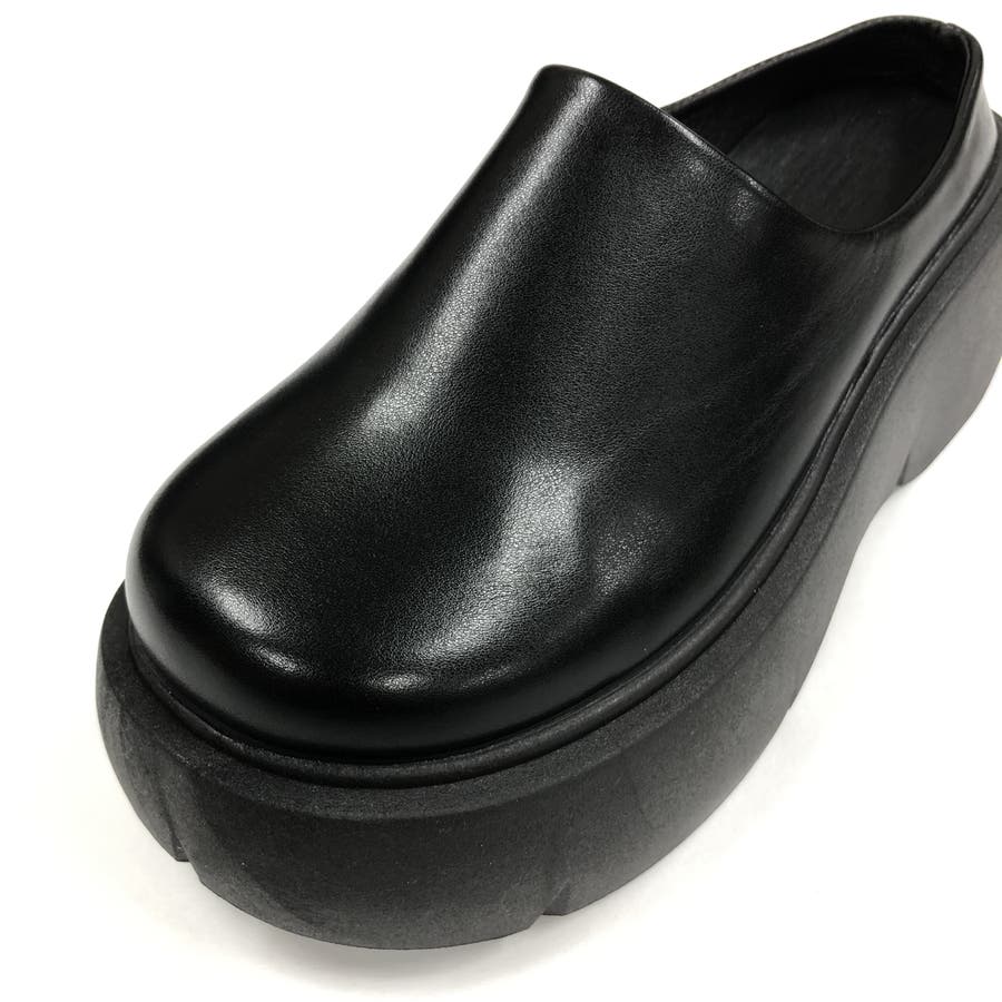 フェイクレザー厚底サボ クロッグシューズ 秋