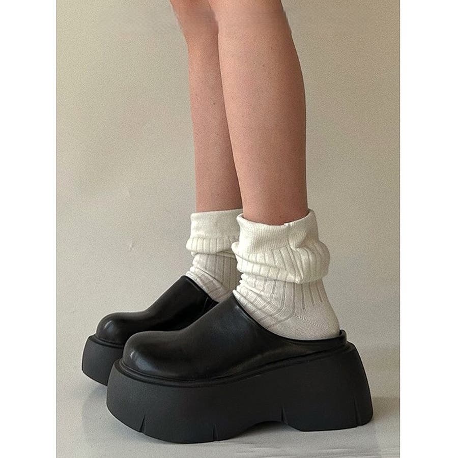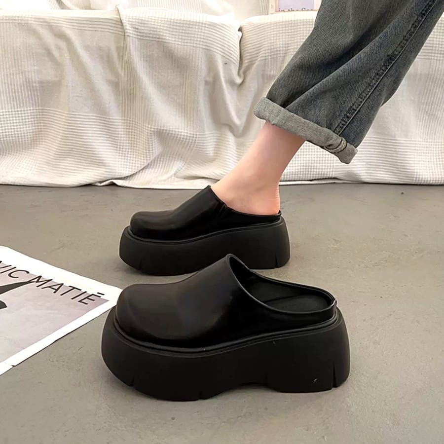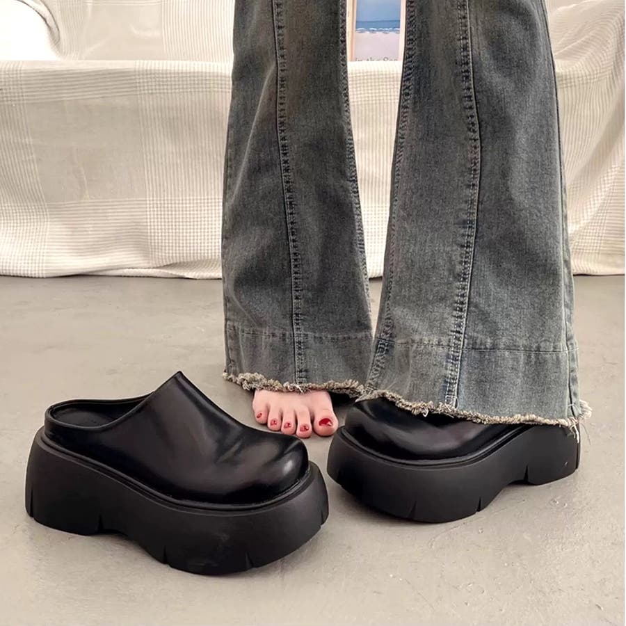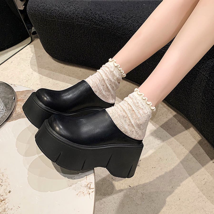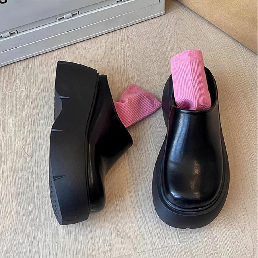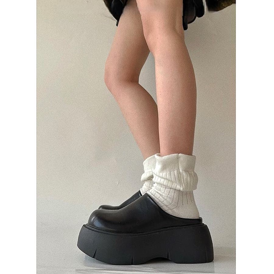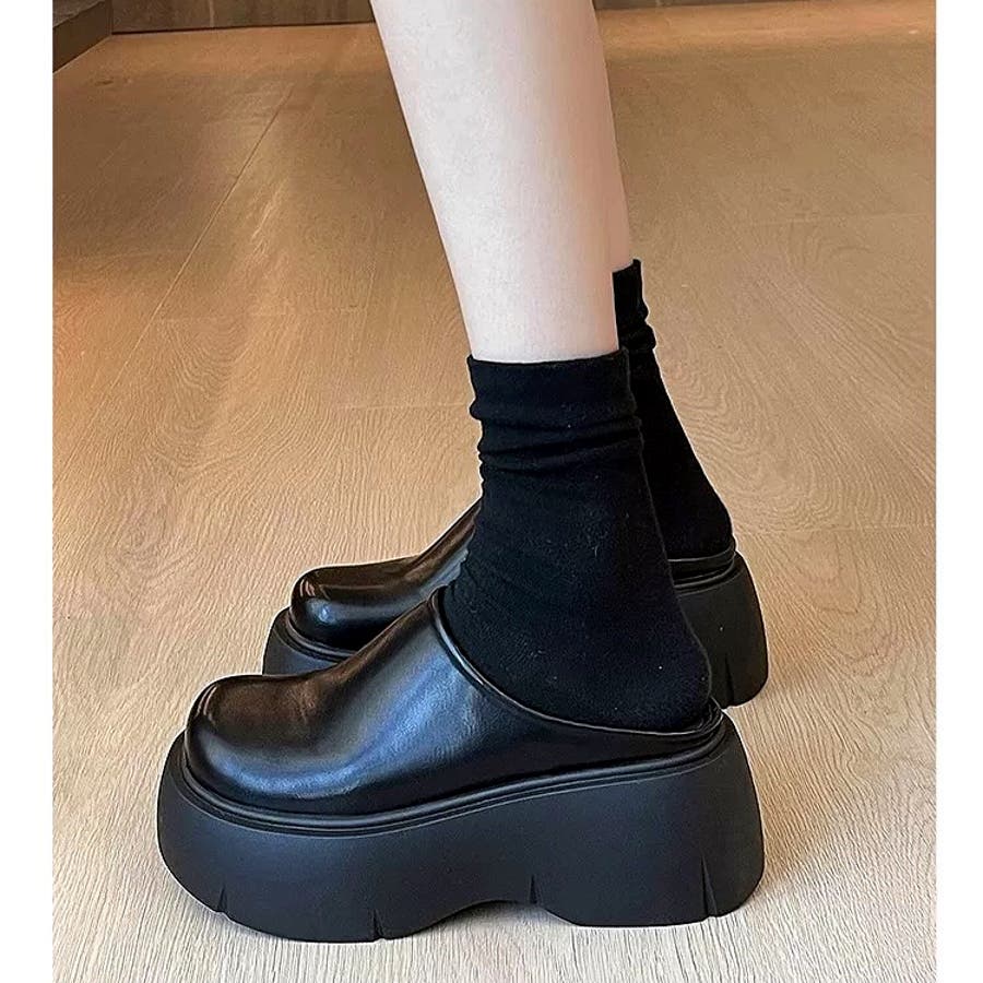 フェイクレザー厚底サボ クロッグシューズ 秋
