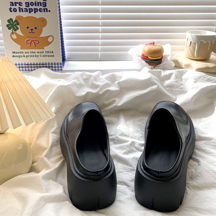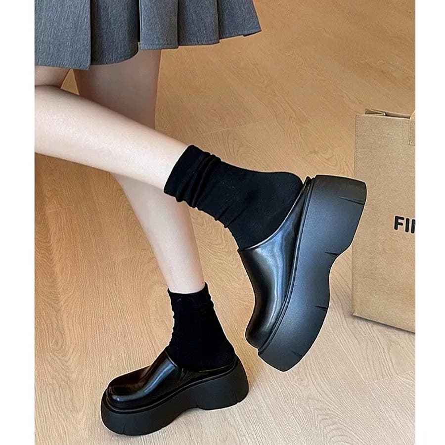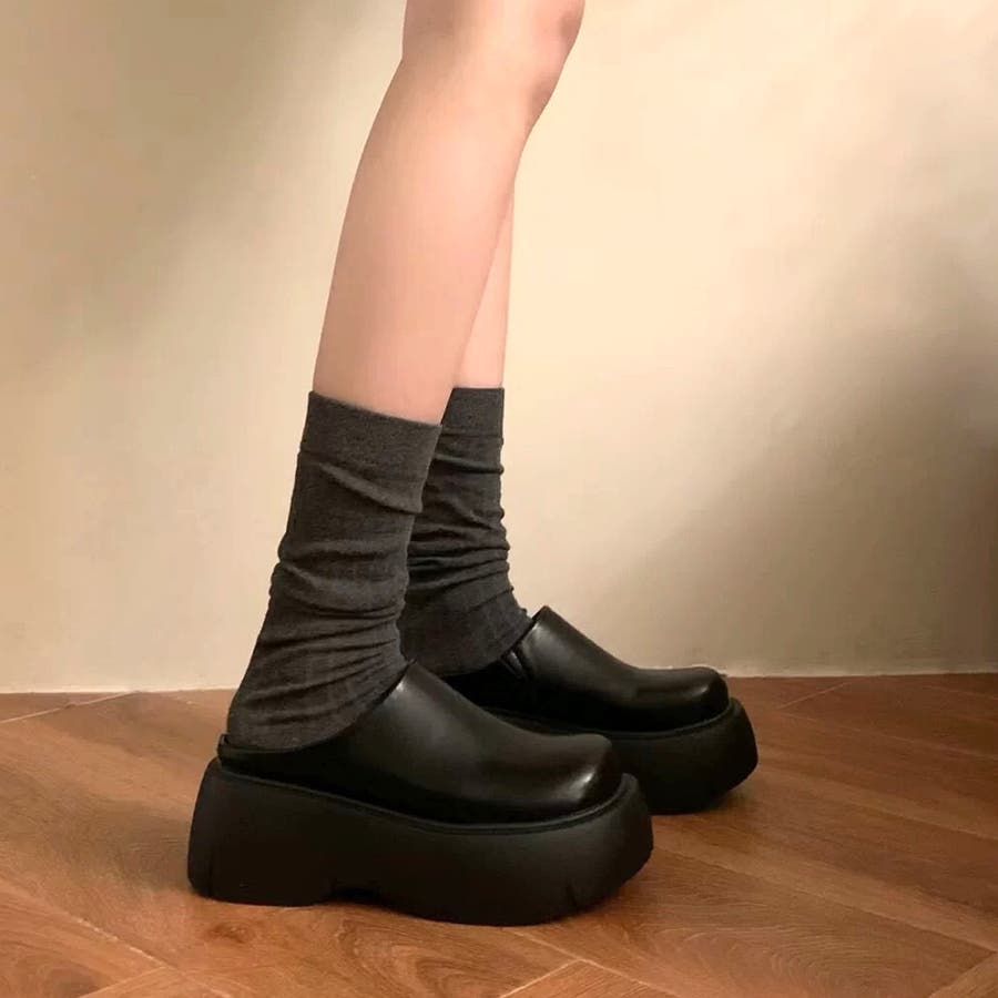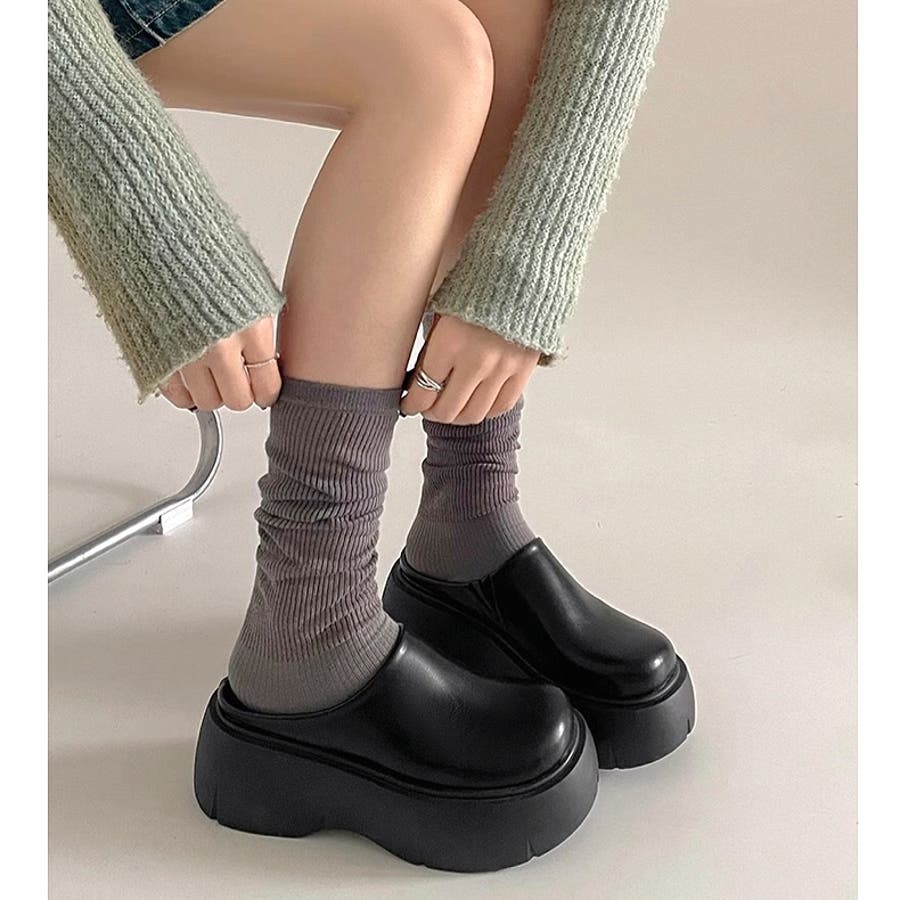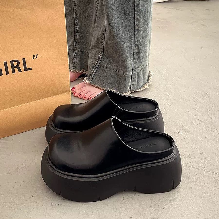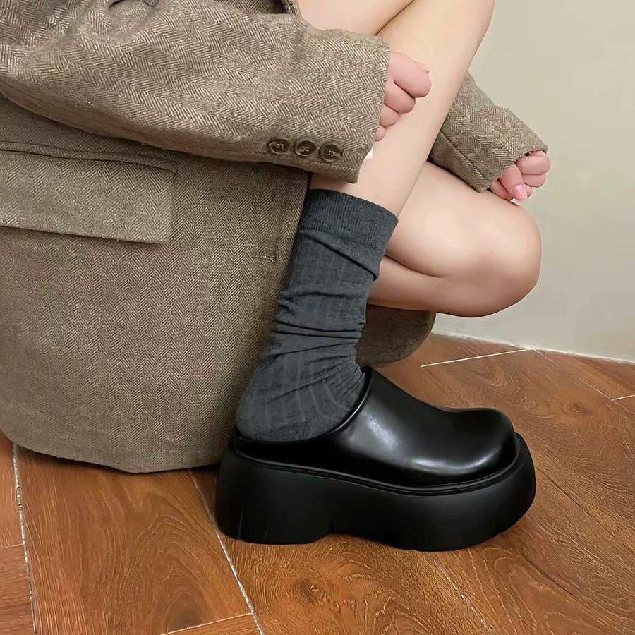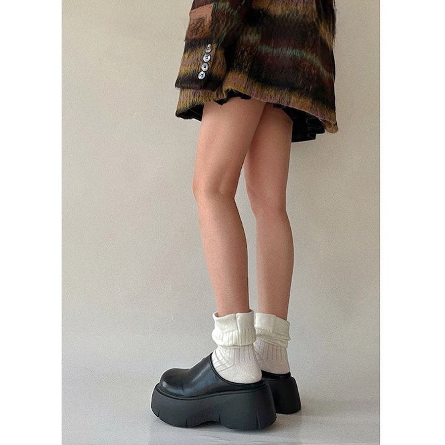 フェイクレザー厚底サボ クロッグシューズ 秋