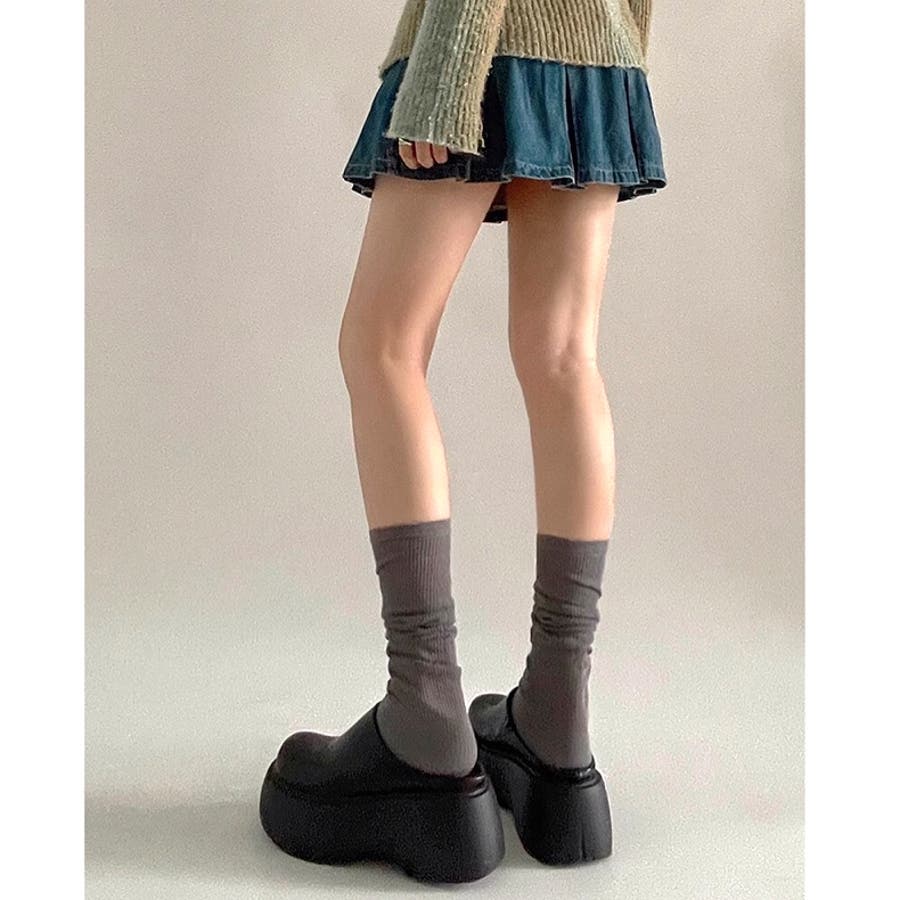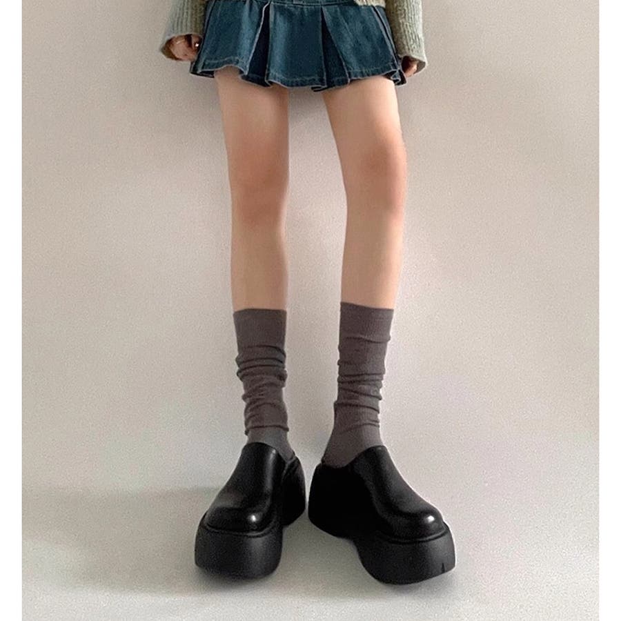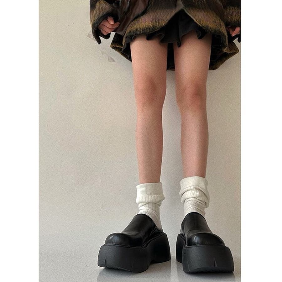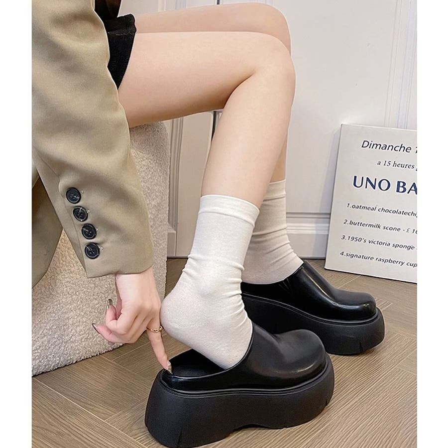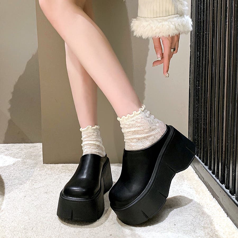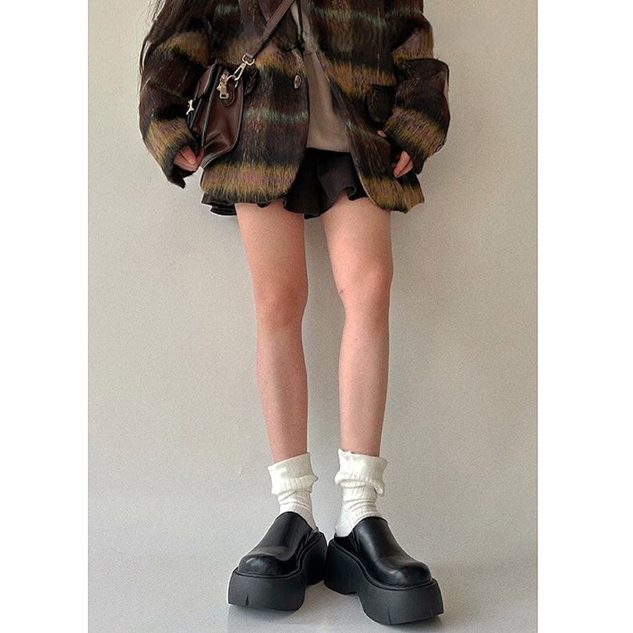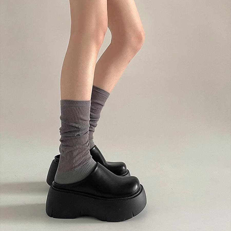 フェイクレザー厚底サボ クロッグシューズ 秋