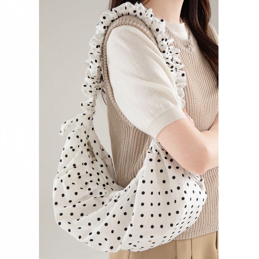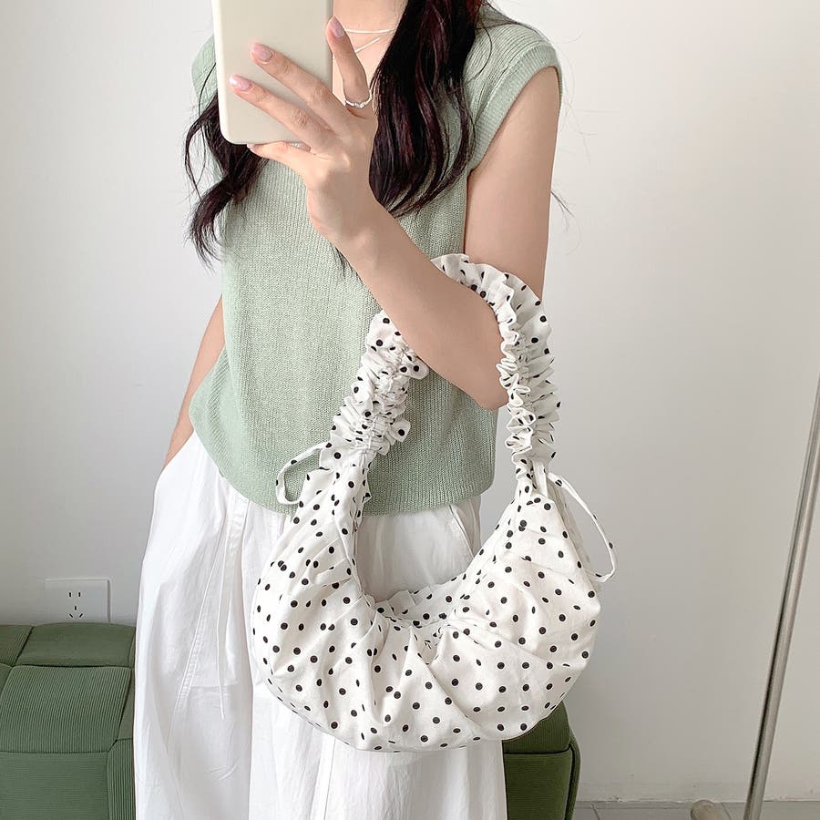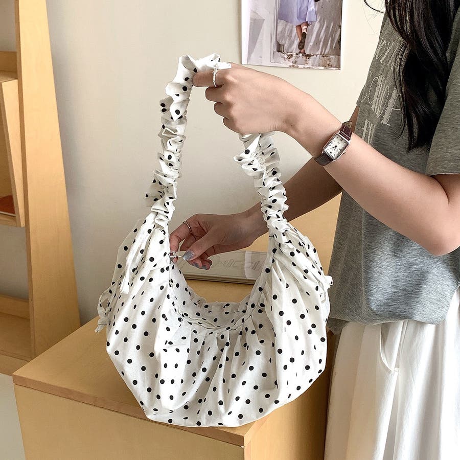 新作 春 夏 秋 冬 オールシーズン 鞄 バッグ bag ショルダーバッグ ハンドバッグ クロスボディバッグ 斜め掛け ハーフムーン ドット柄 ポルカドット シャーリング ギャザー くしゅくしゅ ドロスト 2way 3way カジュアル 大人カジュアル ストリート スポーティー 韓国 韓国ファッション トレンド OL 主婦 学生 ギャル Y2K 海外ガール シティガール お洒落 可愛い 通勤 通学 10代 20代 30代 40代 50代