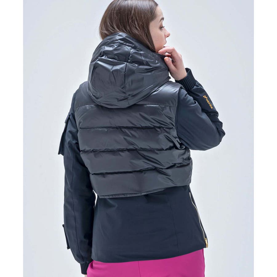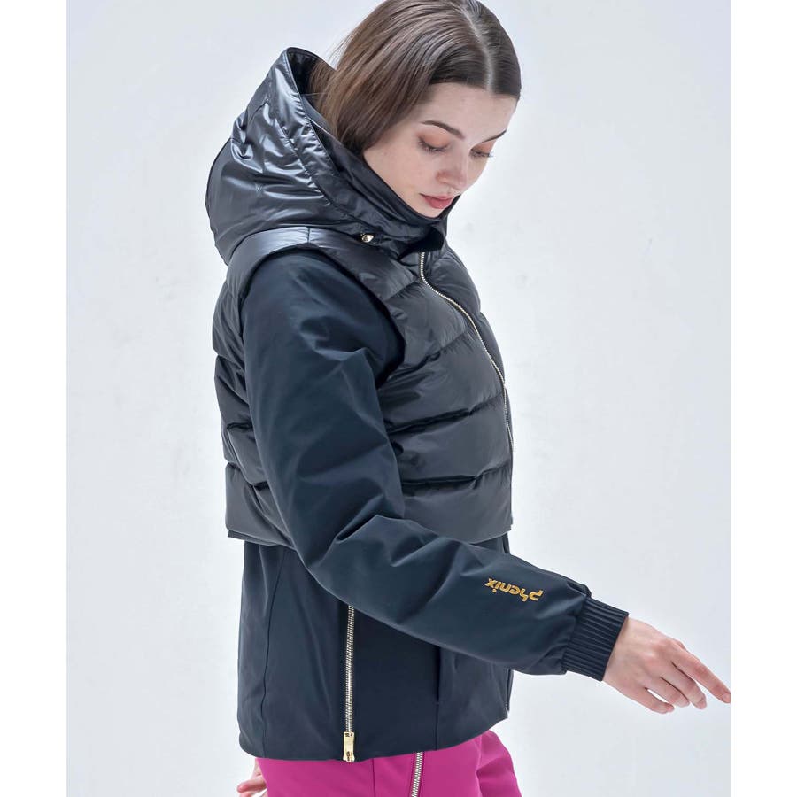クロップド丈のダウンベスト付きジャケット。ジャケット単体、ベスト単体でも着用可能。