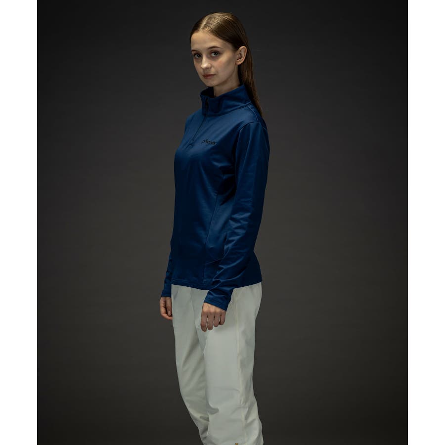 また、ハーフジップデザインにより、体温調節も容易で、スポーティーな印象を与えます。