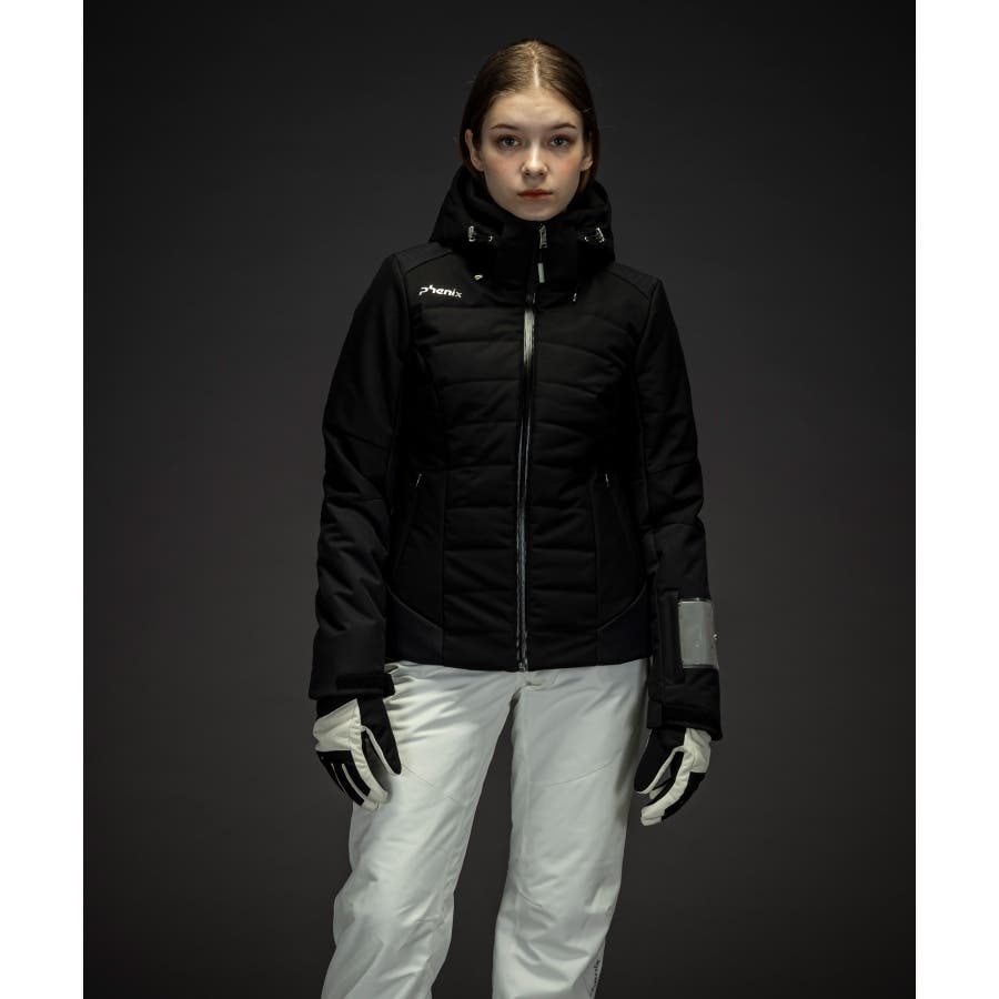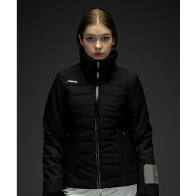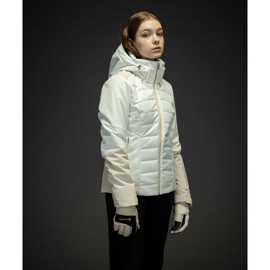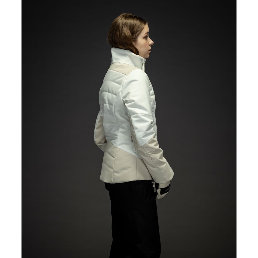 スタイリッシュなスノージャケットで、ヘリンボンの異素材ミックスが特徴的なデザイン。