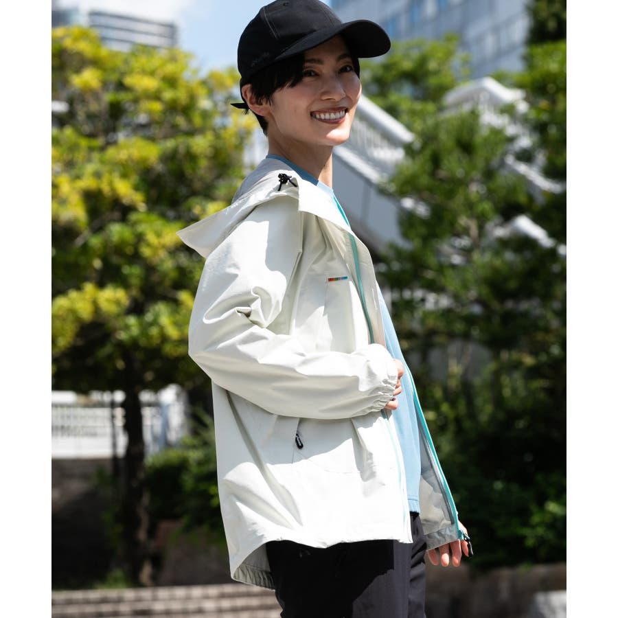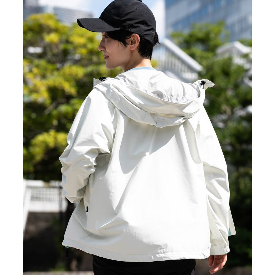 さらに、フードのベルクロ調節タブや袖口のシャーリング&ベルクロ調節タブにより、フィット感を細かく調整できるので、風雨からしっかり守ります。