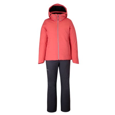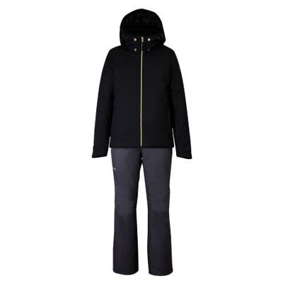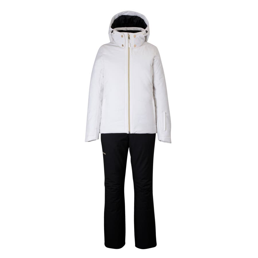 レディース向けのスキーウェアセットで、機能性とスタイルを両立させたアイテム。