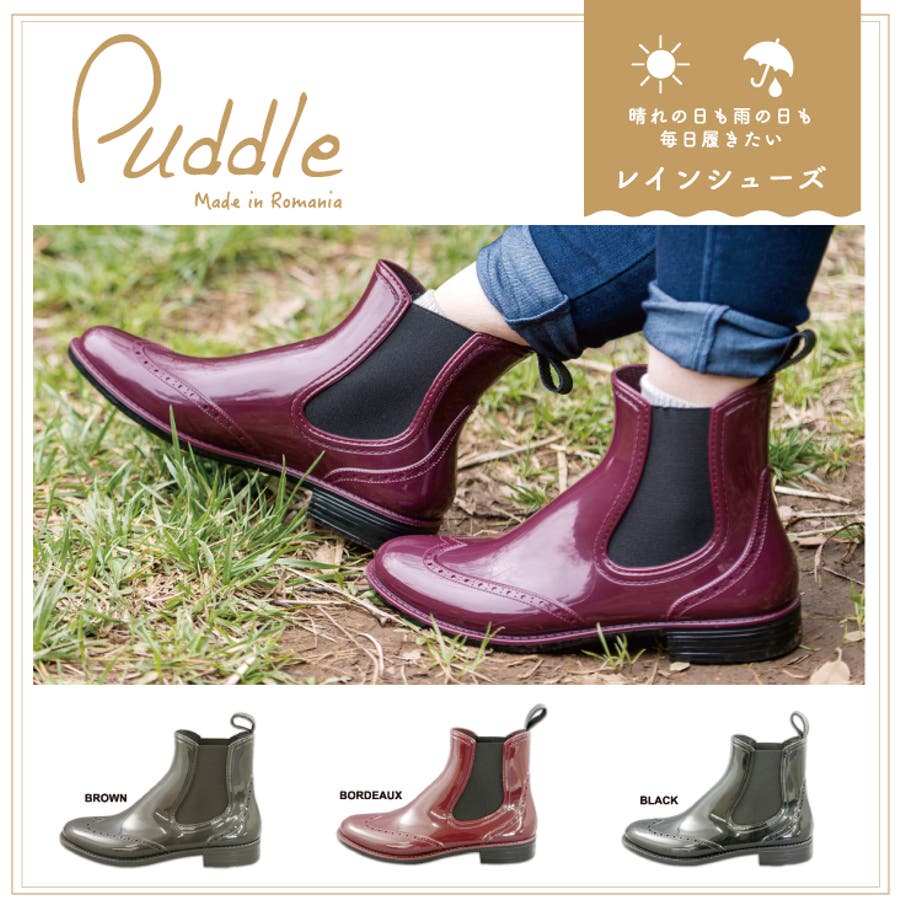 【Puddle】パドル☆サイドゴアブーツレイン♪【エナメル】