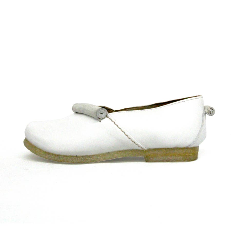 革をロール状にして巻パンをイメージしたデザインが甲部分とカカト部分にあり、