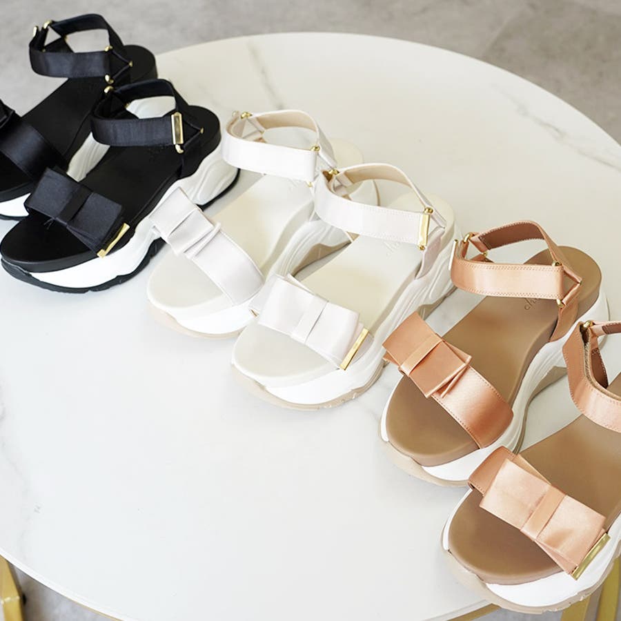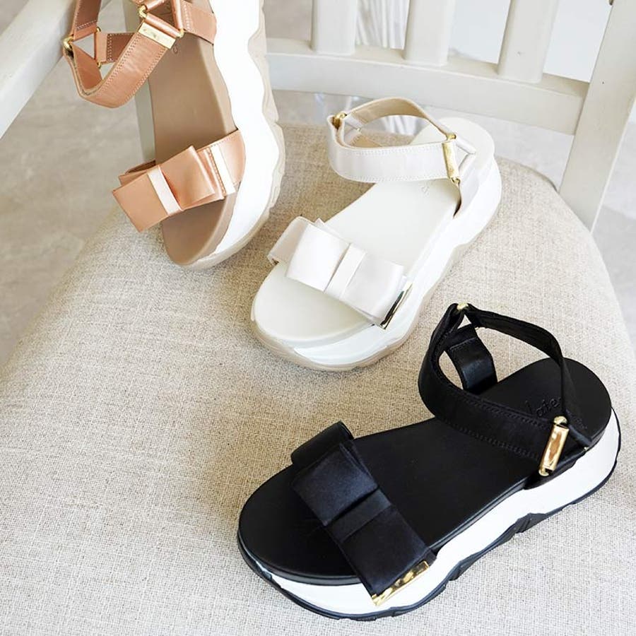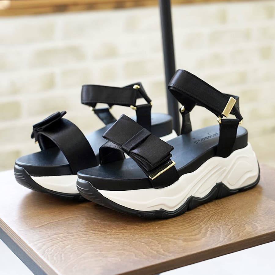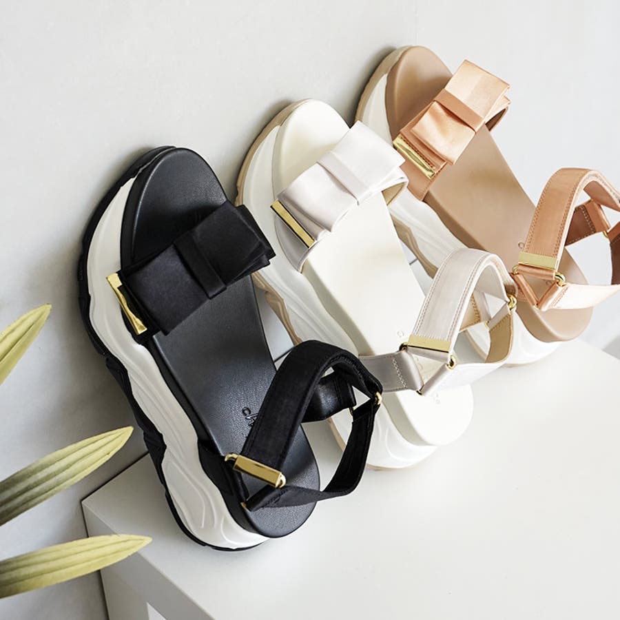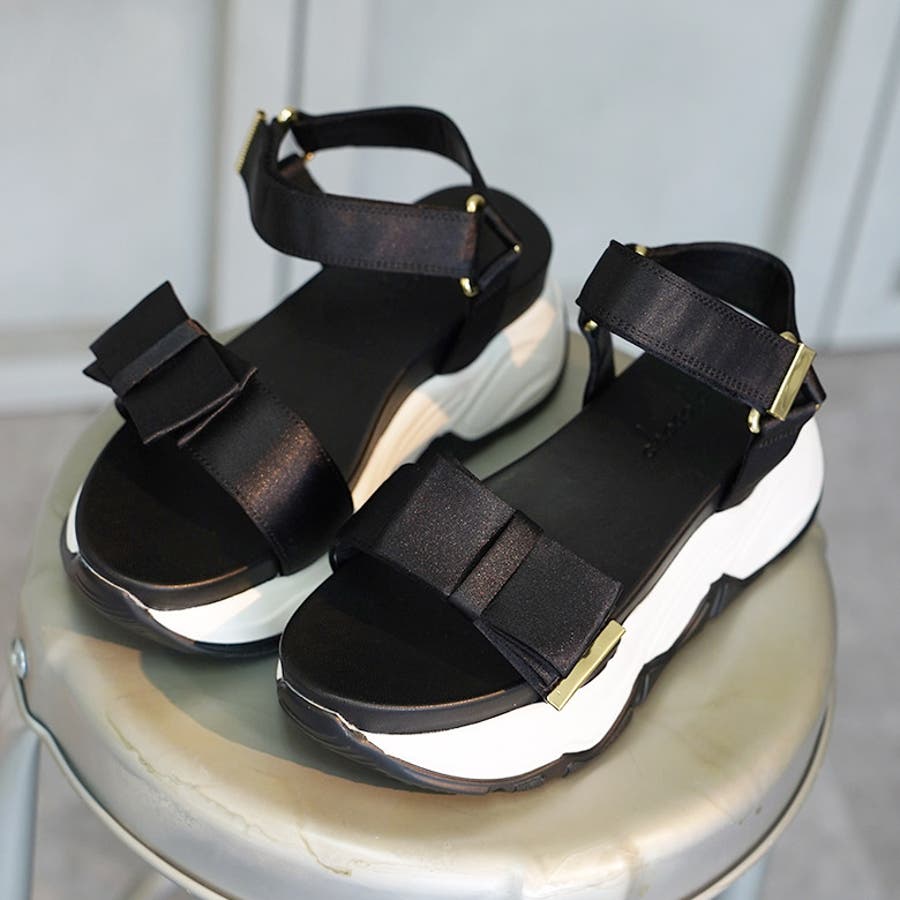 サテンリボン スポーツサンダル スポサン 厚底
