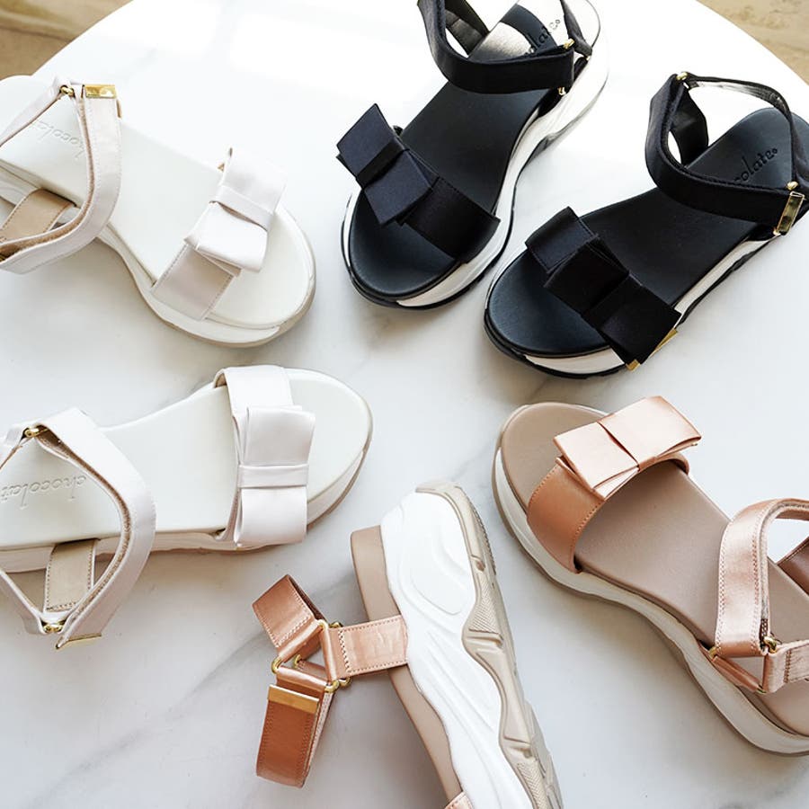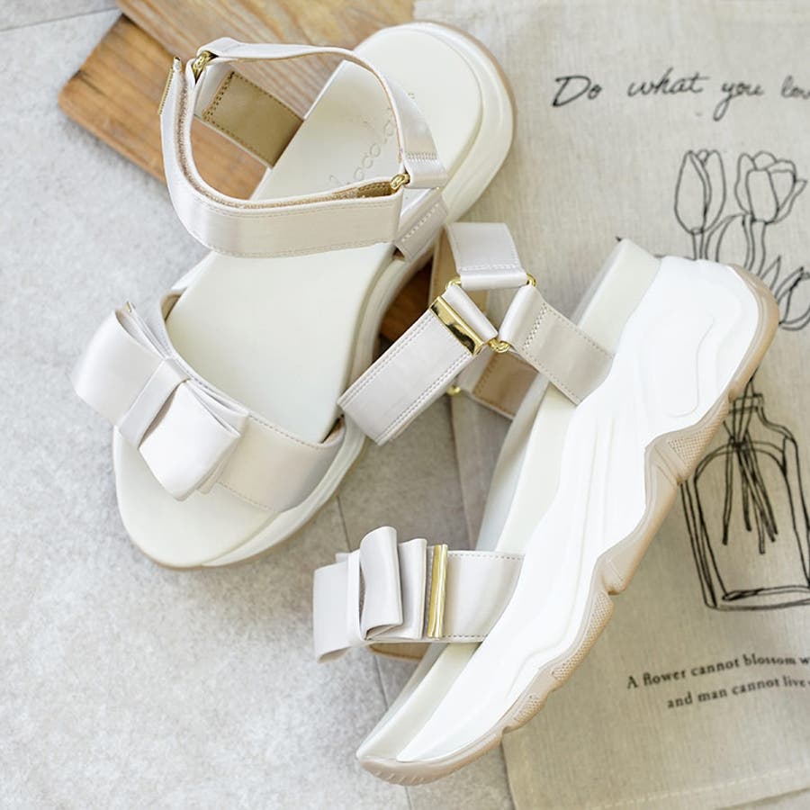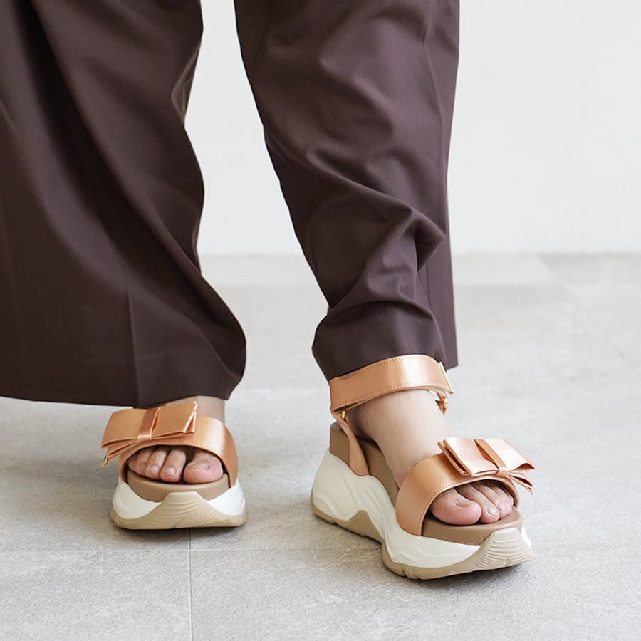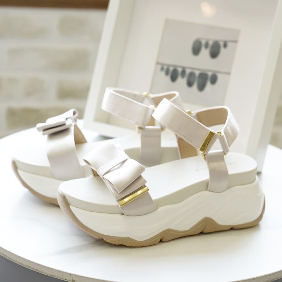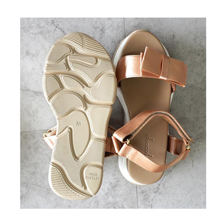 サテンリボン スポーツサンダル スポサン 厚底