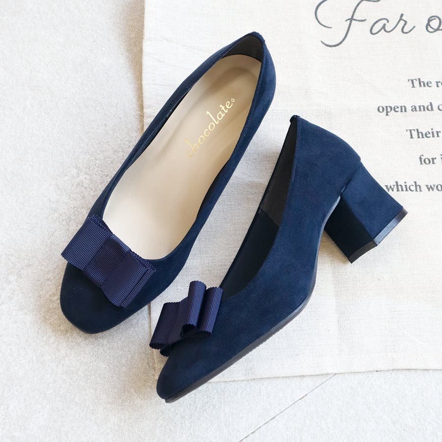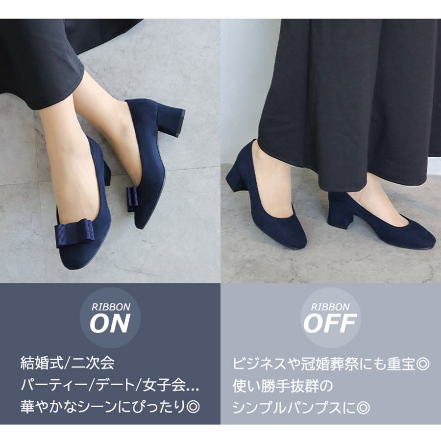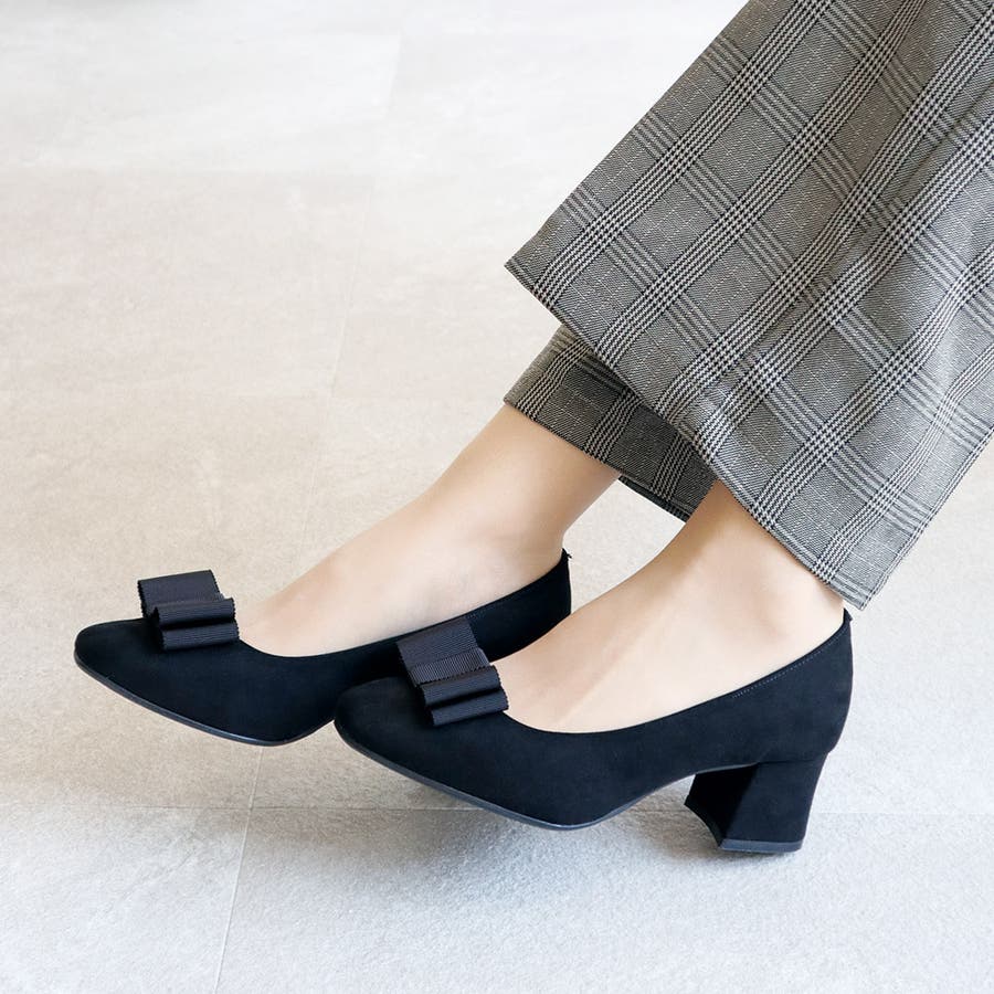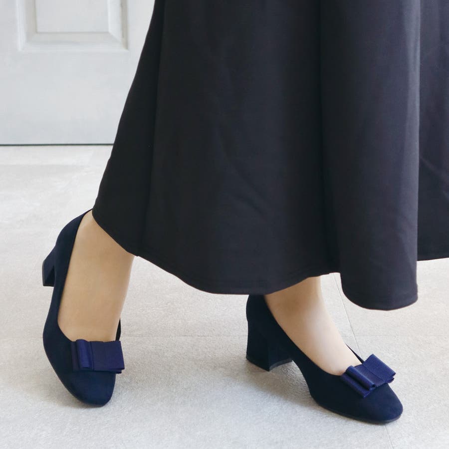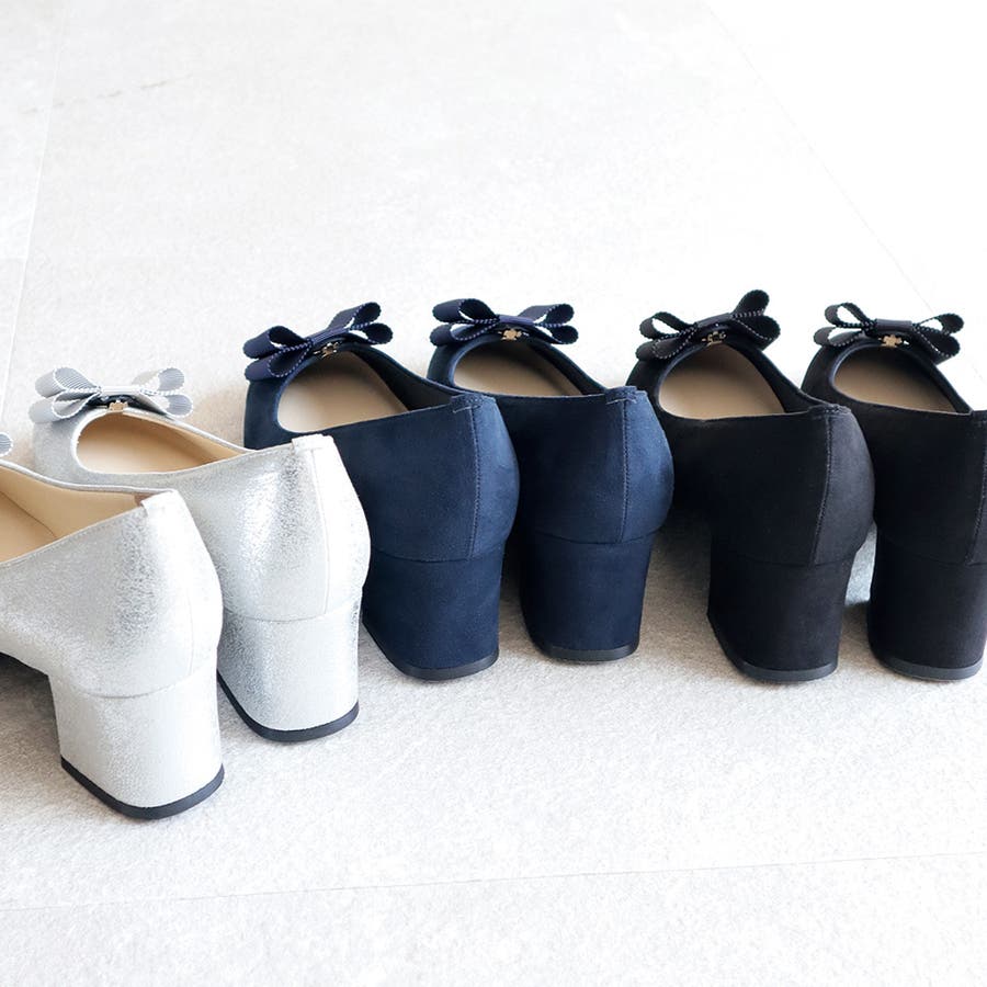 日本製のシンプルなリボン付きパンプスです。