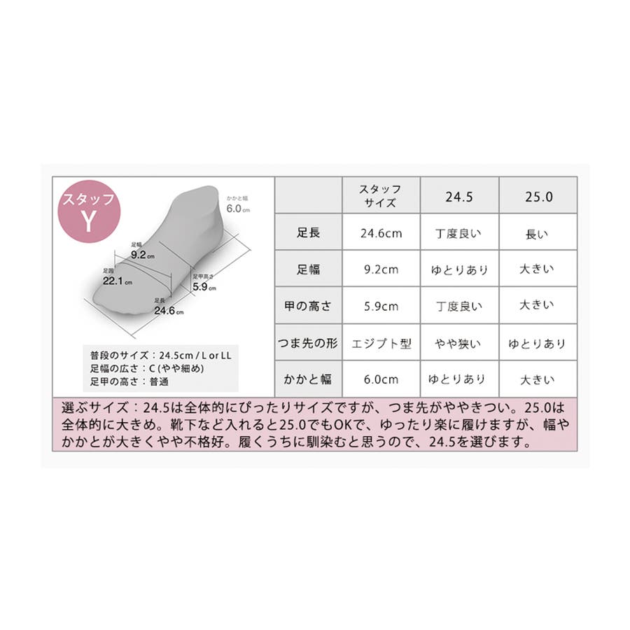 普段24.5cmのスタッフが履いたところ、24.5cmでぴったりでした。