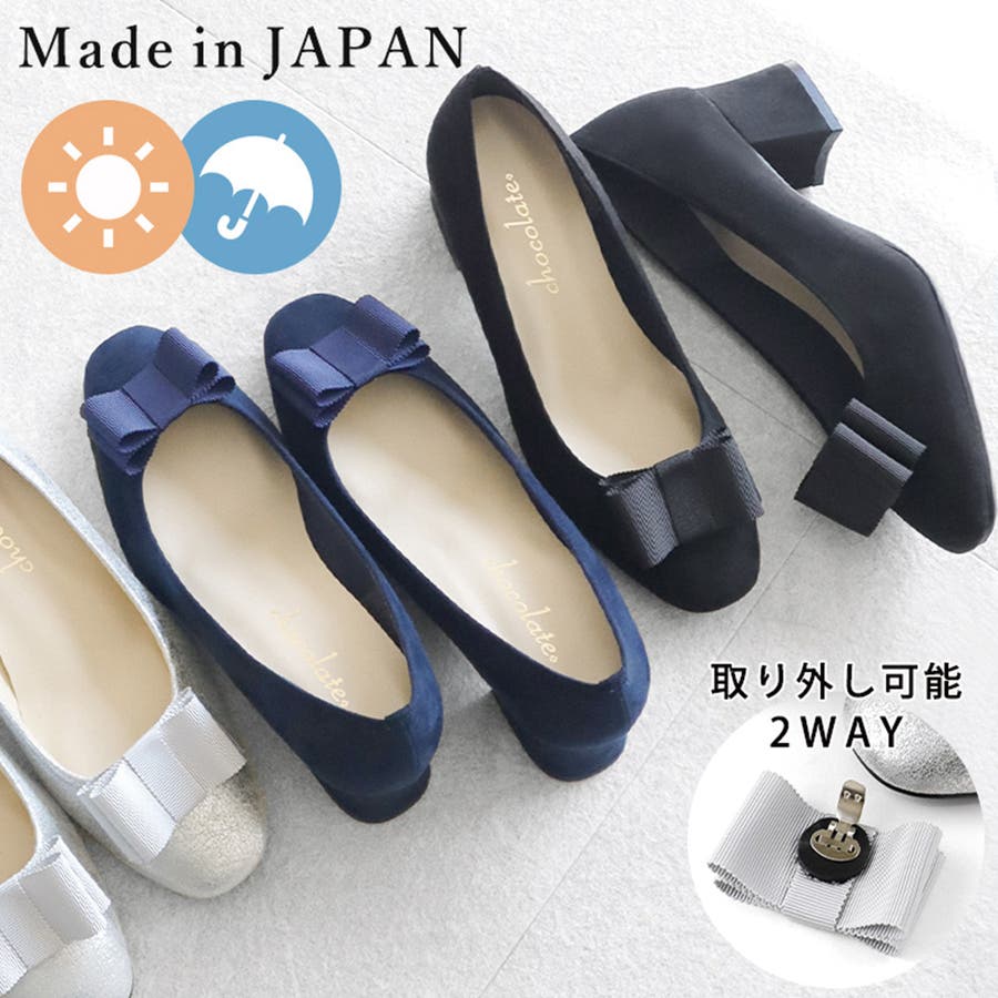 日本製 2way グログランリボン パンプス 晴雨兼用 レイン