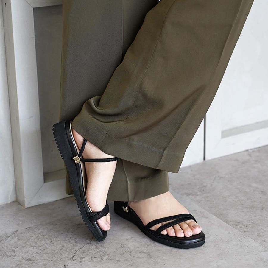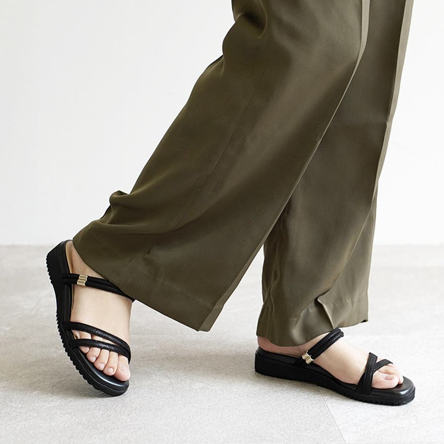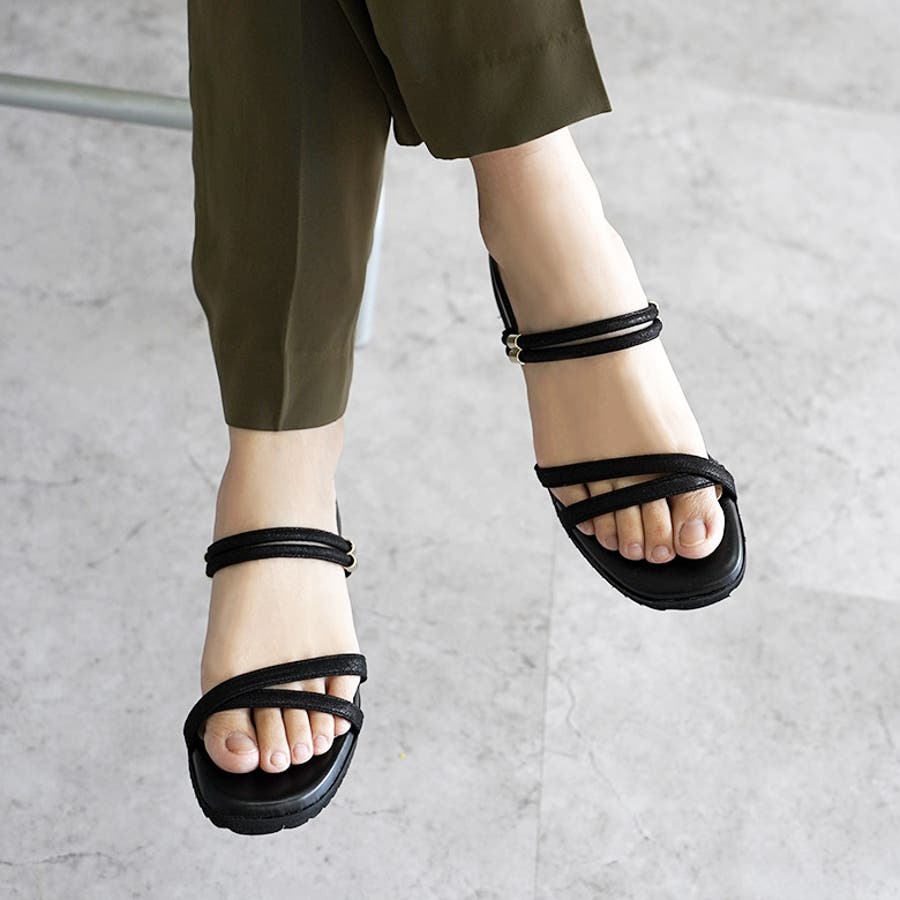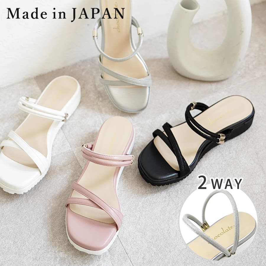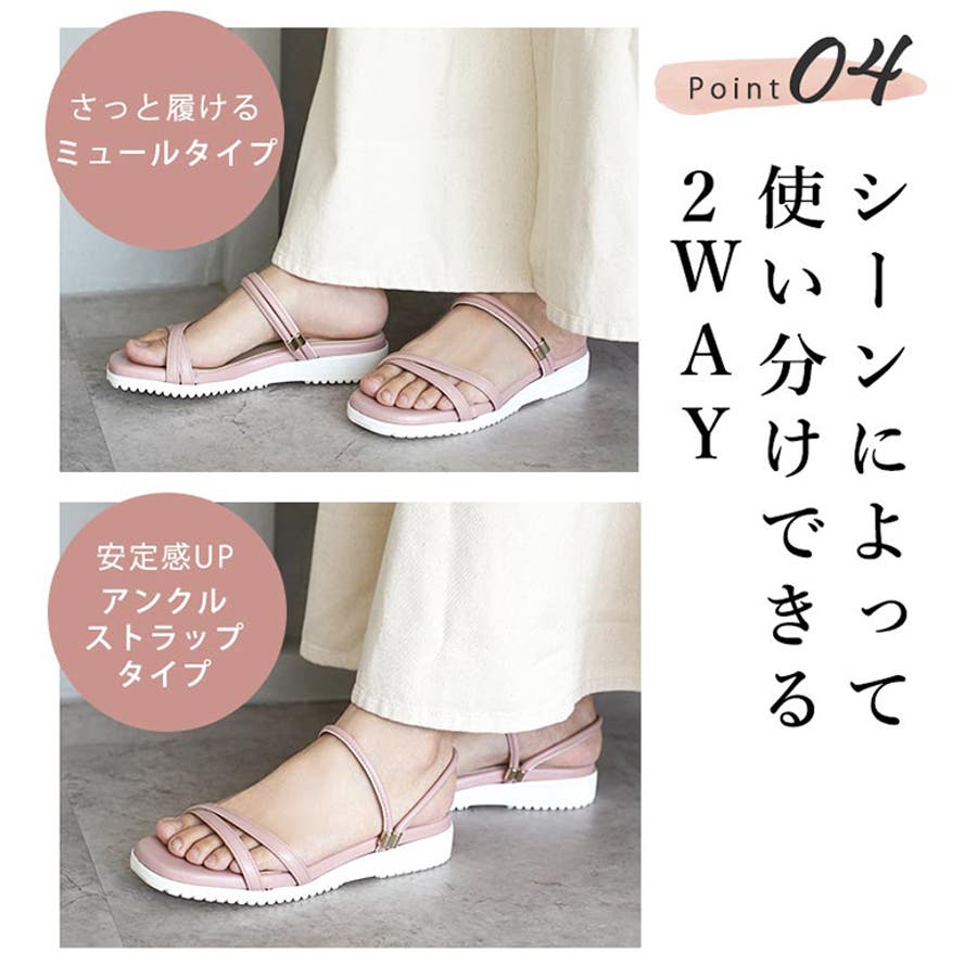 日本製 カジュアル 2way ベルト サンダル ローヒール ぺたんこ