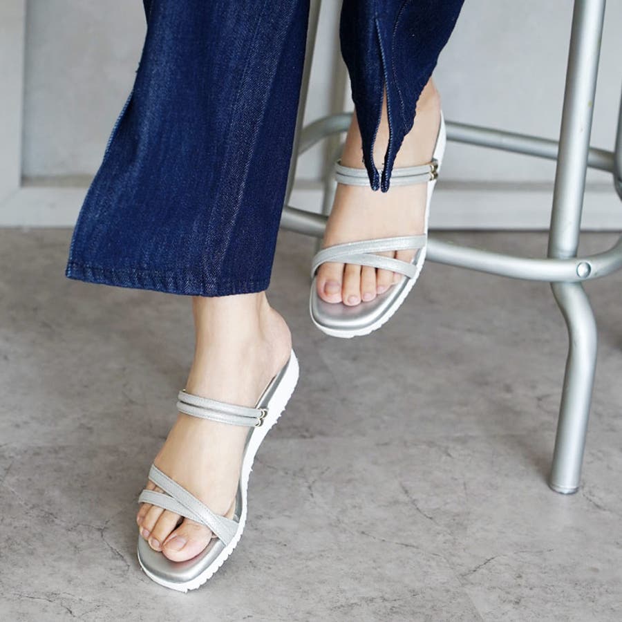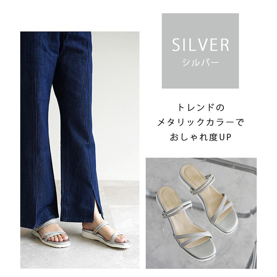 細い華奢なベルトが魅力のシンプルなミュールです。