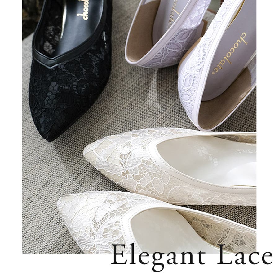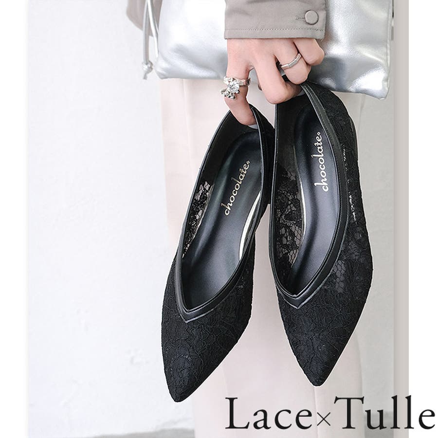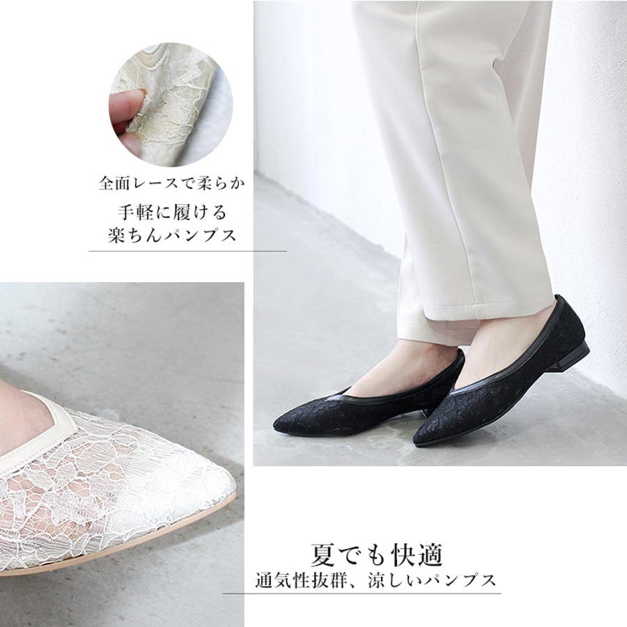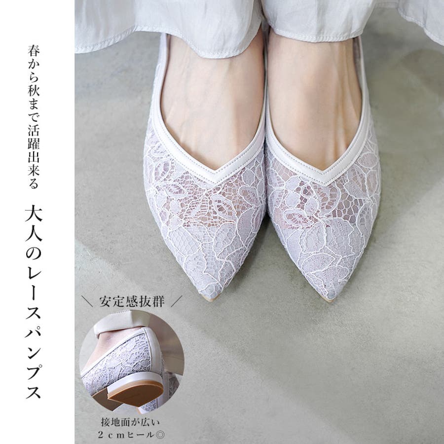 レースとチュールを貼り合わせた通気性が抜群の快適なパンプスです。