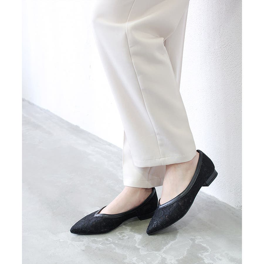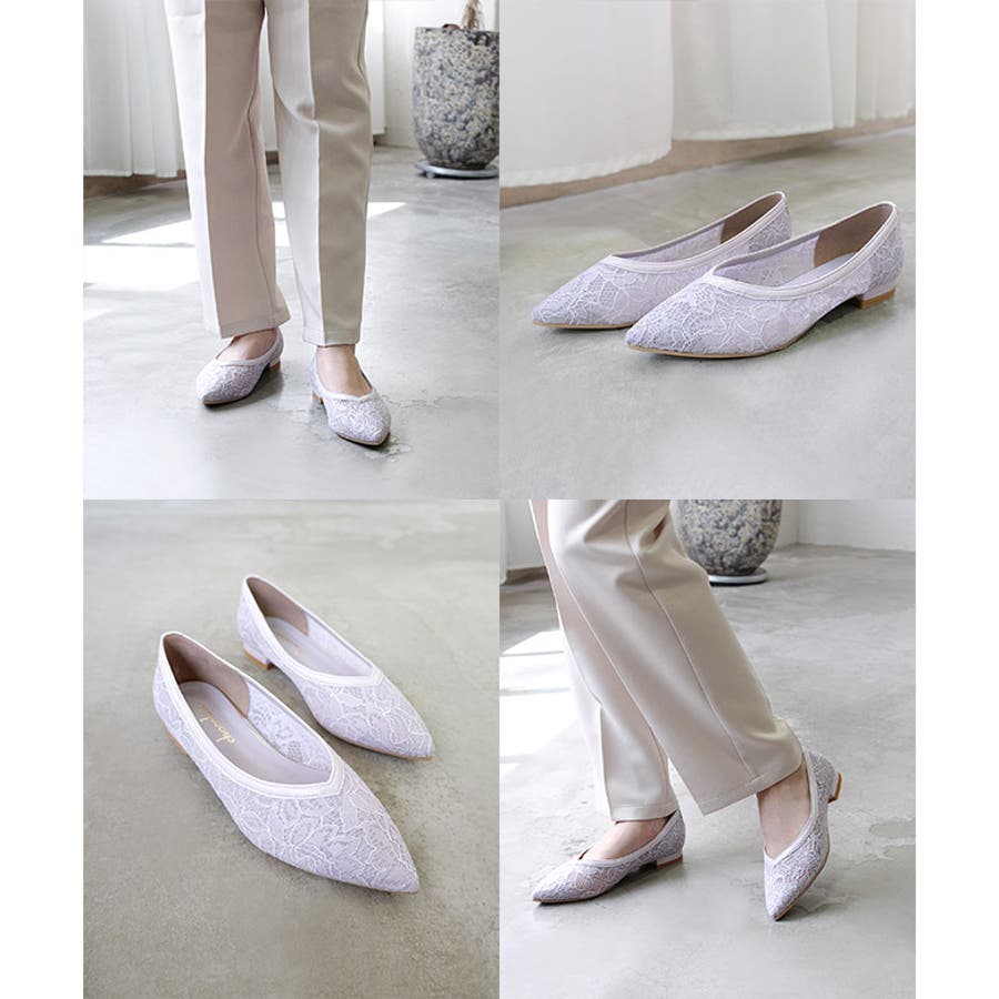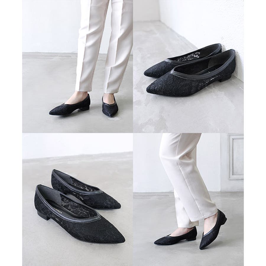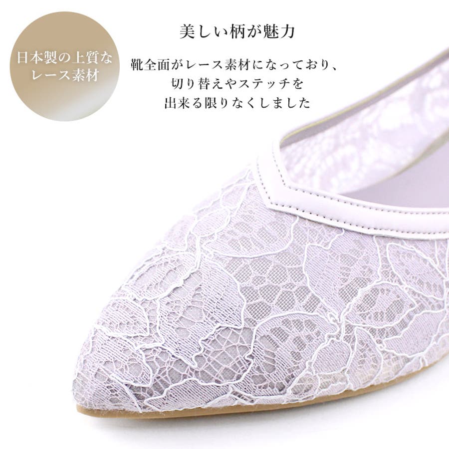レースとチュールを貼り合わせた通気性が抜群の快適なパンプスです。