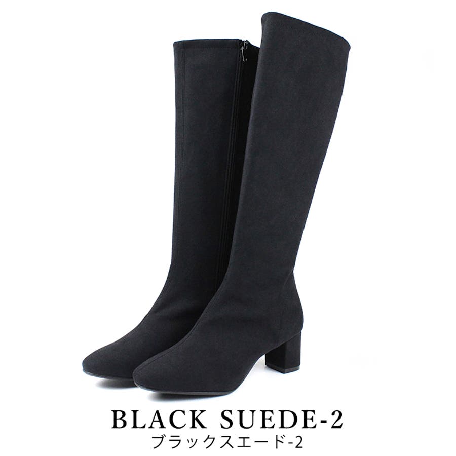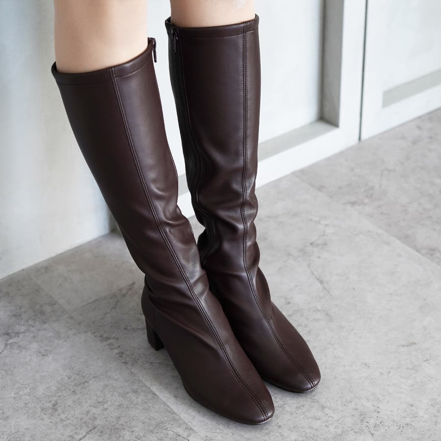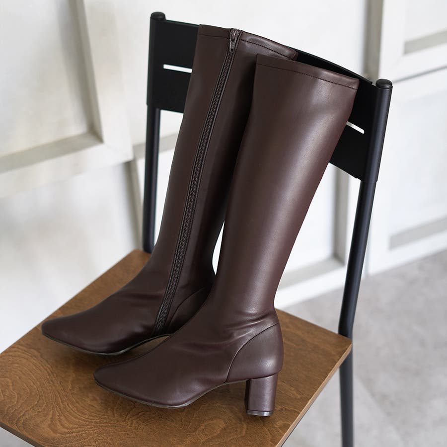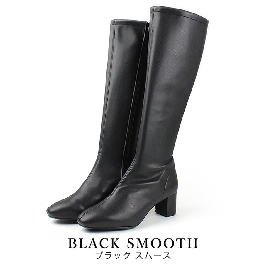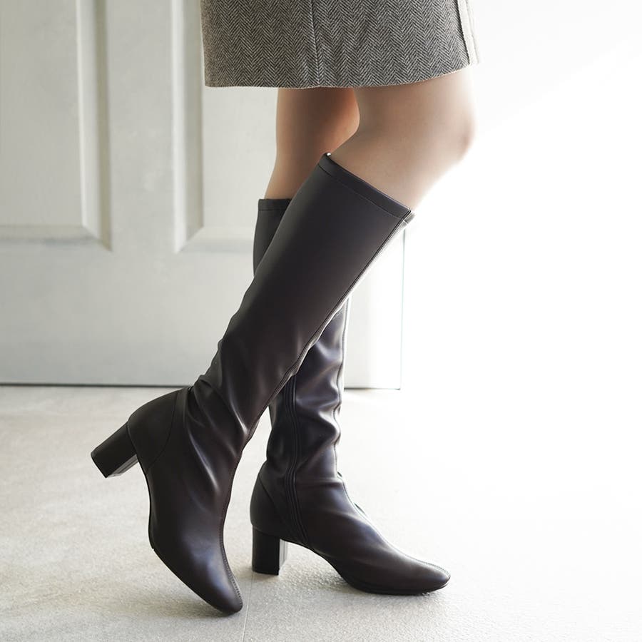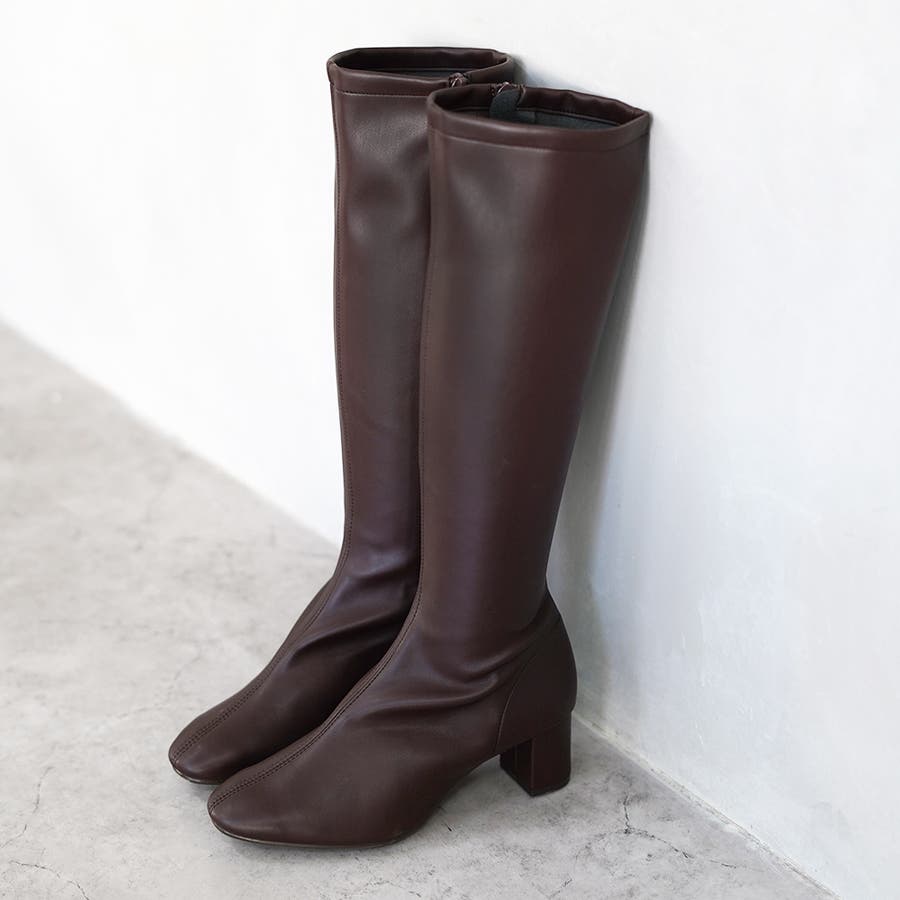 今年大人気のスクエアトゥのストレッチロングブーツです。