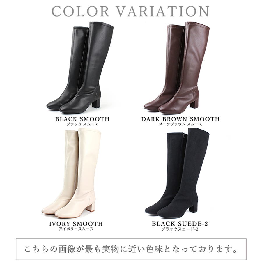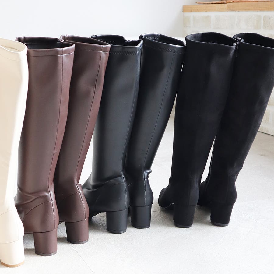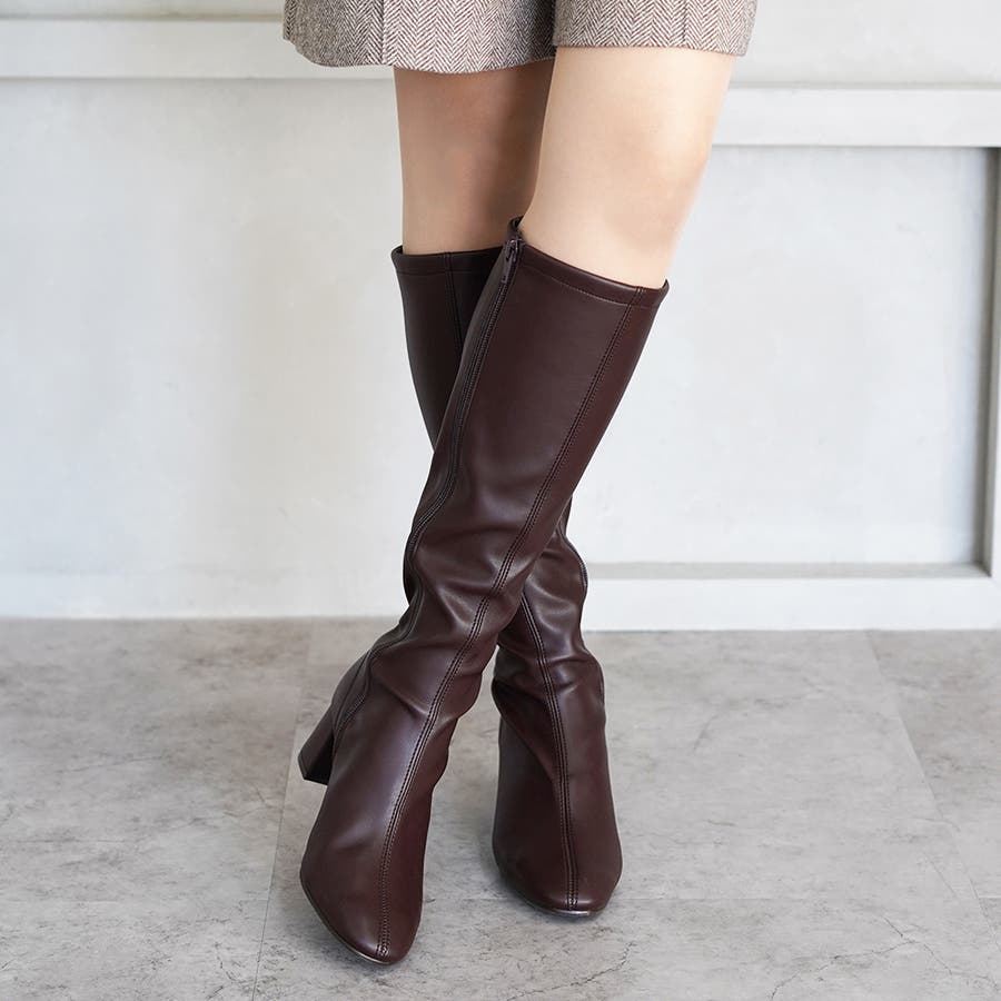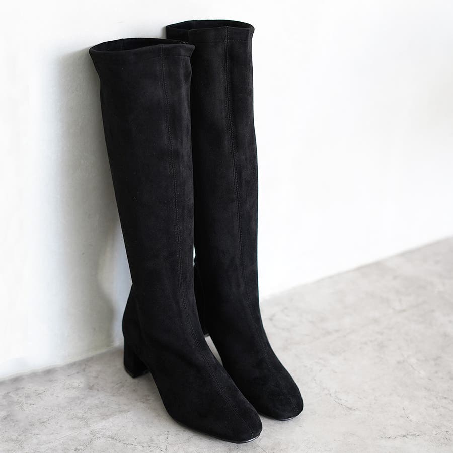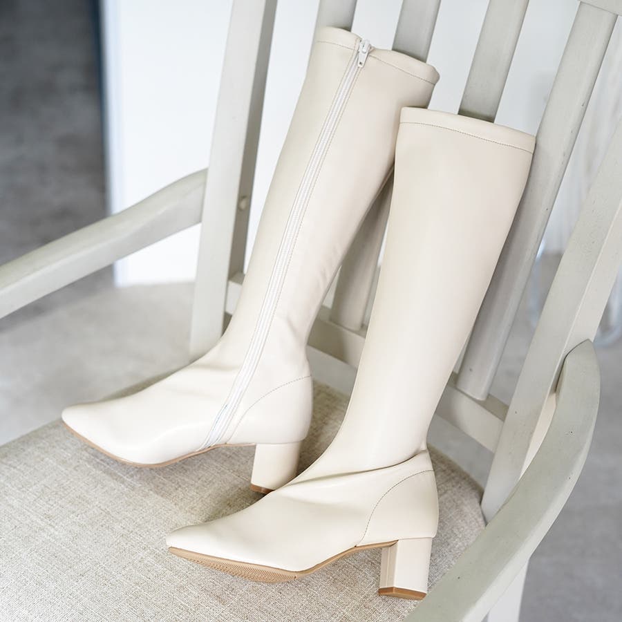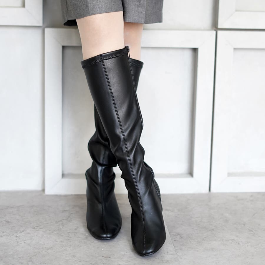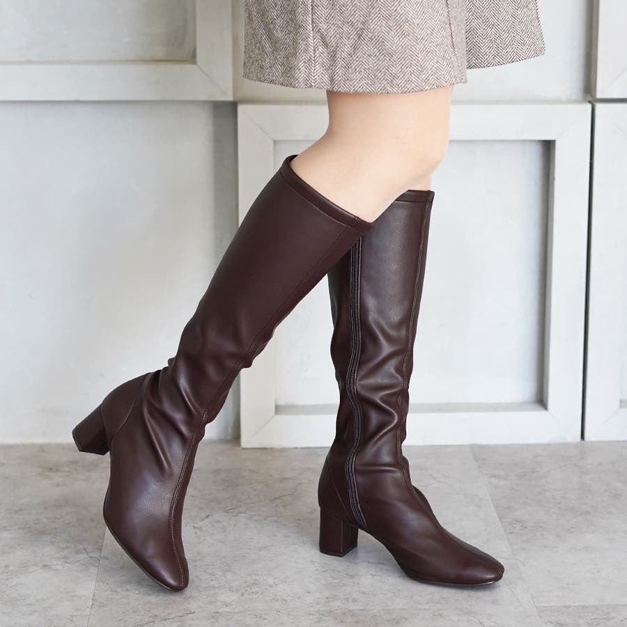 今年大人気のスクエアトゥのストレッチロングブーツです。