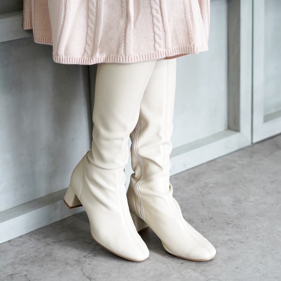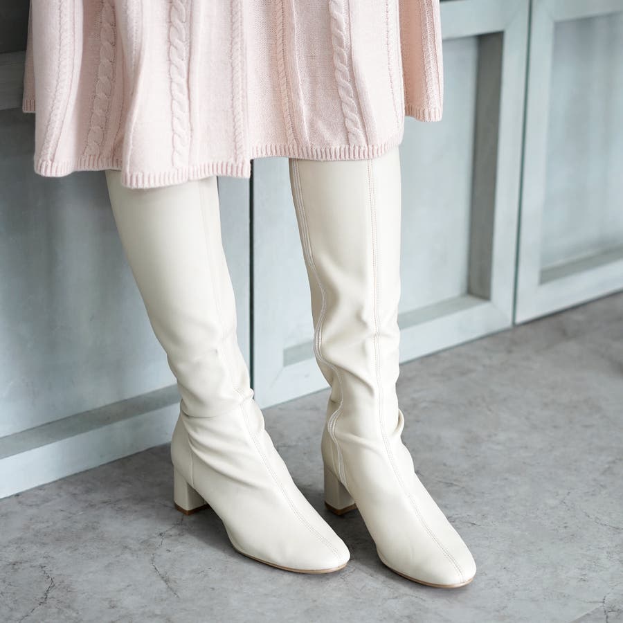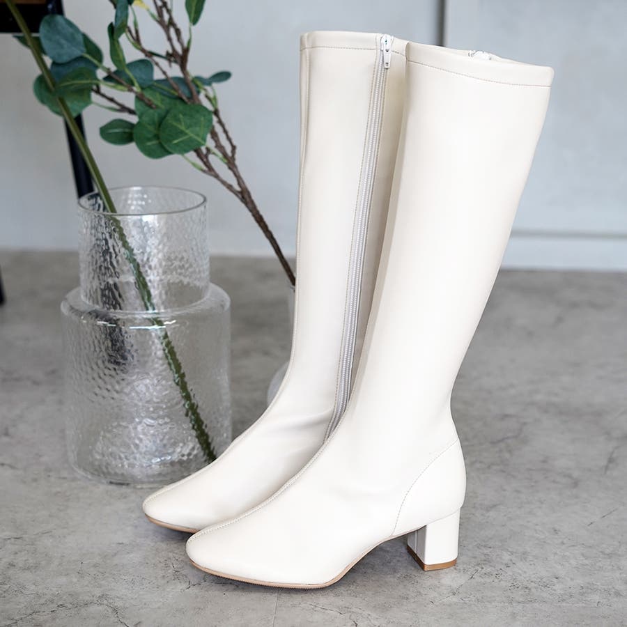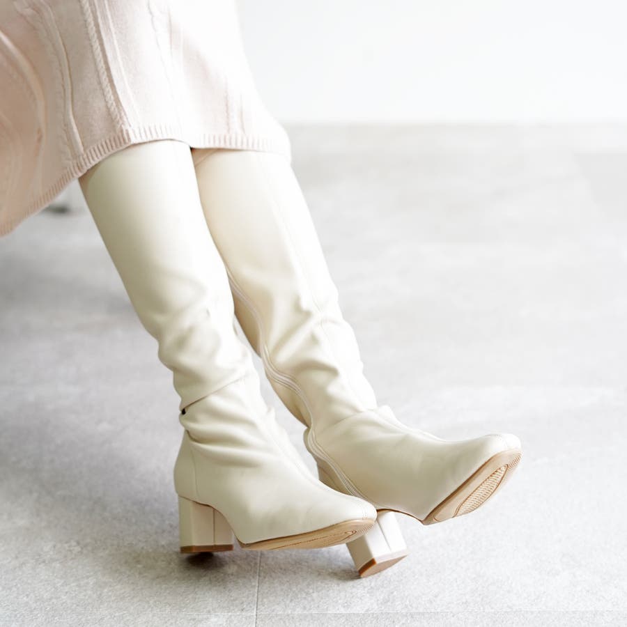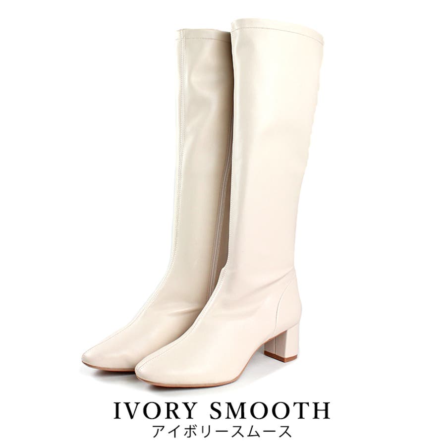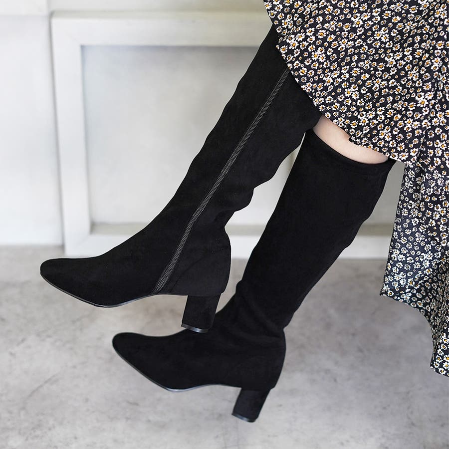 今年大人気のスクエアトゥのストレッチロングブーツです。