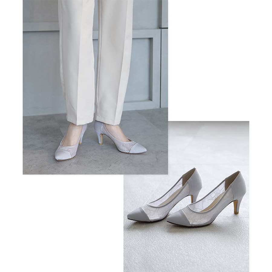 | 商品説明 | 日本製のチュールレースパンプスです。レースとチュールを貼り合わせた価値あるパンプスです。レースの柄もポイントですが、甲のゴールドやシルバーのラインもポイントです。ヒールを巻いている素材はグリッターなども採用しており、ヒールの素材と形状が魅力です。通気性が抜群なので、暑い夏でも蒸れる事はありません。春から夏、そして秋まで活躍出来ます。中敷きは制菌機能を備えた特殊な素材を採用しております。中敷きの素材はもっちりしており、肌さわりは最高です。底は屈曲性とグリップ性に優れた底を採用しています。木型は幅広に設計されているので幅広の方にも対応出来ます。ヒールは存在感のある美しいラインの7cmヒールを採用しました。足長効果も期待出来ます。シンプルなデザインだからどんな服装にも合いますよ。インソール全面に4mmの低反発クッションを敷いているので、本当にふかふかなんです。価値ある機能的な1足です。日本製ならではの幸せな履き心地を是非お試しくださいませ。 |