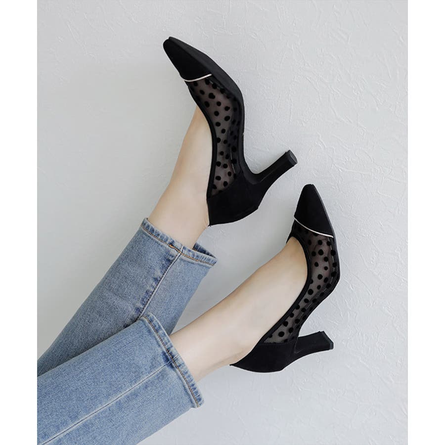 春夏新作 ポインテッドチュールパンプス 7cmヒール