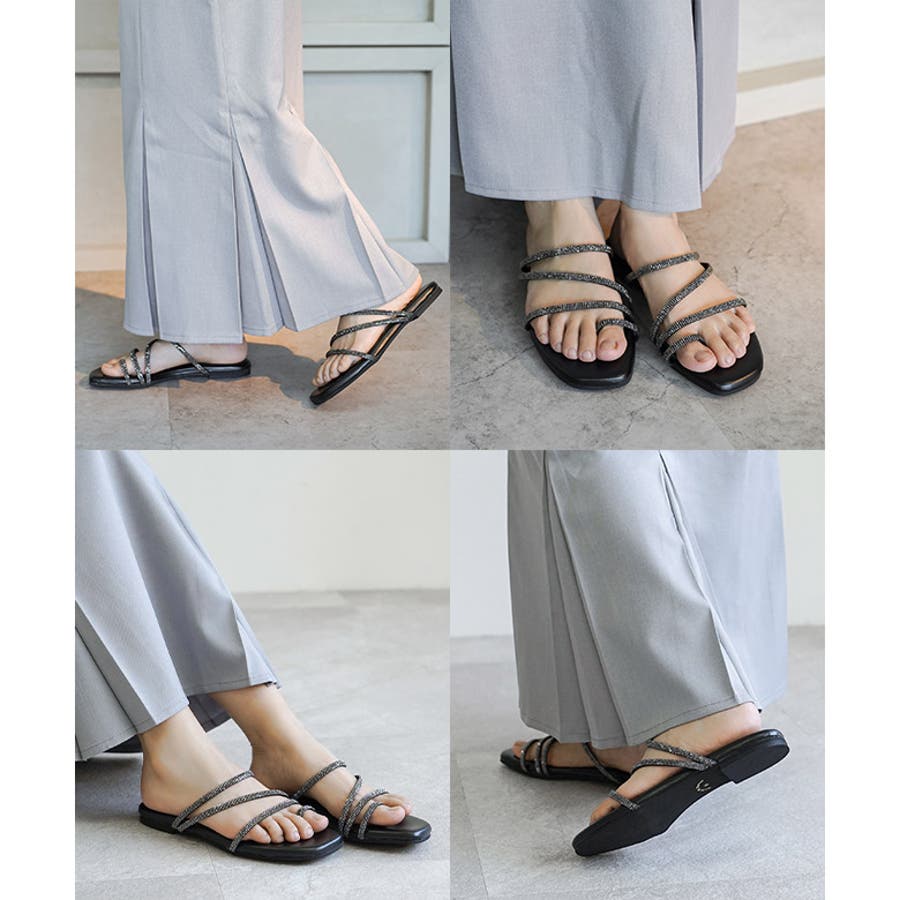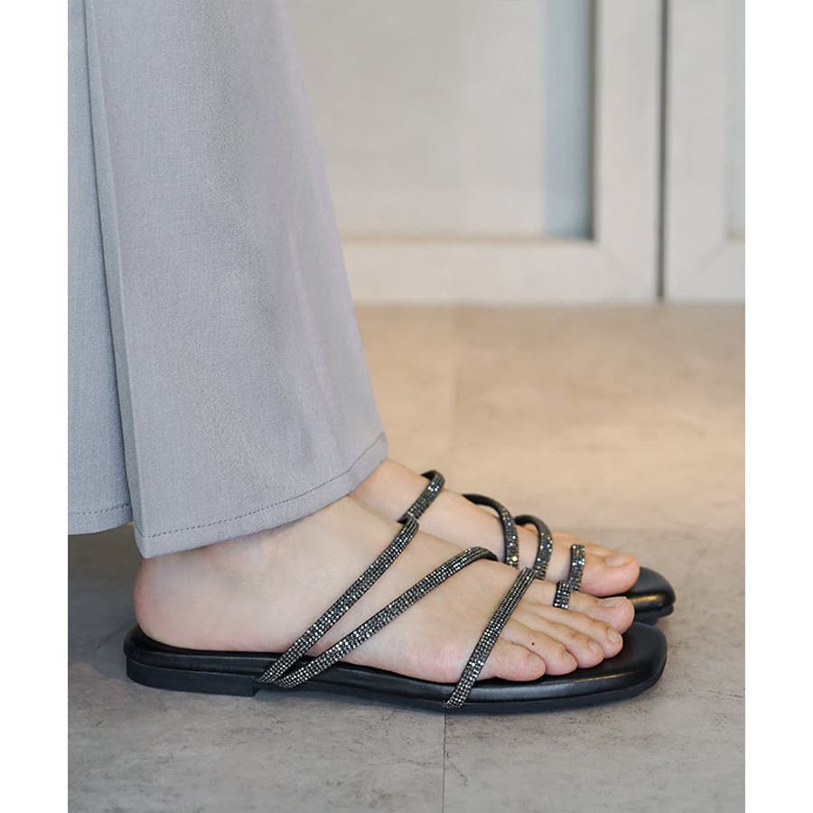 スクエアトゥのシンプルなぺたんこサンダルです。