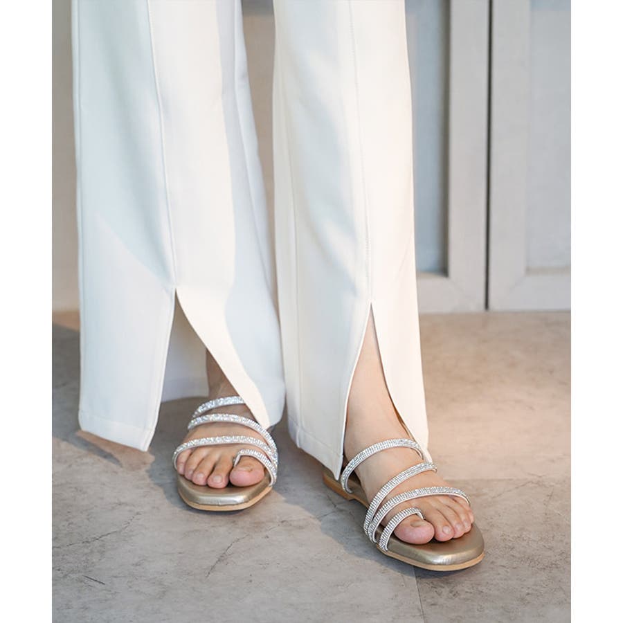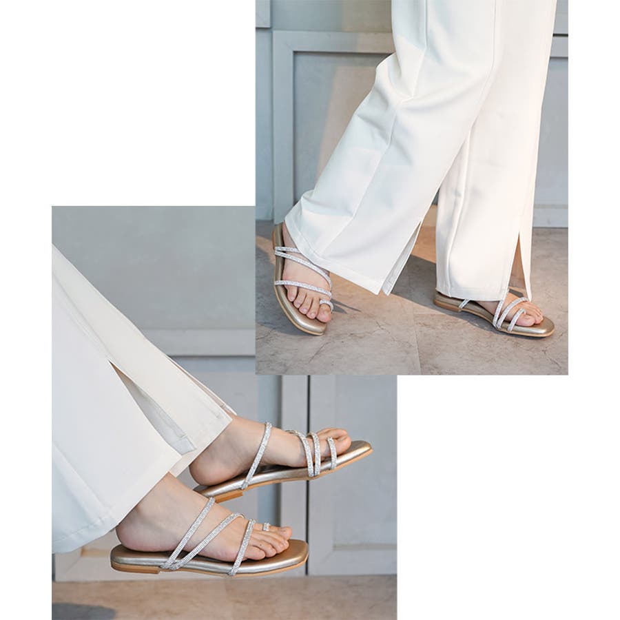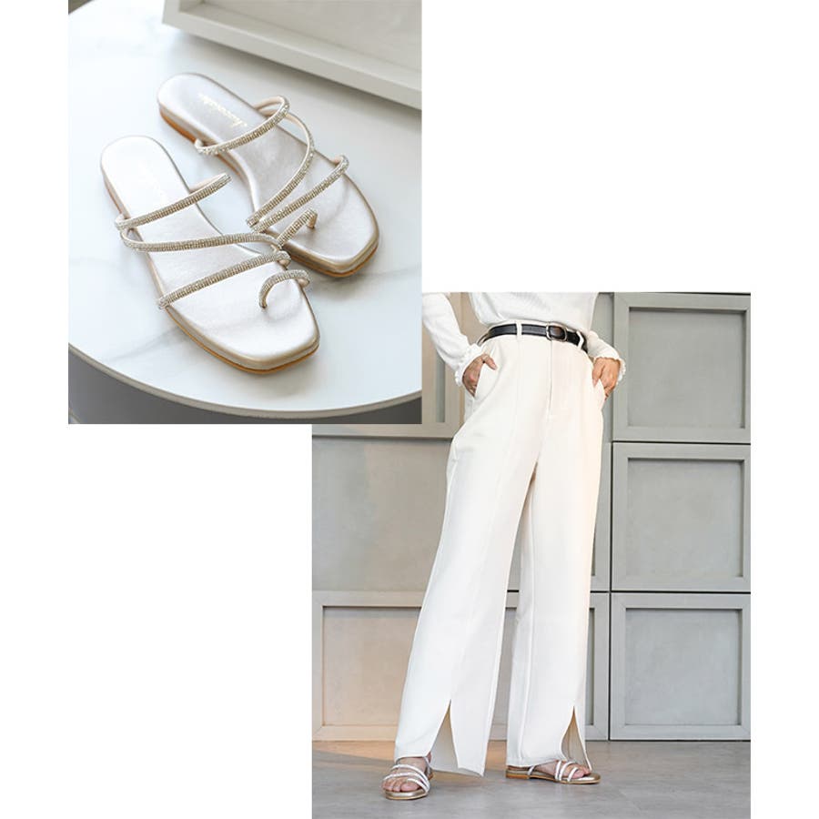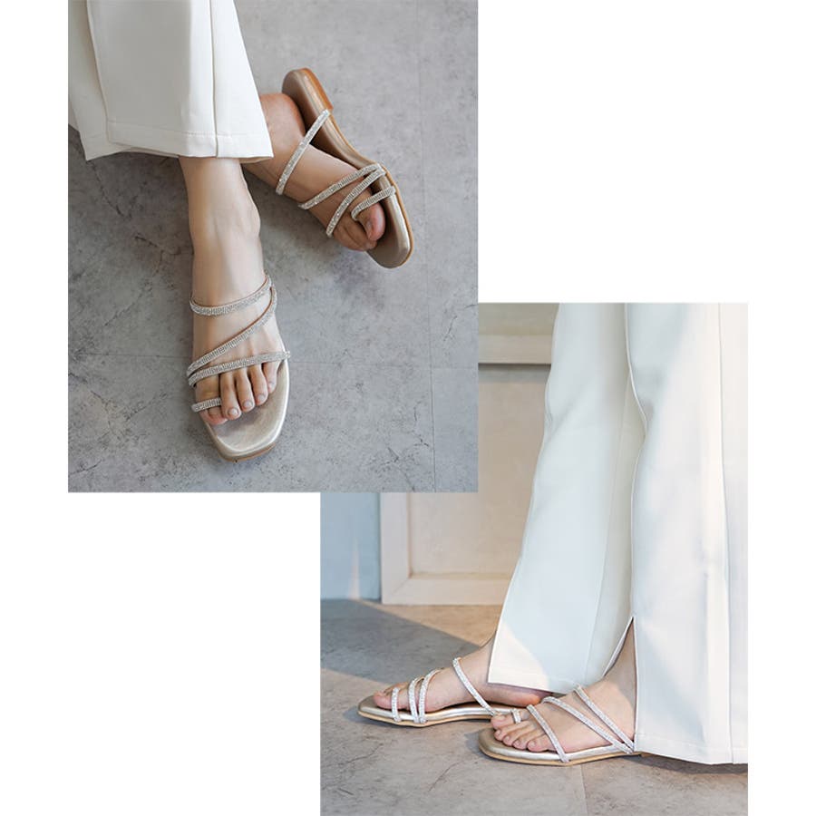 細い華奢なベルトが魅力のシンプルなサンダルです。