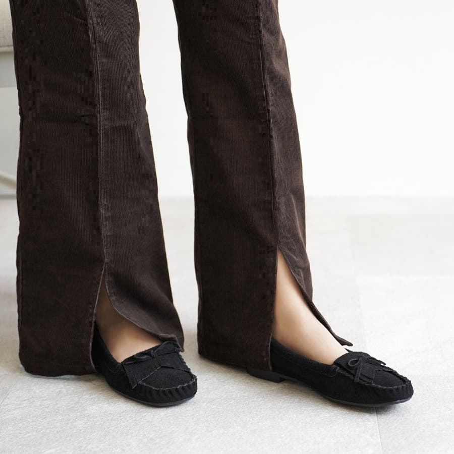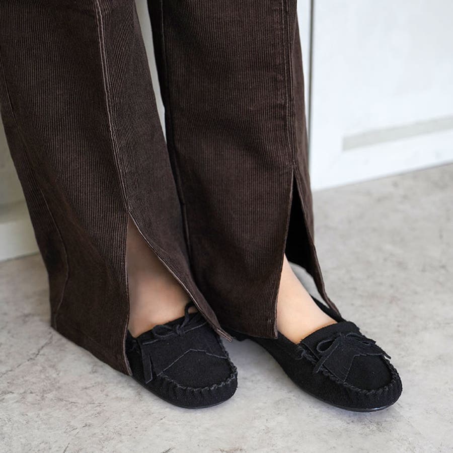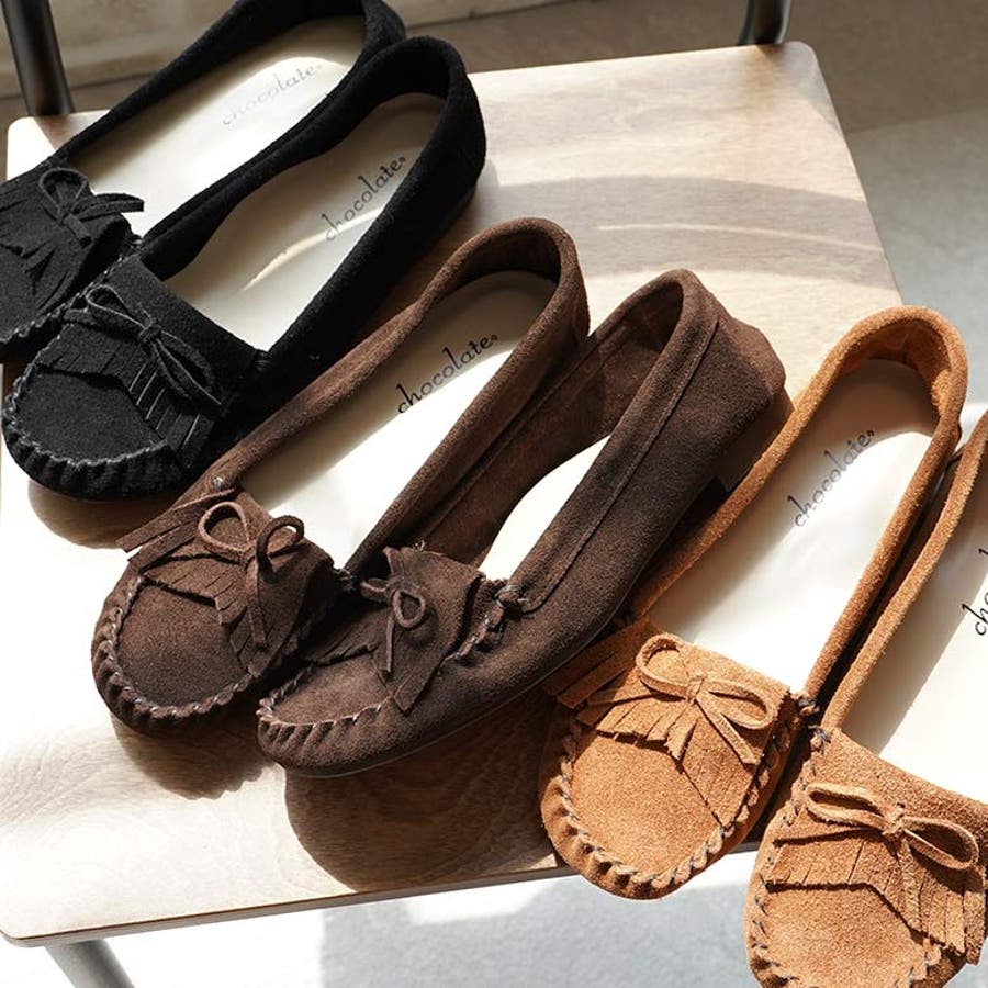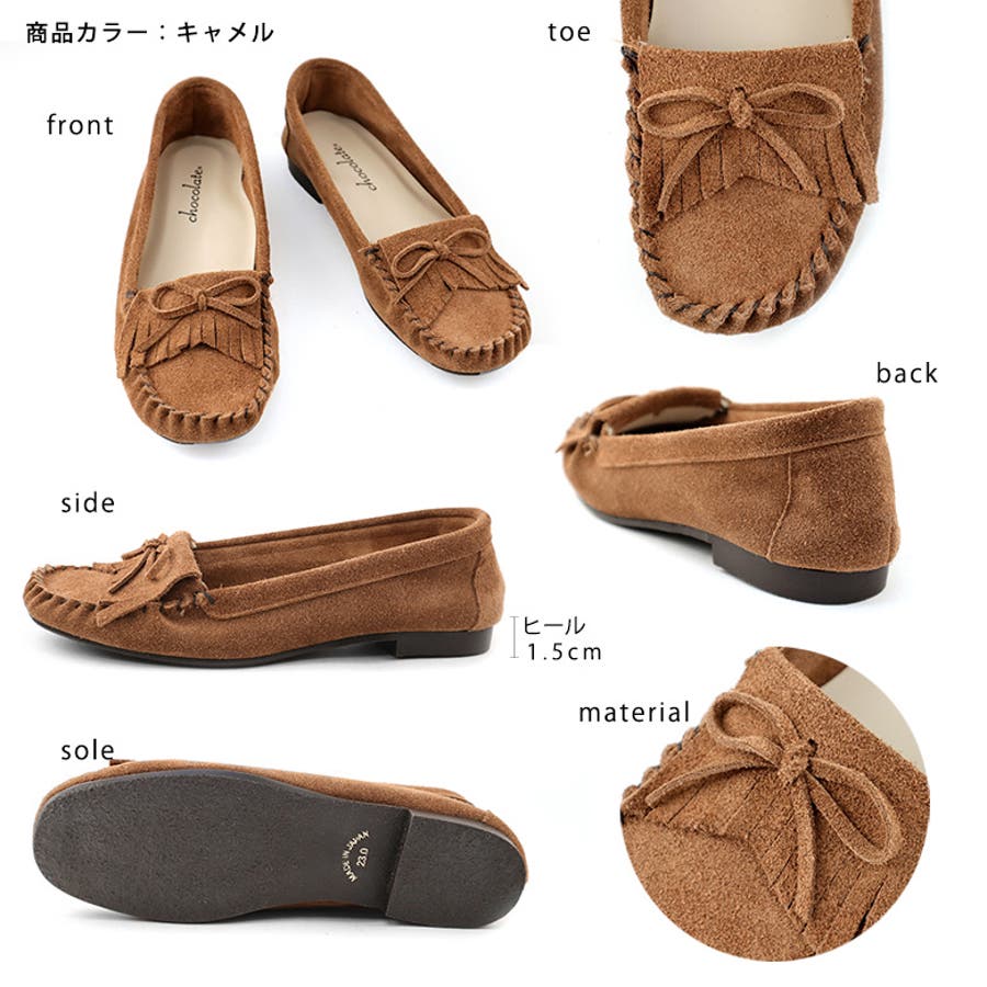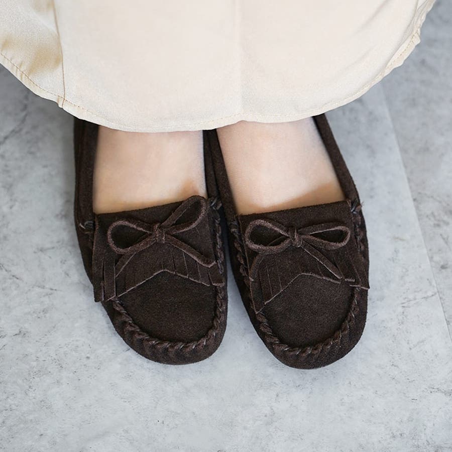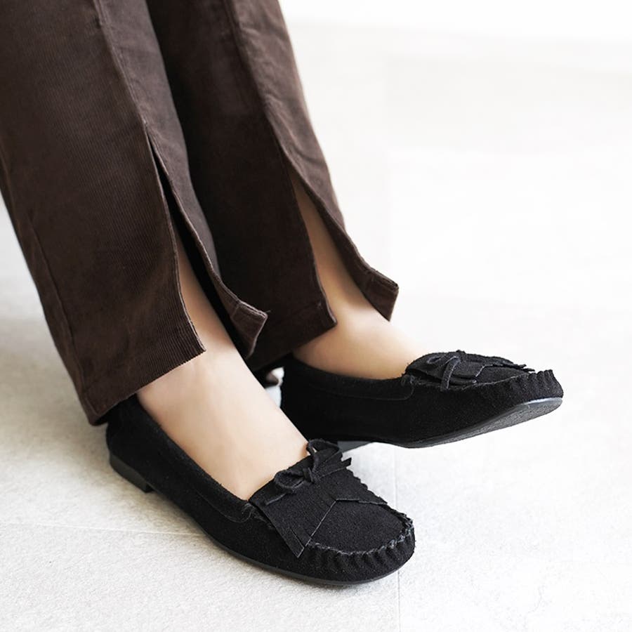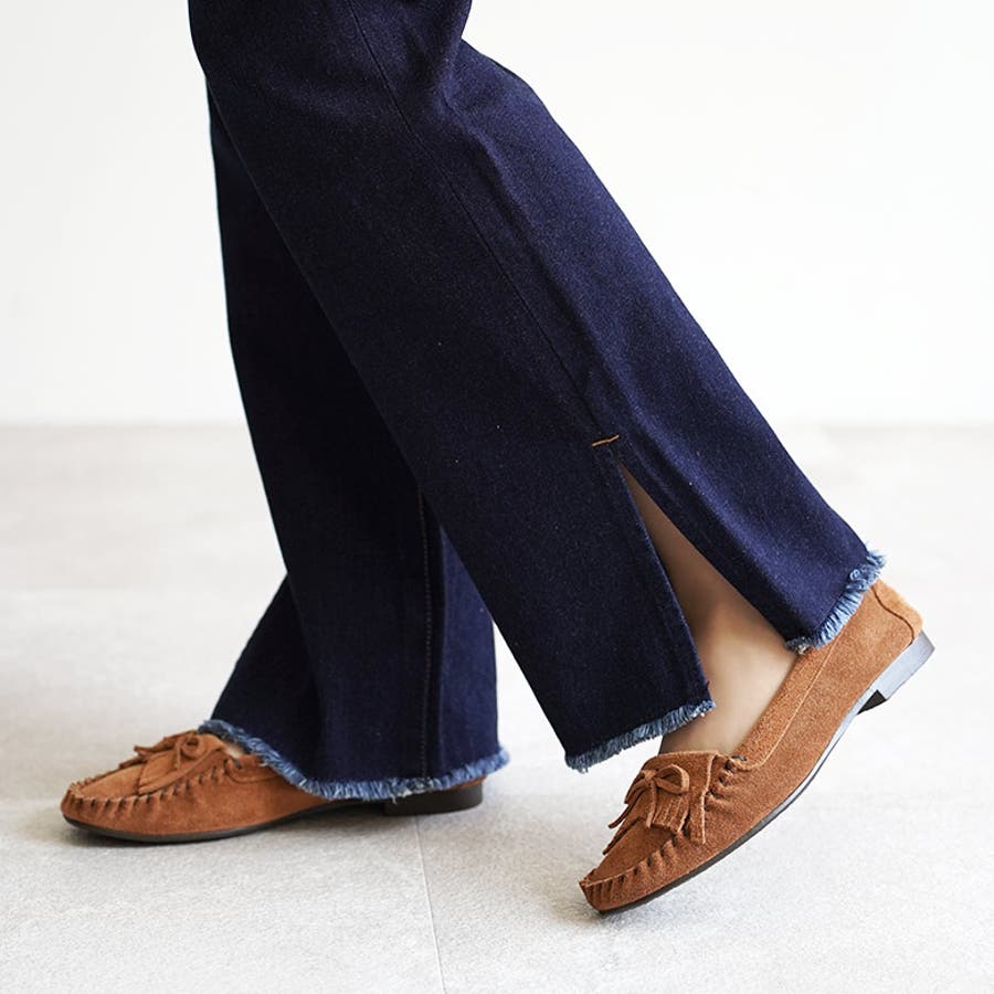 日本製 本革 モカシンシューズ 柔らかい ローヒール ぺたんこ フリンジ