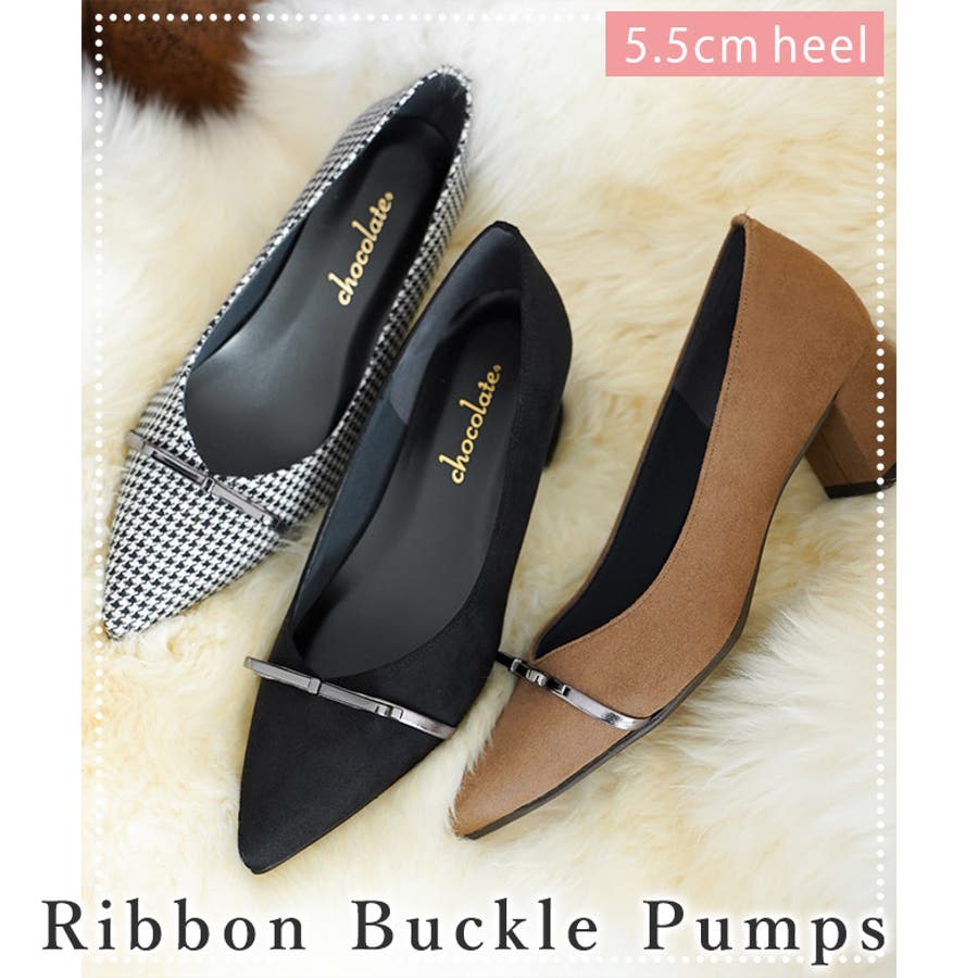 日本製のシンプルなリボンバックル付パンプスです。