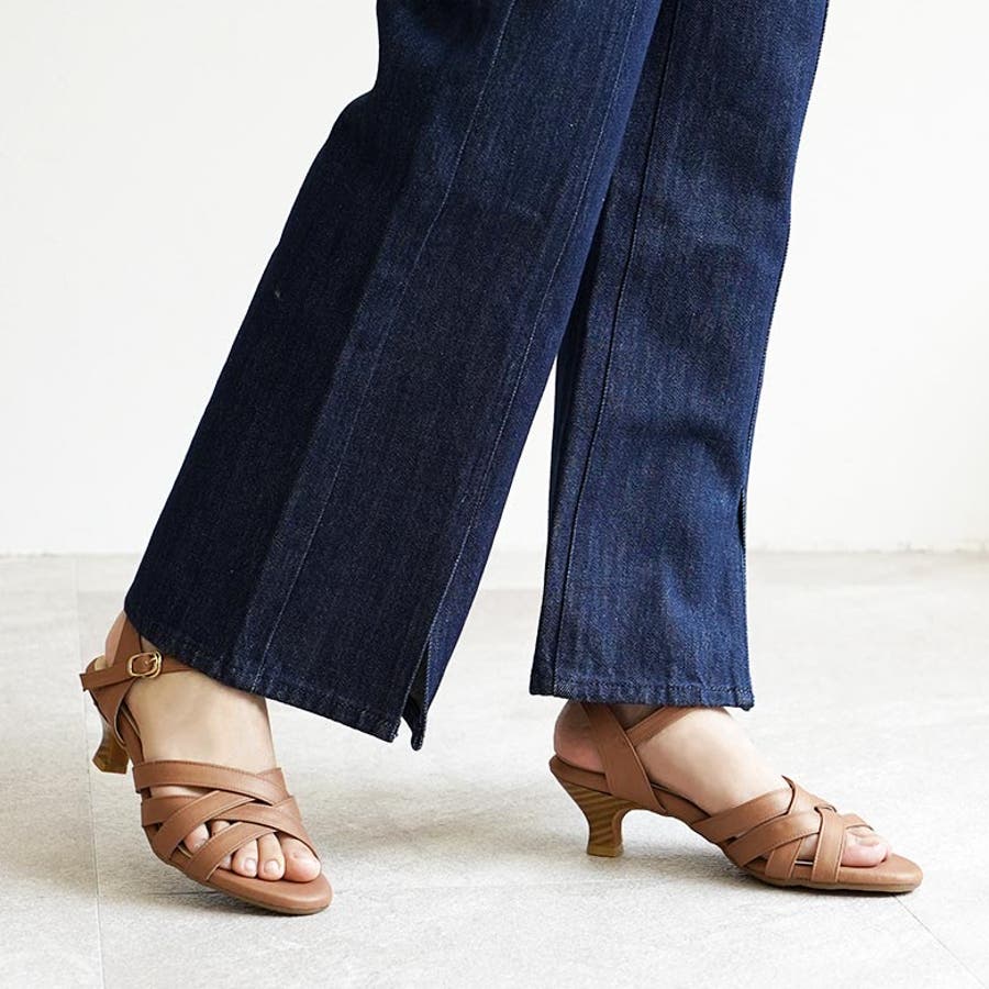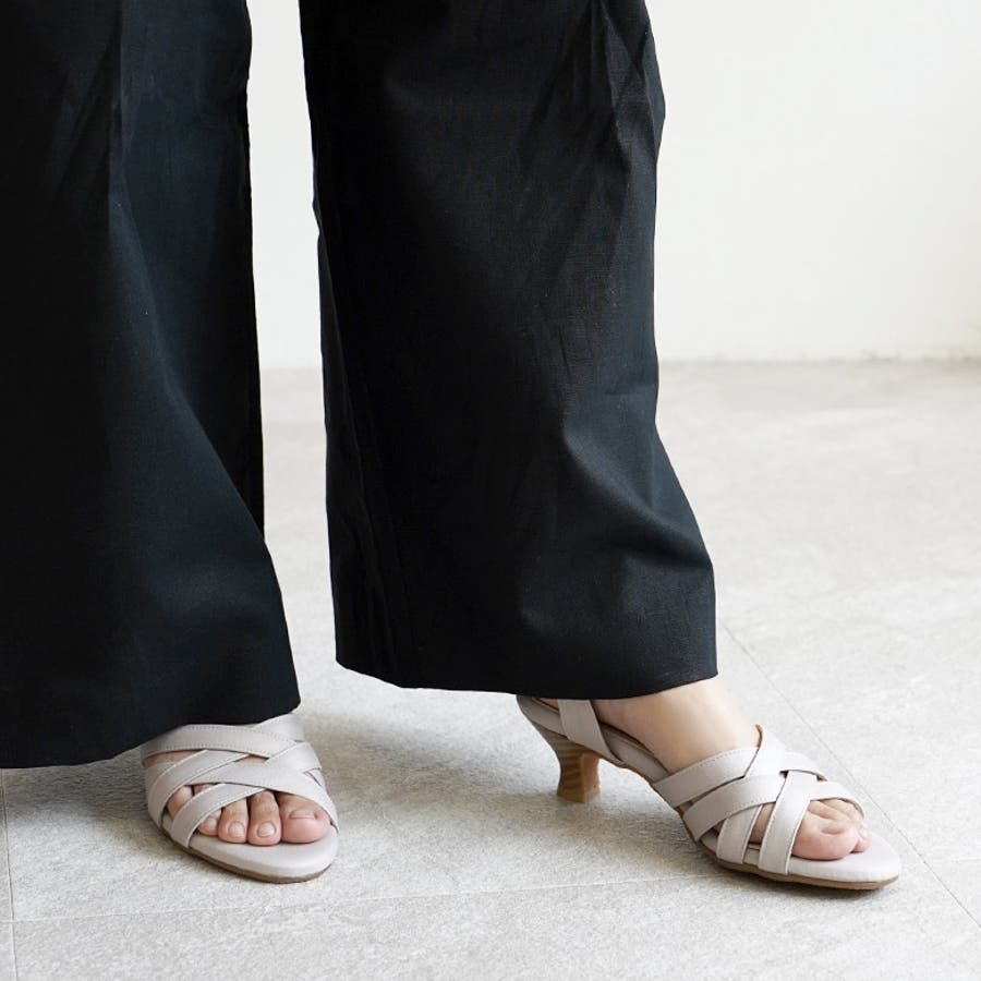 日本製 キャンバス地 クロスベルト ミュールサンダル