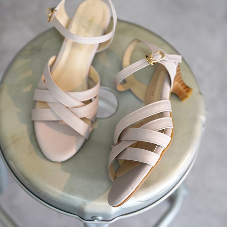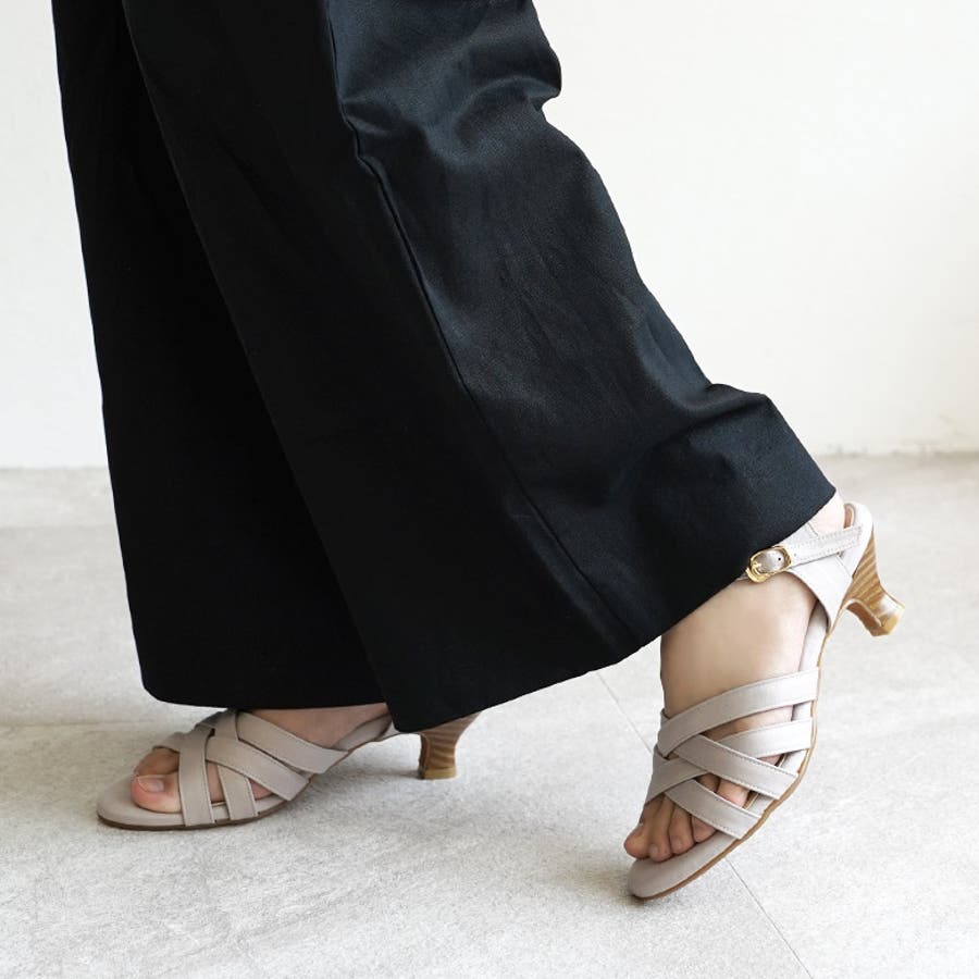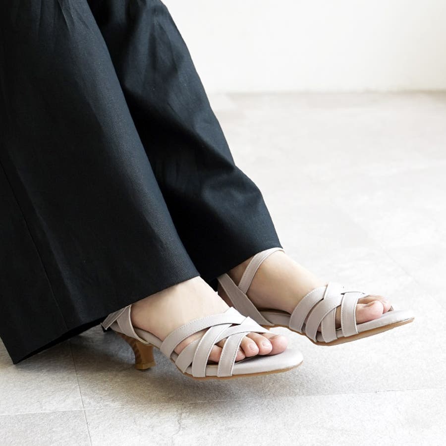 キャンバス素材が夏らしく、甲の4本のベルトが魅力です。