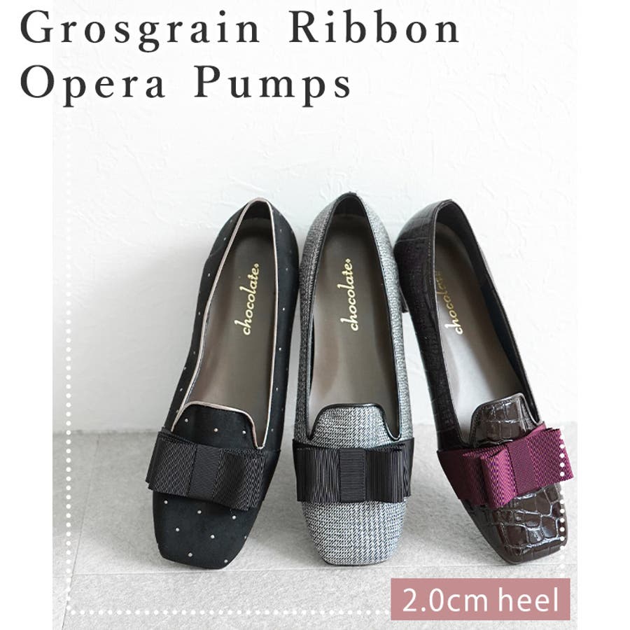 日本製 グログランリボン オペラパンプス 晴雨兼用 レイン
