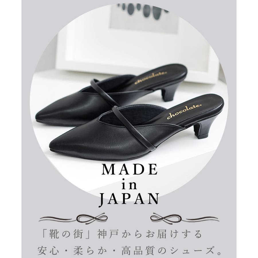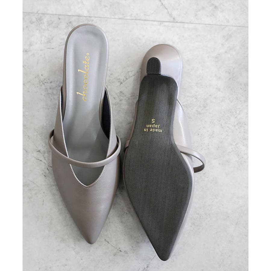 日本製のシンプルなポインテッドトゥのミュール。