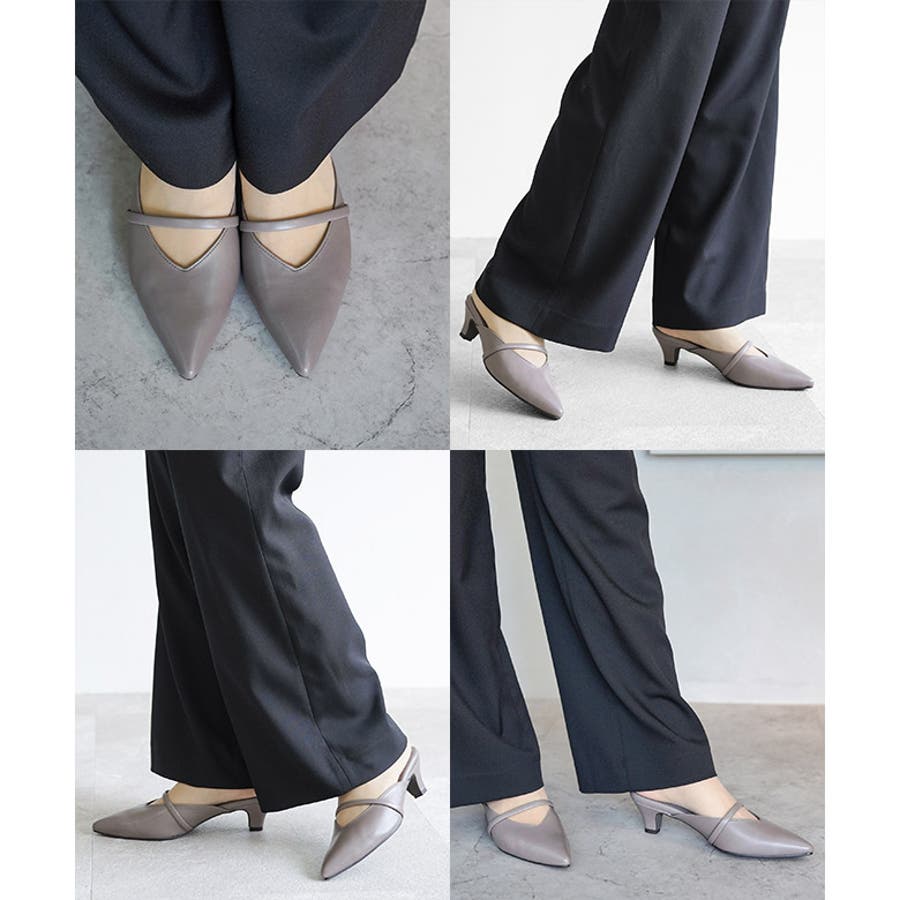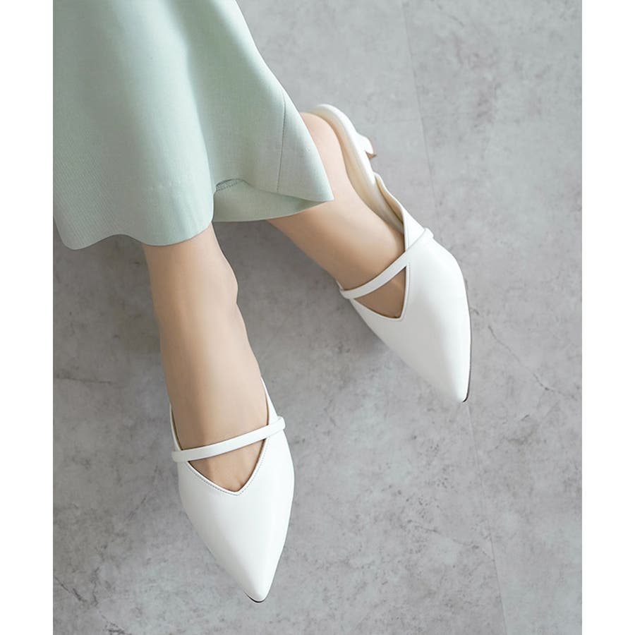 日本製 ポインテッドトゥ バンド ストラップ ミュール パンプス