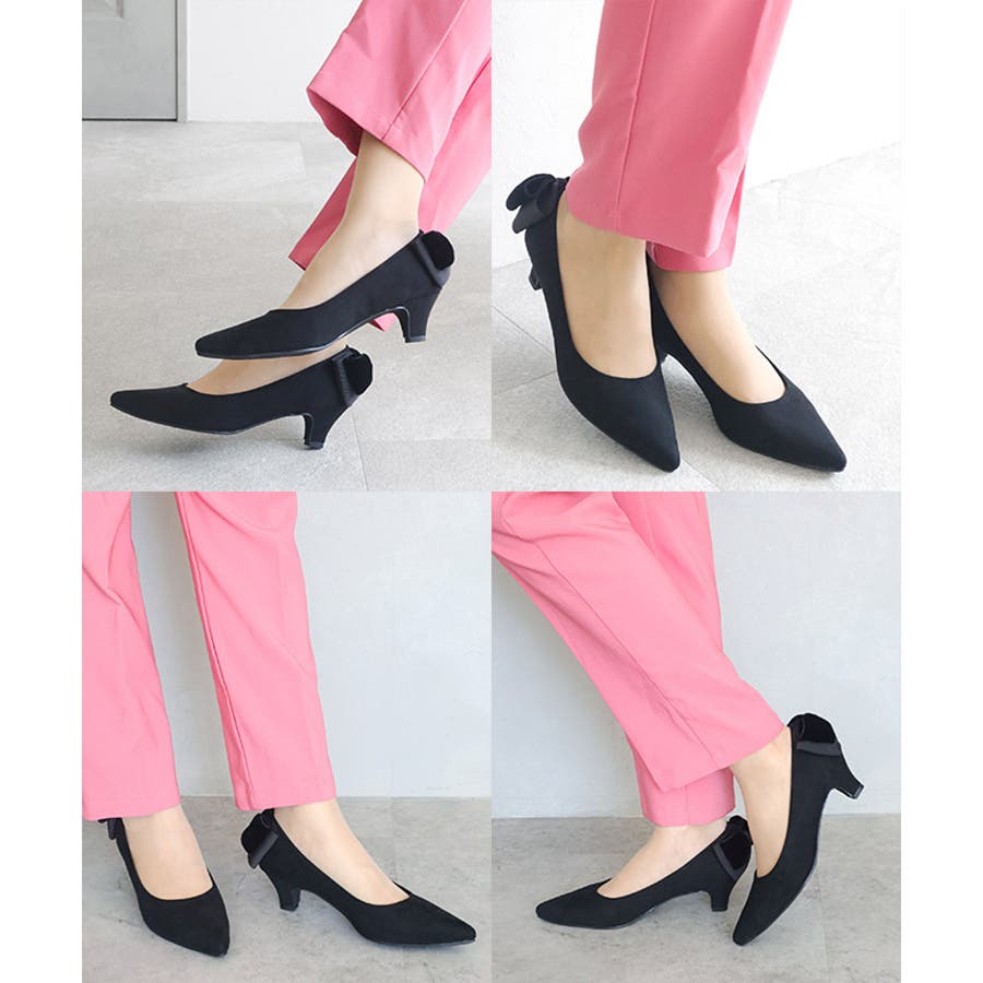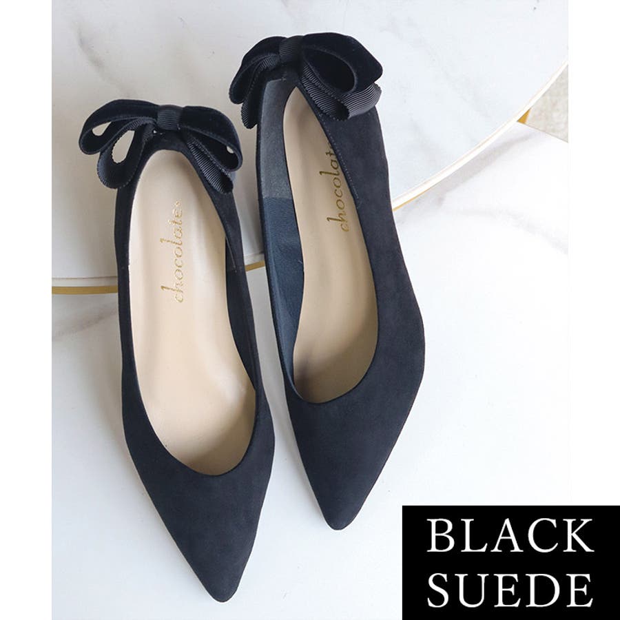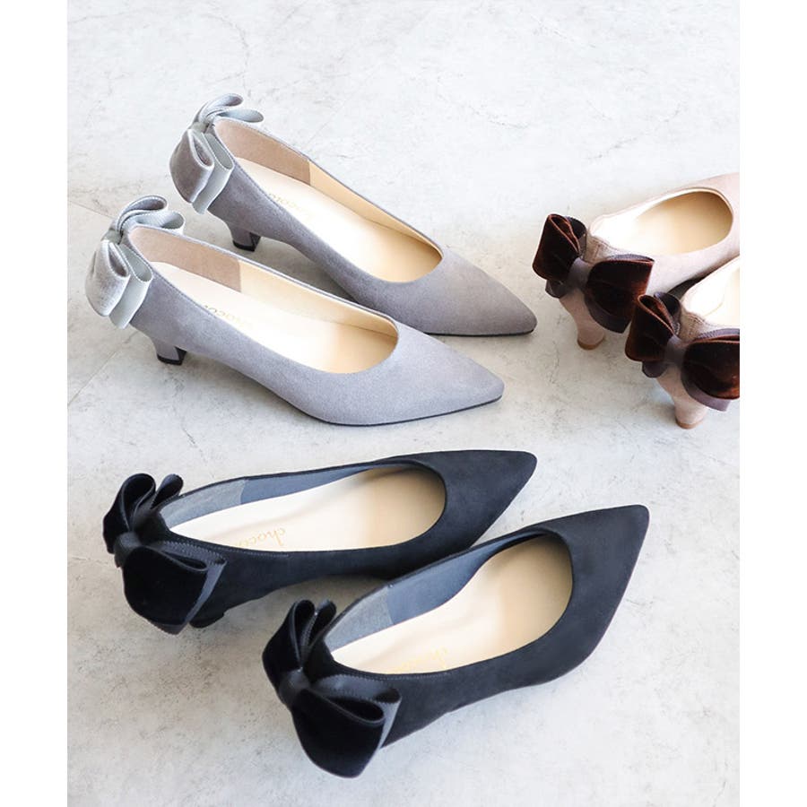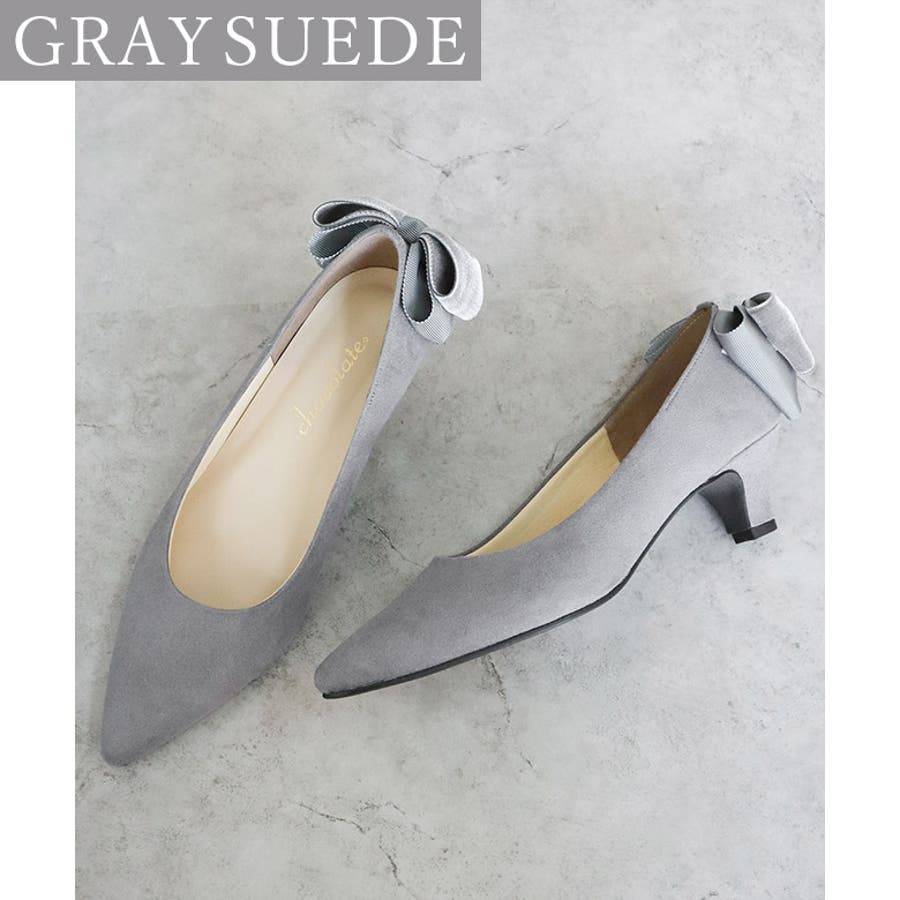 日本製 バックリボン スエード パンプス 晴雨兼用 レイン