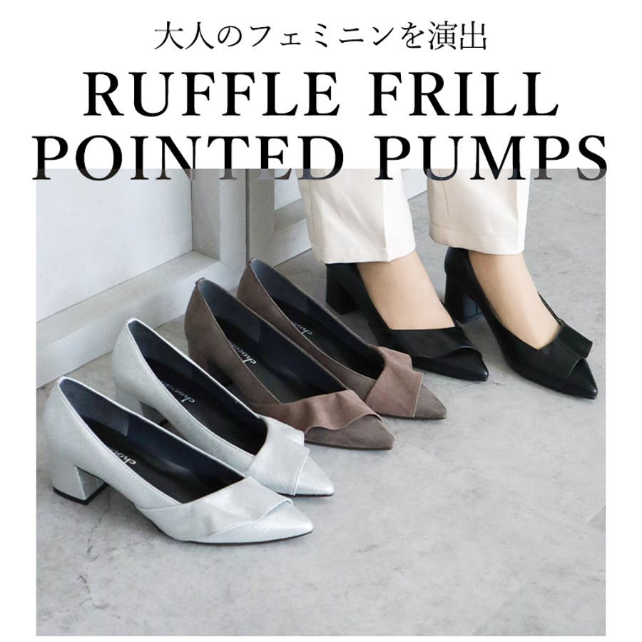 日本製 ポインテッドトゥ ラッフルフリル パンプス