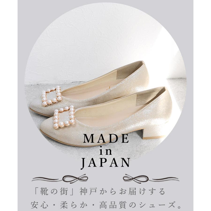 日本製 アーモンドトゥ パールバックル パンプス