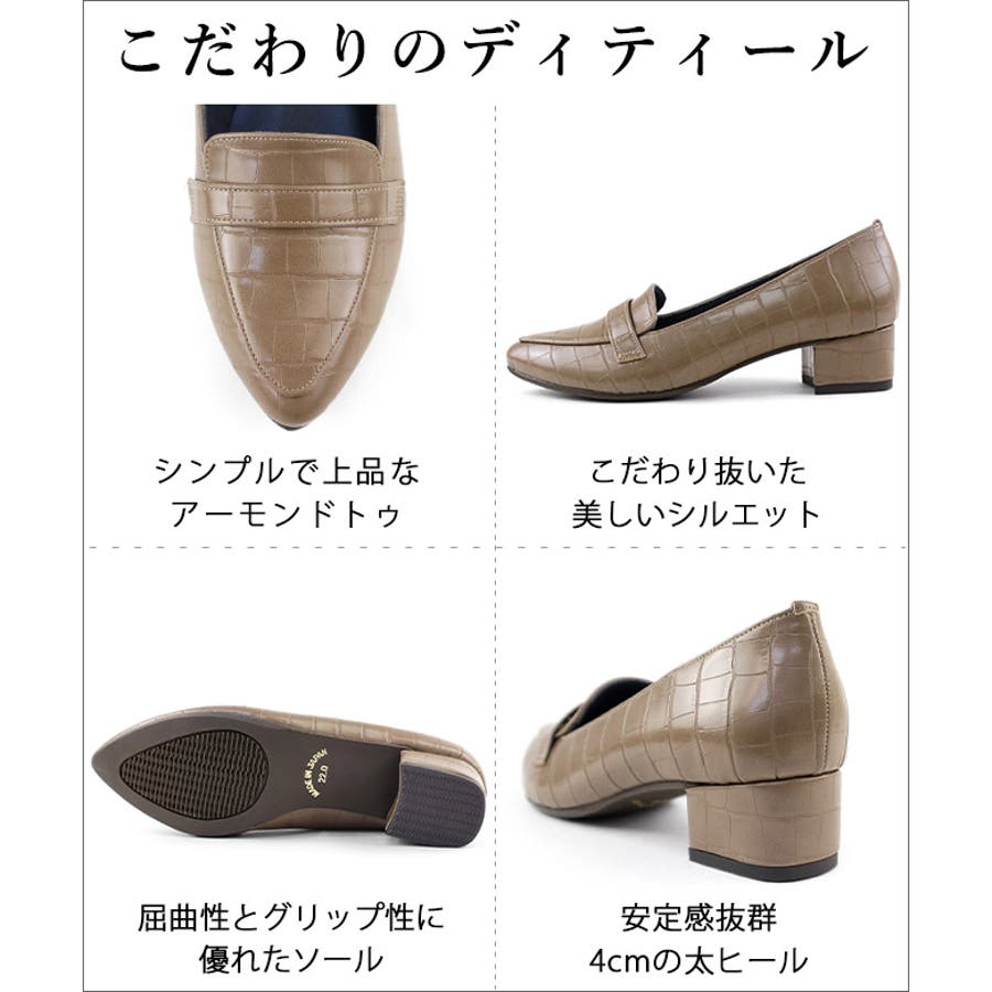 日本製 アーモンドトゥ ローファー パンプス 晴雨兼用 レイン