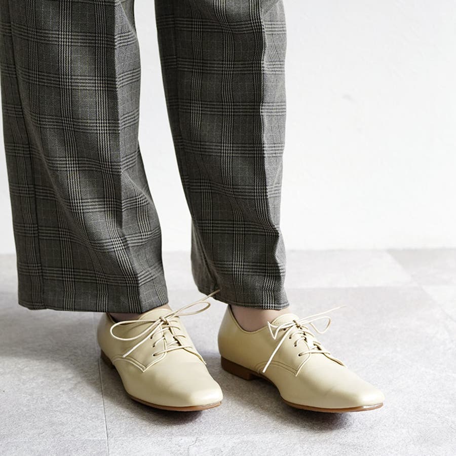 | 商品説明文 | 大人気のスクエアトゥの木型で作成したヒモ付きカジュアルマニッシュシューズです。 デザインはシンプルな外羽根デザインです。 甲をしっかりとホールドしてくれるデザインなので走れます。 日本製の柔らかな合成皮革を使用しているので、足を包み込む様な楽ちんな履き心地です。 ヒモはほどけにくい素材を採用しました。 ウラ材はバイオライナーという機能素材を採用しています。 抗菌、制菌効果のあるソフトな素材です。 また、中敷きも制菌機能を備えた特殊な素材を採用しています。 中敷きの素材はもっちりしており、肌さわりは最高です。 4mmの低反発クッションが入っているので、長時間歩いても疲れません。 ソールは安定感抜群のぺたんこ柔らかソールを採用しております。 屈曲性が良くグリップ性も良く、弾力があるソールです。 靴全体が柔らかなので、長時間歩いても疲れません。 ちょっとしたお出かけにも、ママさんの普段履きにも、通勤、通学、旅行にも使えます。 柔らかさ、軽さ、屈曲性、グリップ性など、履き心地を追求しつくした1足です。 日本製ならではの幸せな履き心地を是非お試しくださいませ。 |