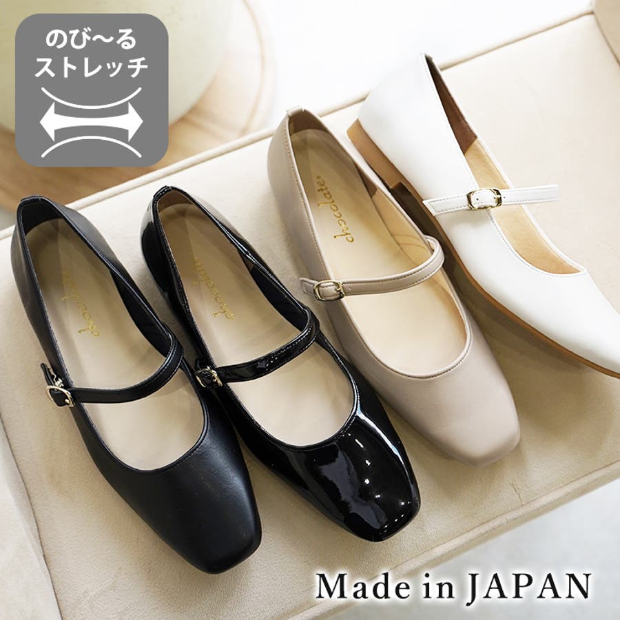 日本製 幅広 ストレッチスクエアパンプス